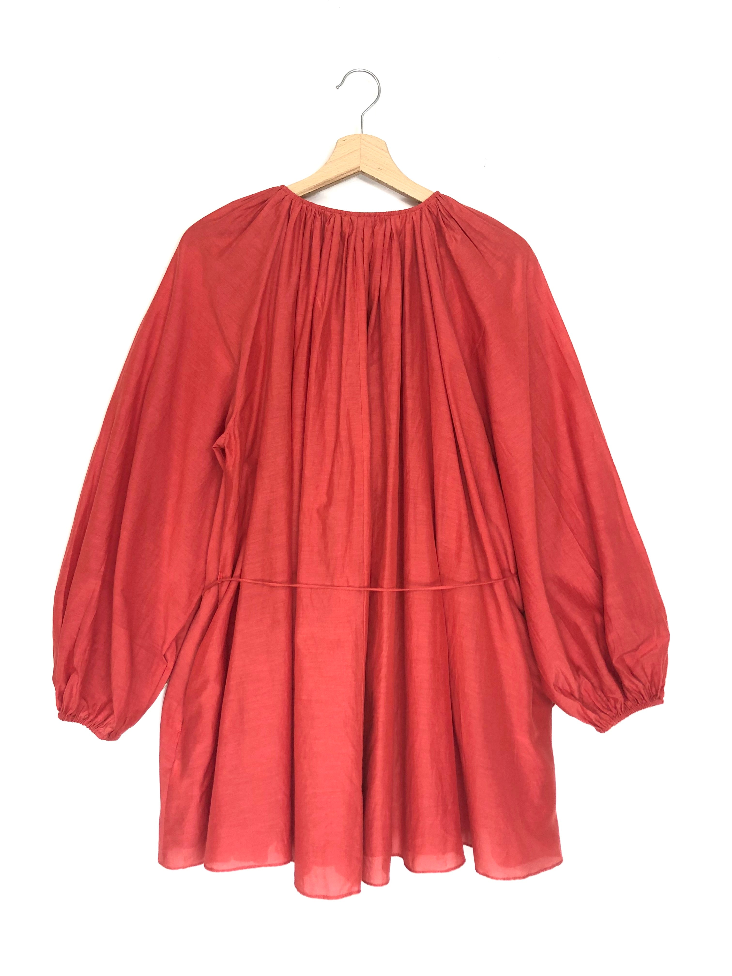 Poppy Red VOLUMINOUS Cotton and Silk Mini Dress / MATTEAU - Size 2
