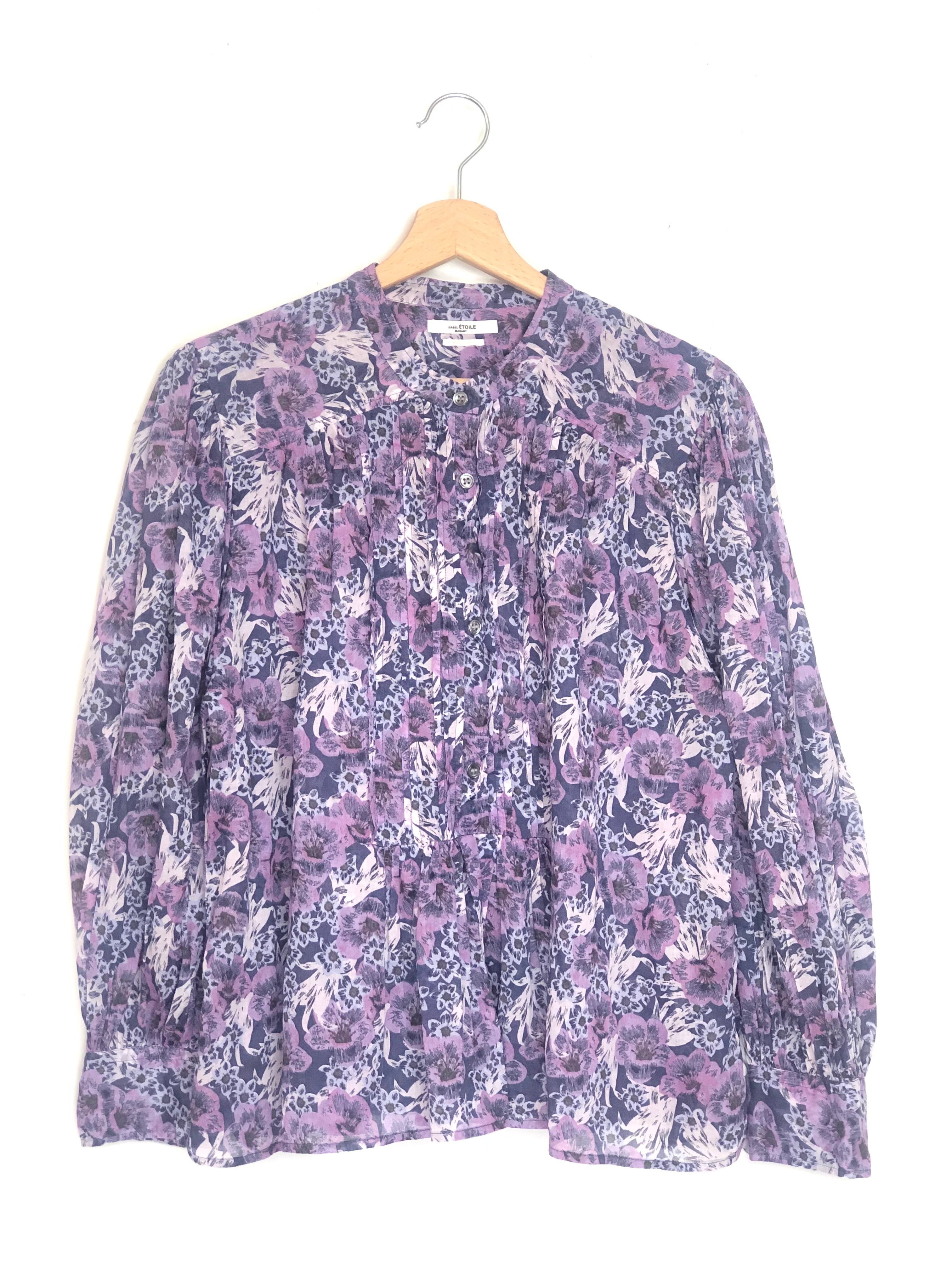 Purple ADIGRA Printed Cotton-voile Long Sleeves Blouse / ISABEL MARANT ETOILE - Size 38