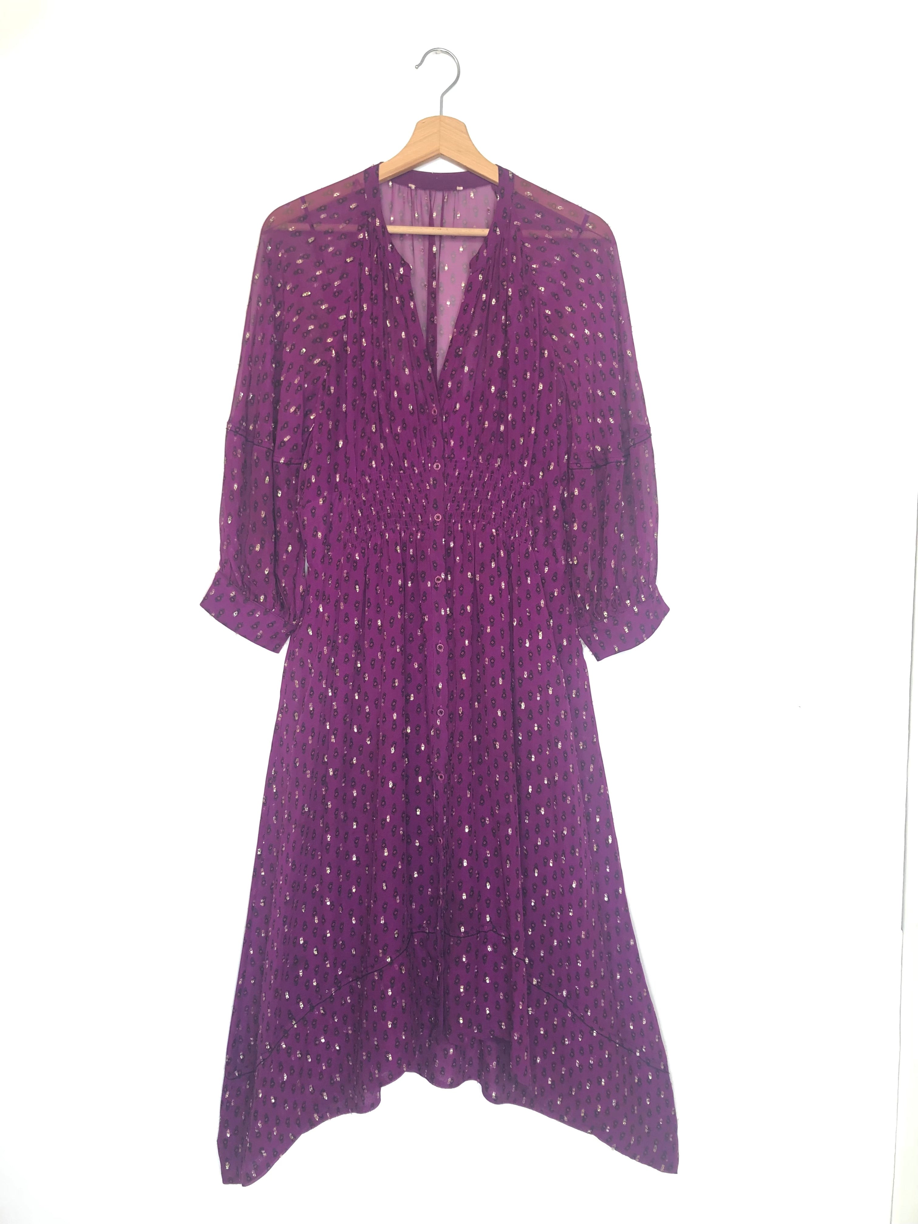 Purple CYANA Metallic Dot Smock Waist Midi Dress / BA&SH - Size 3