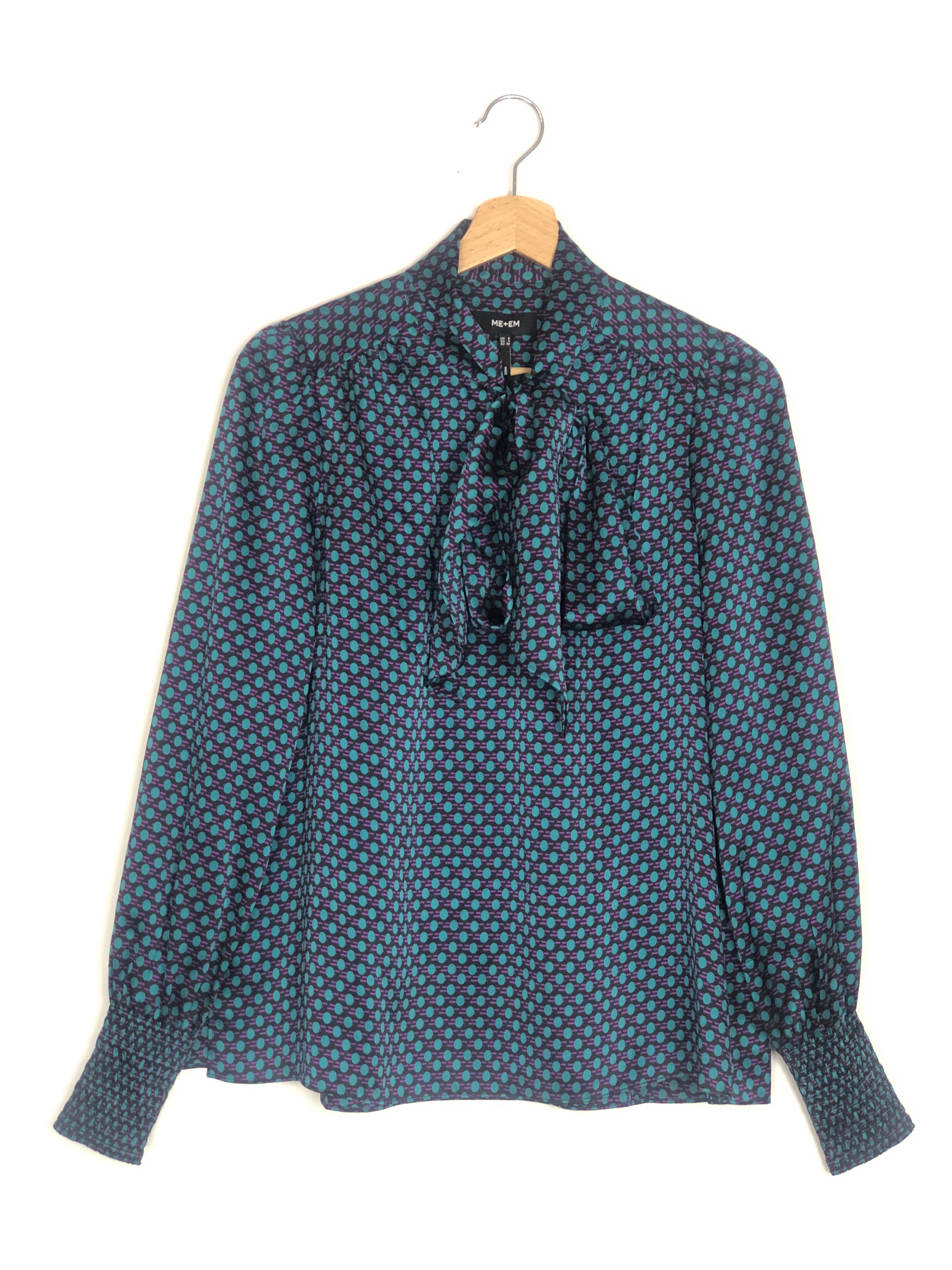 Purple/ Green Polka Dots Print Silk Blouse / ME+EM - Size 36