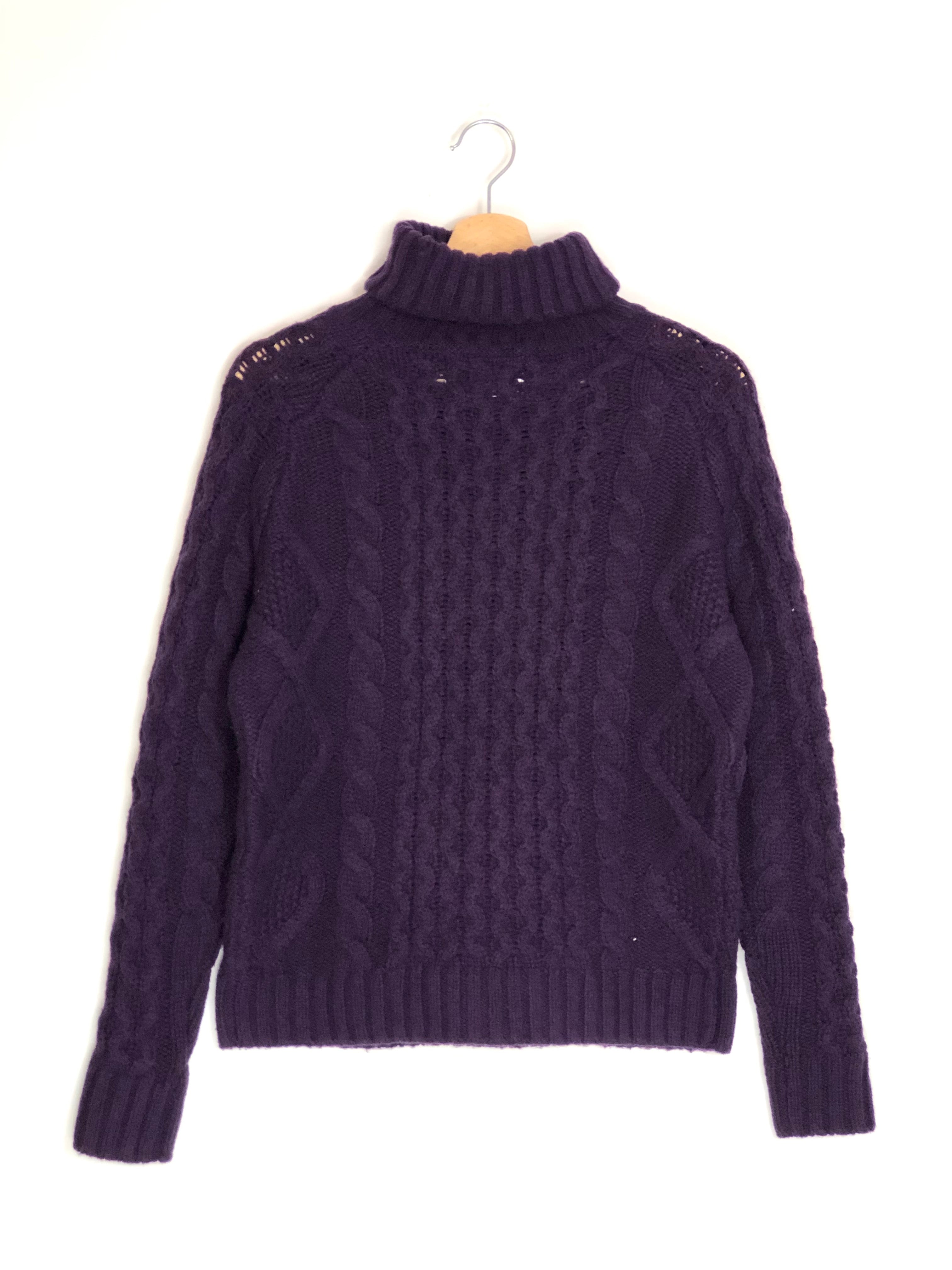 Purple MARGOT Woollen Cable Knit Turtleneck Jumper / LEON & HARPER - Size S