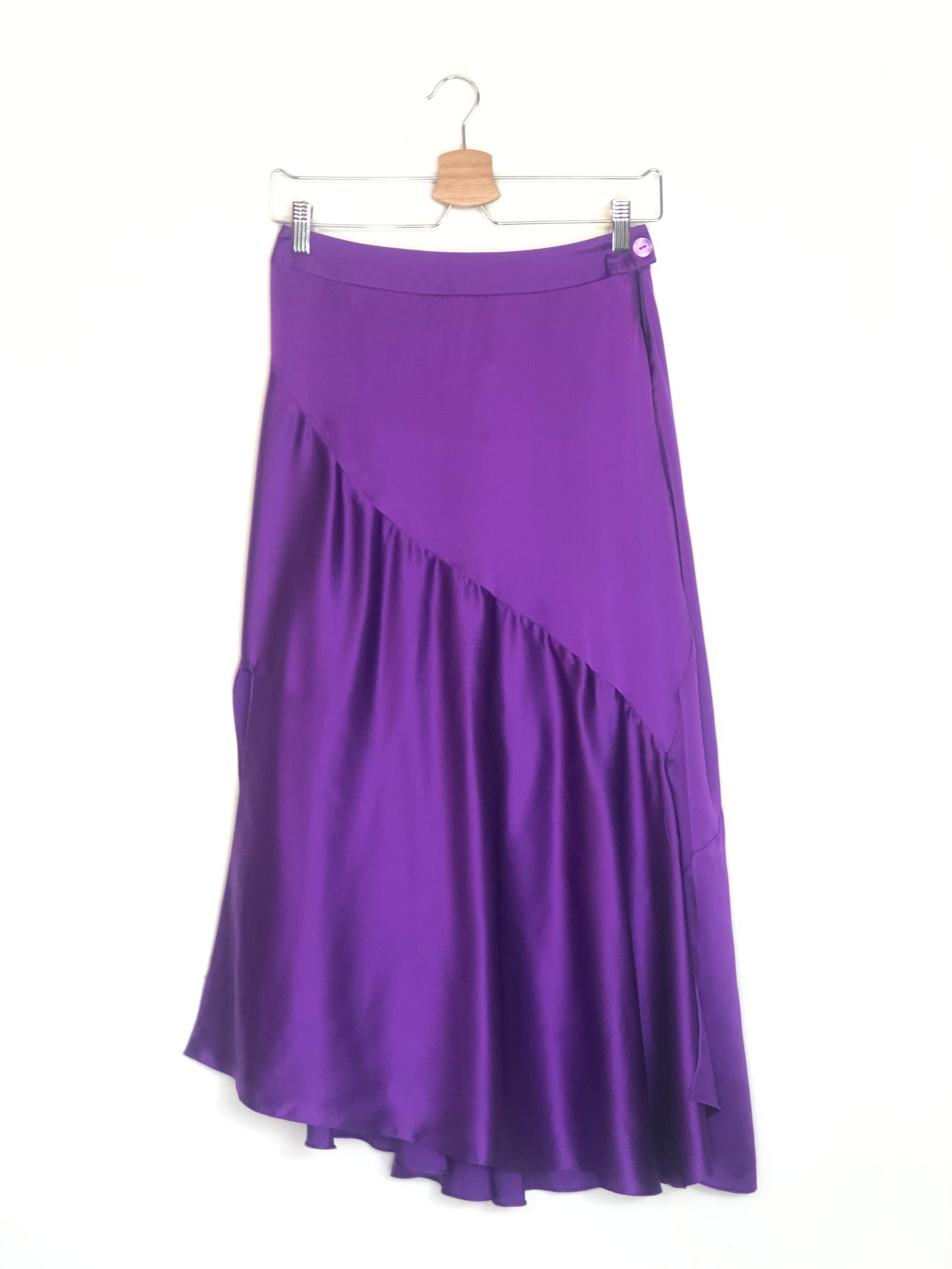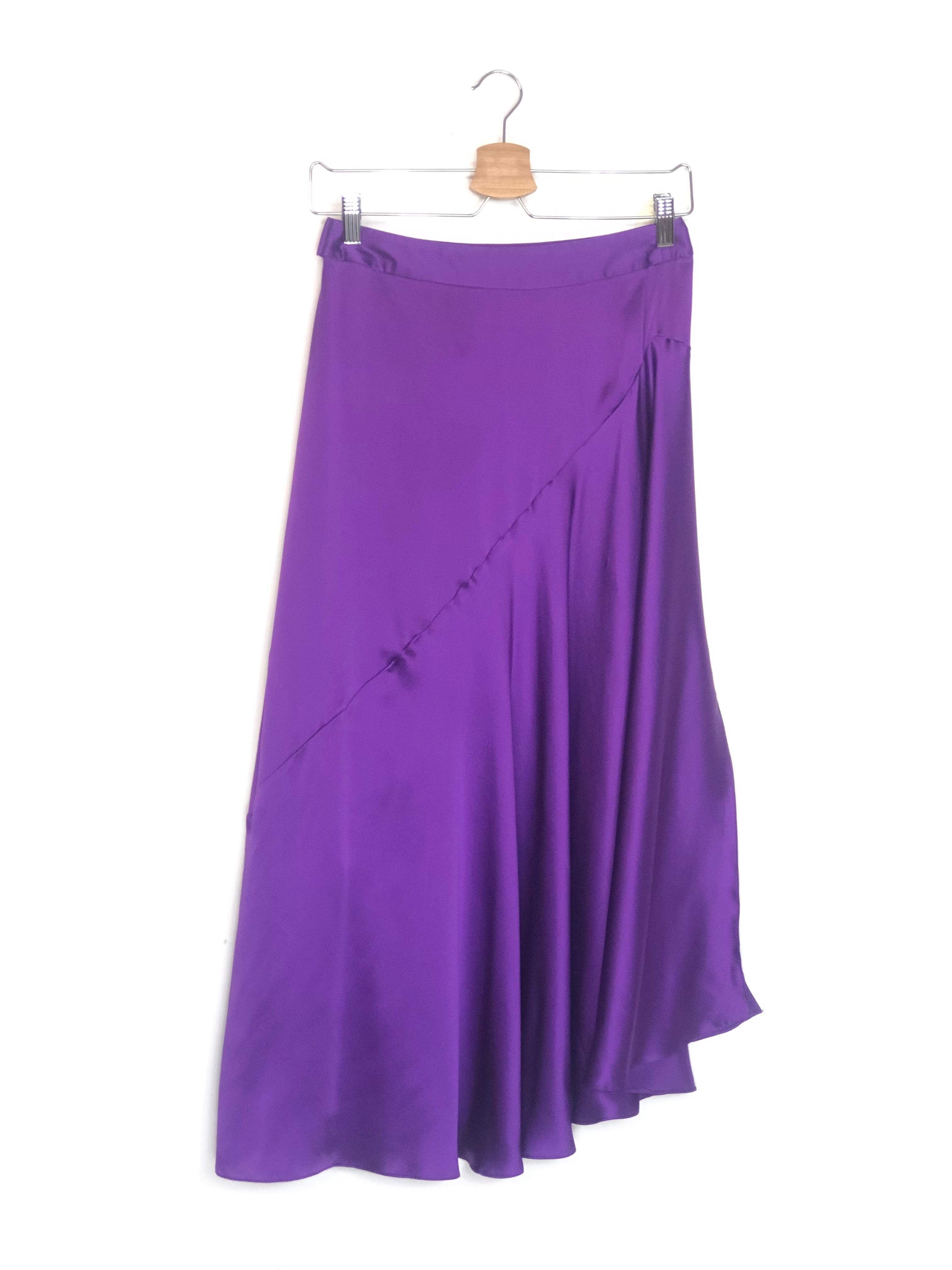 Purple Satin Effect Silk Asymmetric Midi Skirt / FEBEN - Size 38