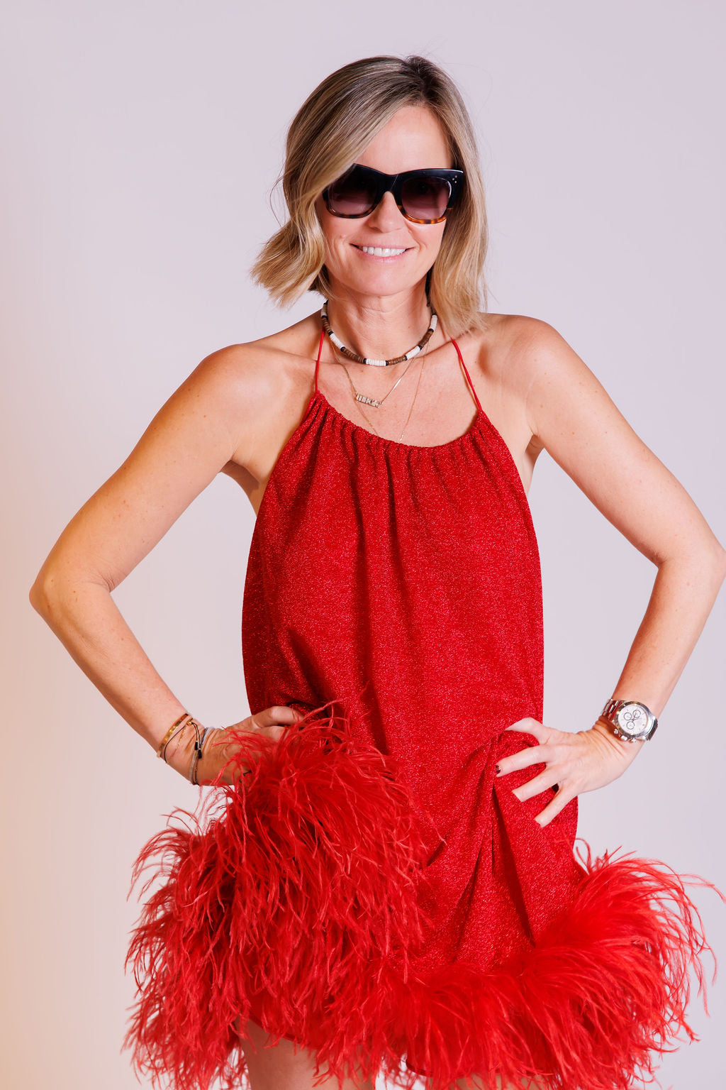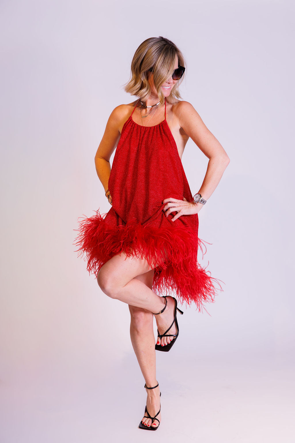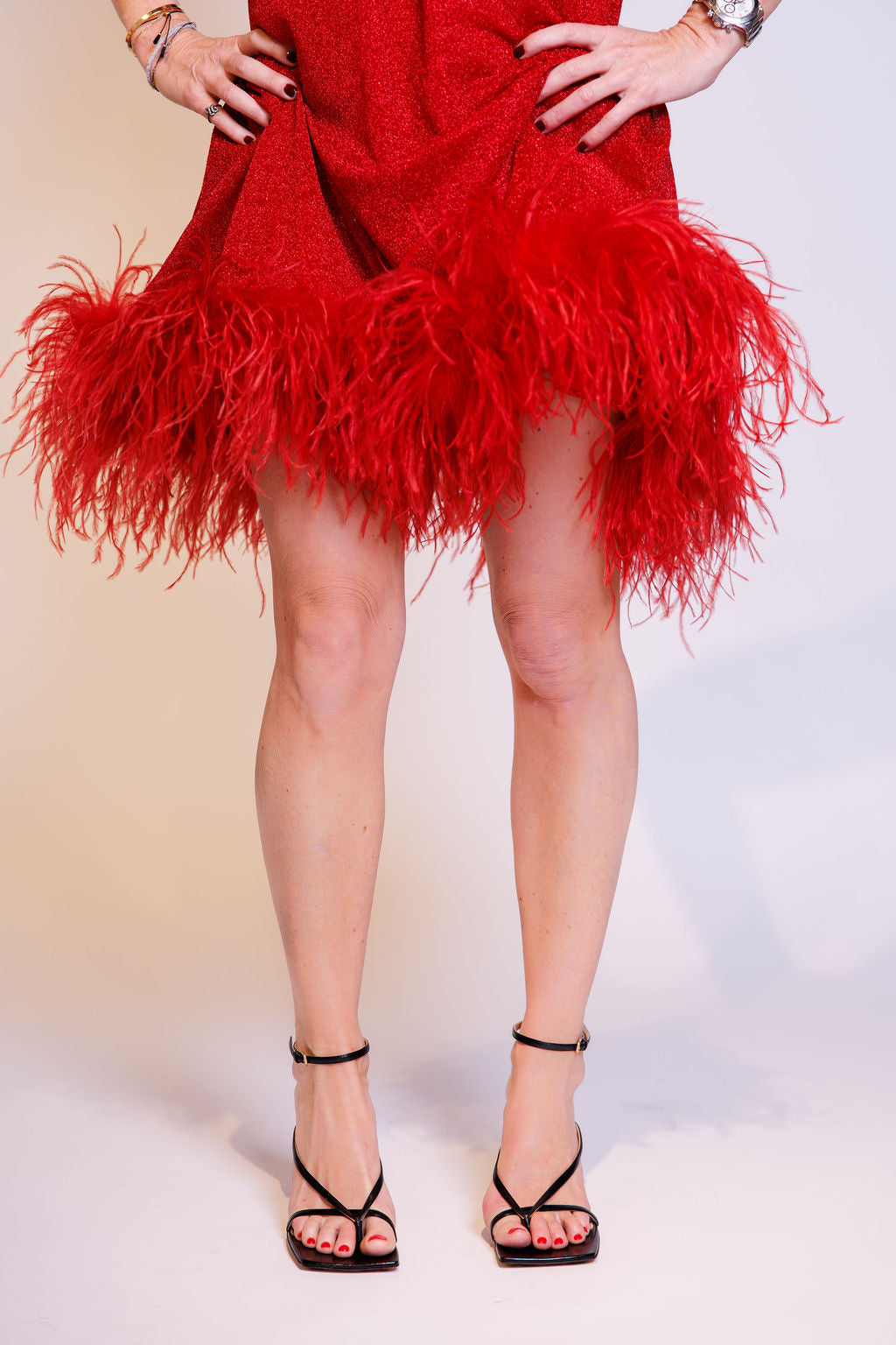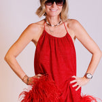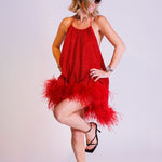 Red Lurex Lumière Plumage Feather Trim Mini Dress / OSEREE - Size S/M