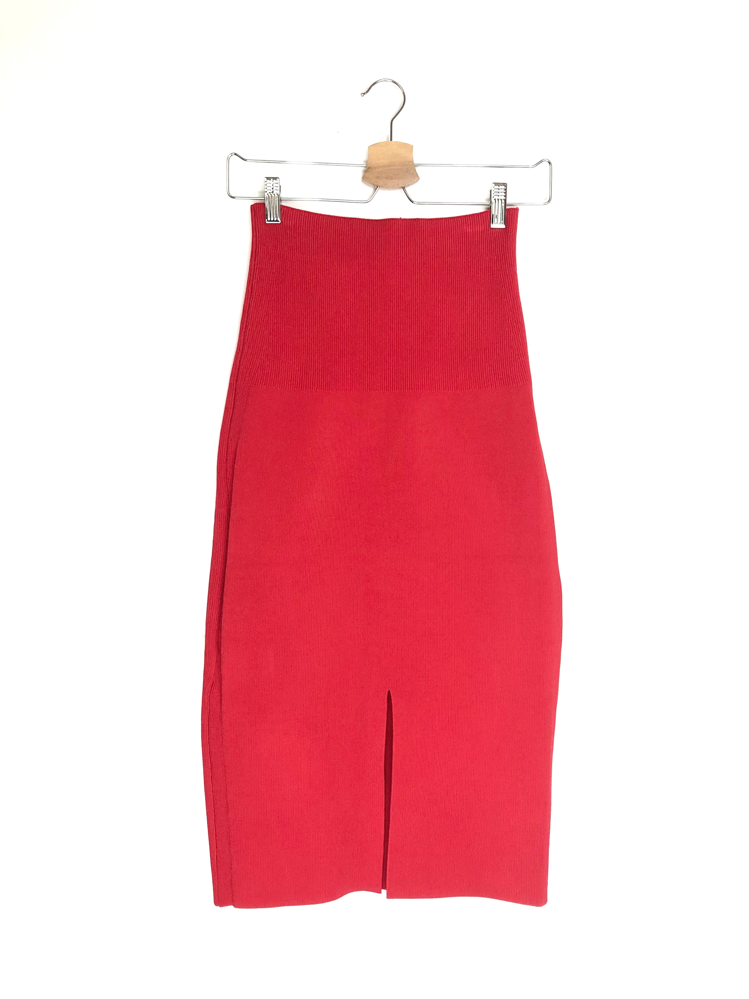 Red Stretch-knit Fitted Midi Skirt / VB BODY BY VICTORIA BECKHAM - Size 34