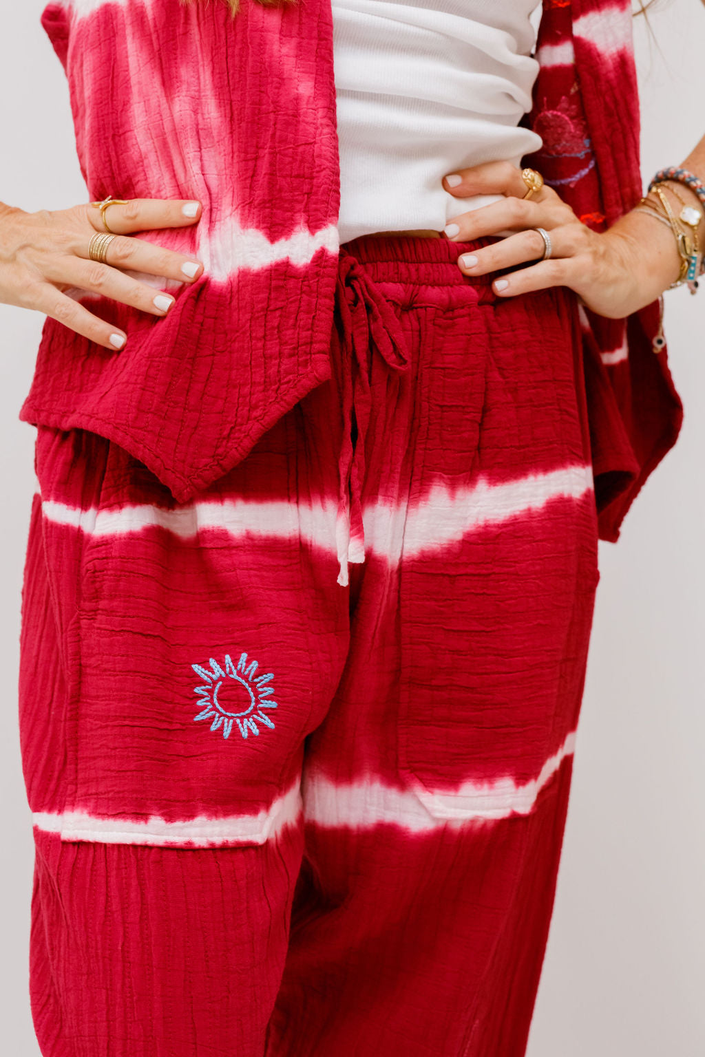 Red Tie-dye Cotton Gauze Trousers - One Size
