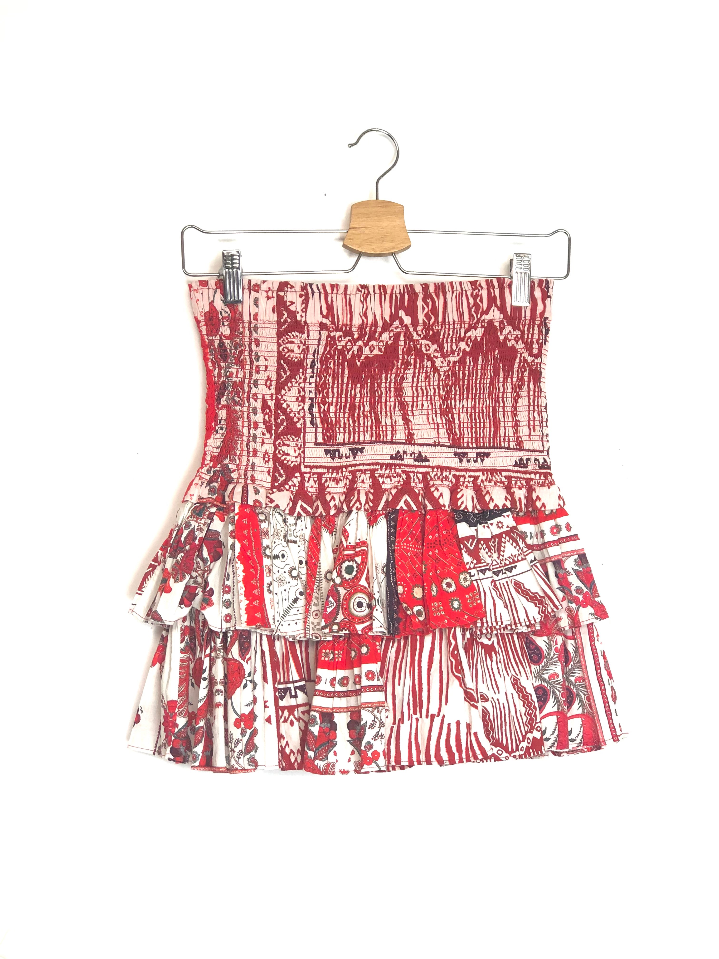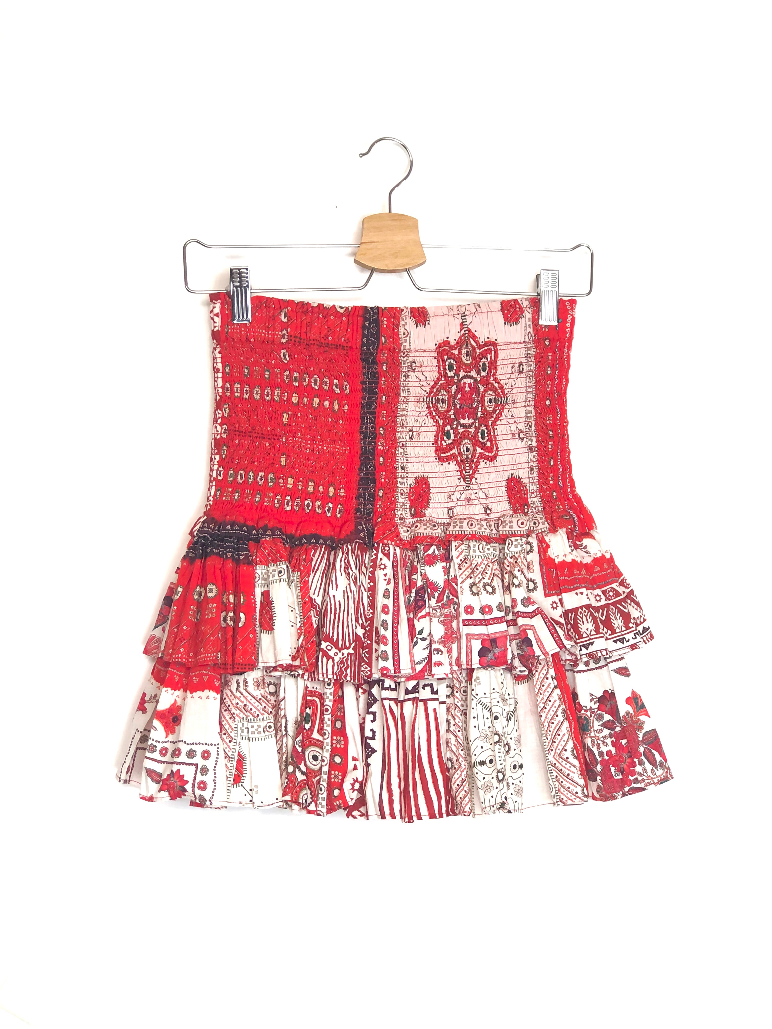 Red/Ecru NAOMI Bandana Print Smocked Cotton Voile Mini Skirt / ISABEL MARANT ETOILE - Size 36