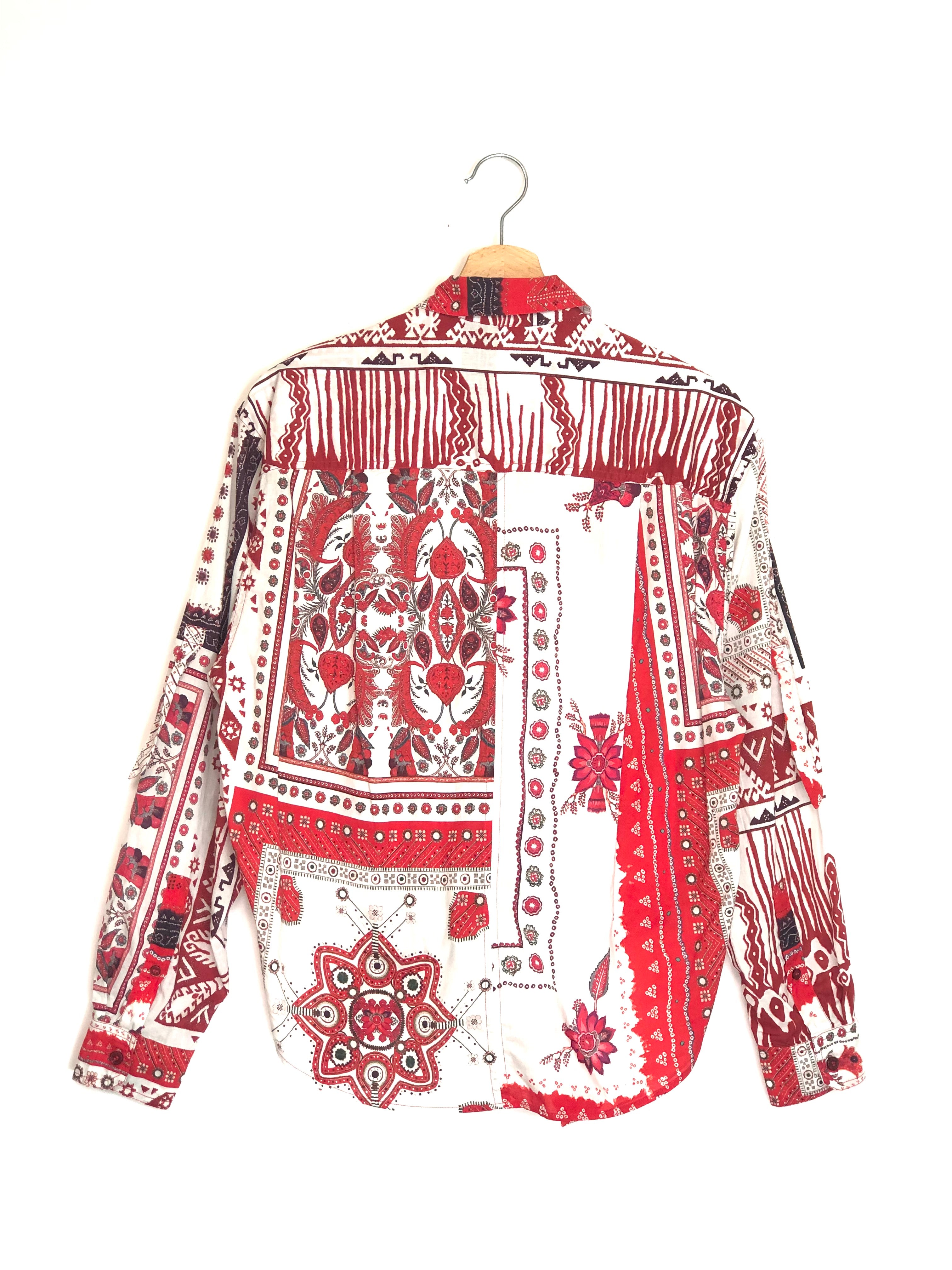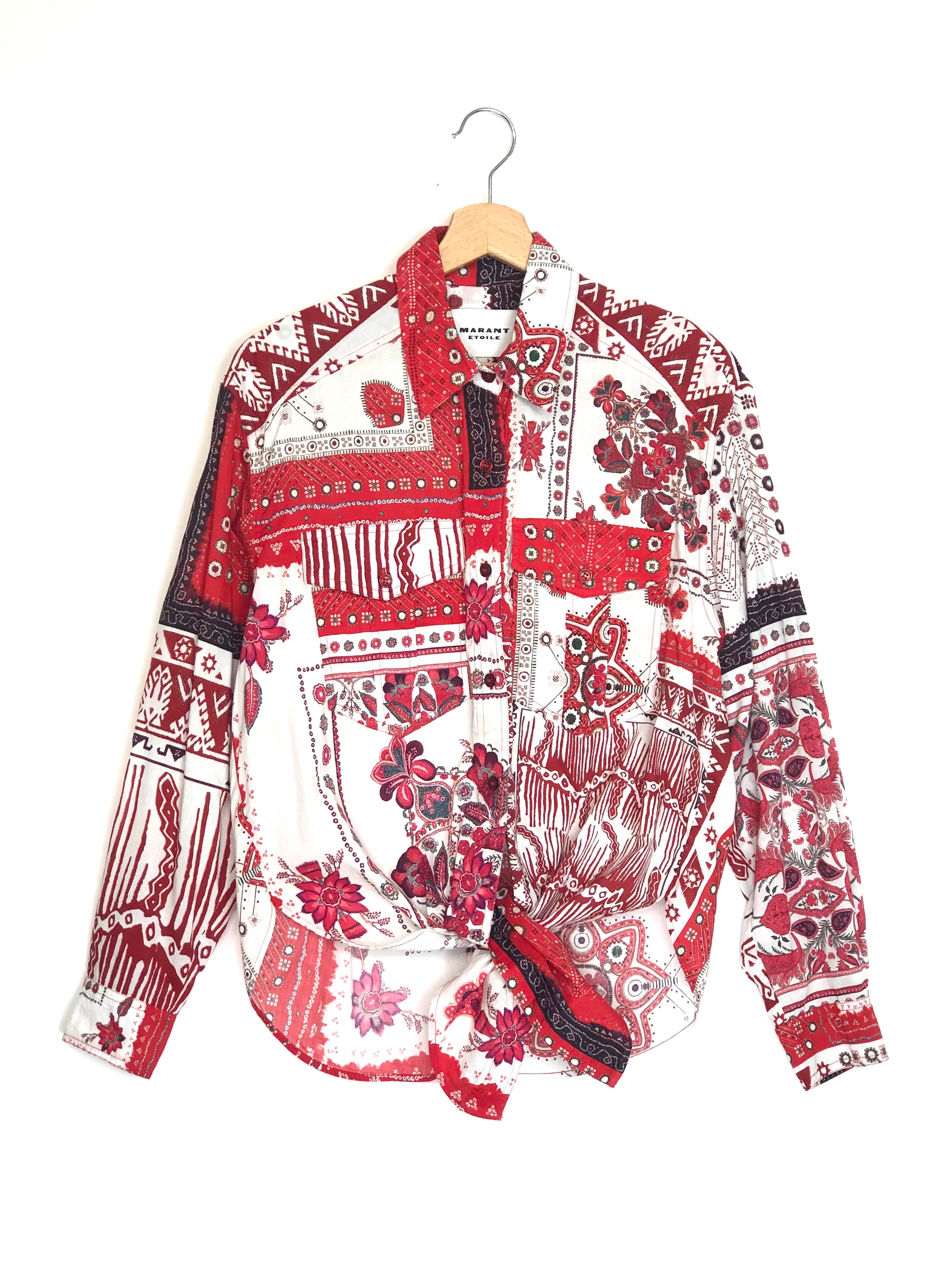 Red/Ecru NATHY Tied Printed Cotton Voile Long Sleeves Shirt / ISABEL MARANT ETOILE - Size 34