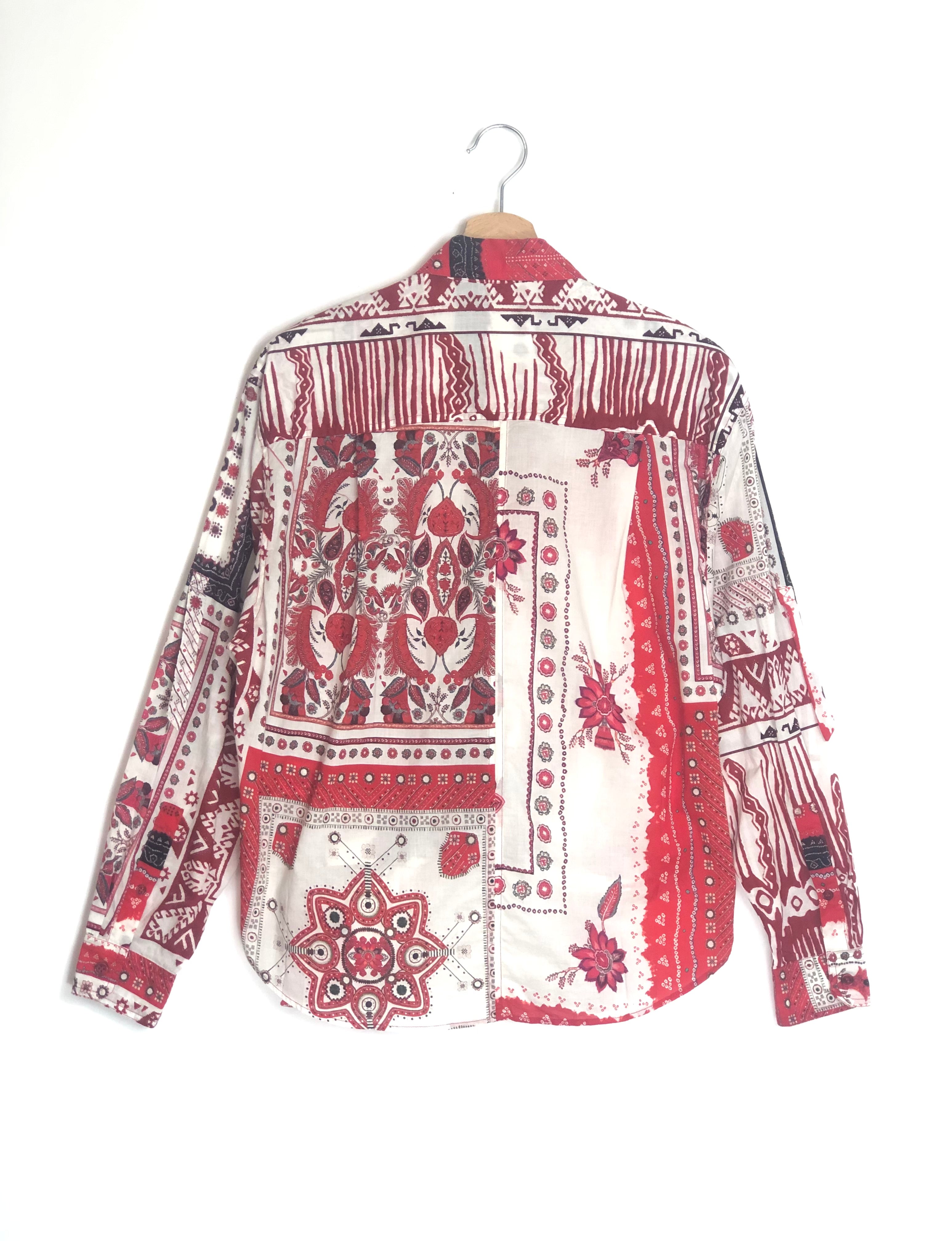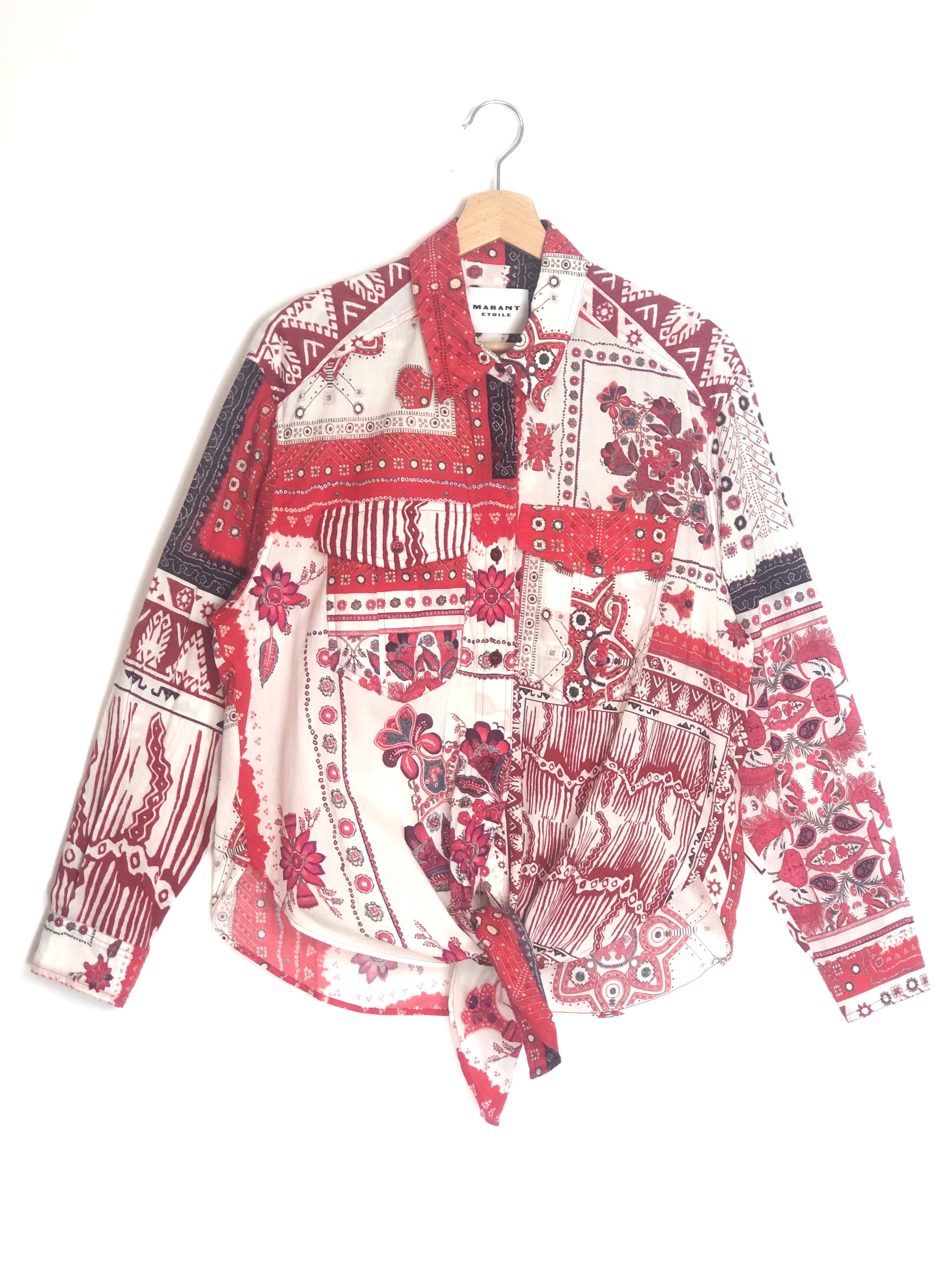 Red/Ecru Tied NATHY Printed Cotton Voile Long Sleeves Shirt / ISABEL MARANT ETOILE - Size 36