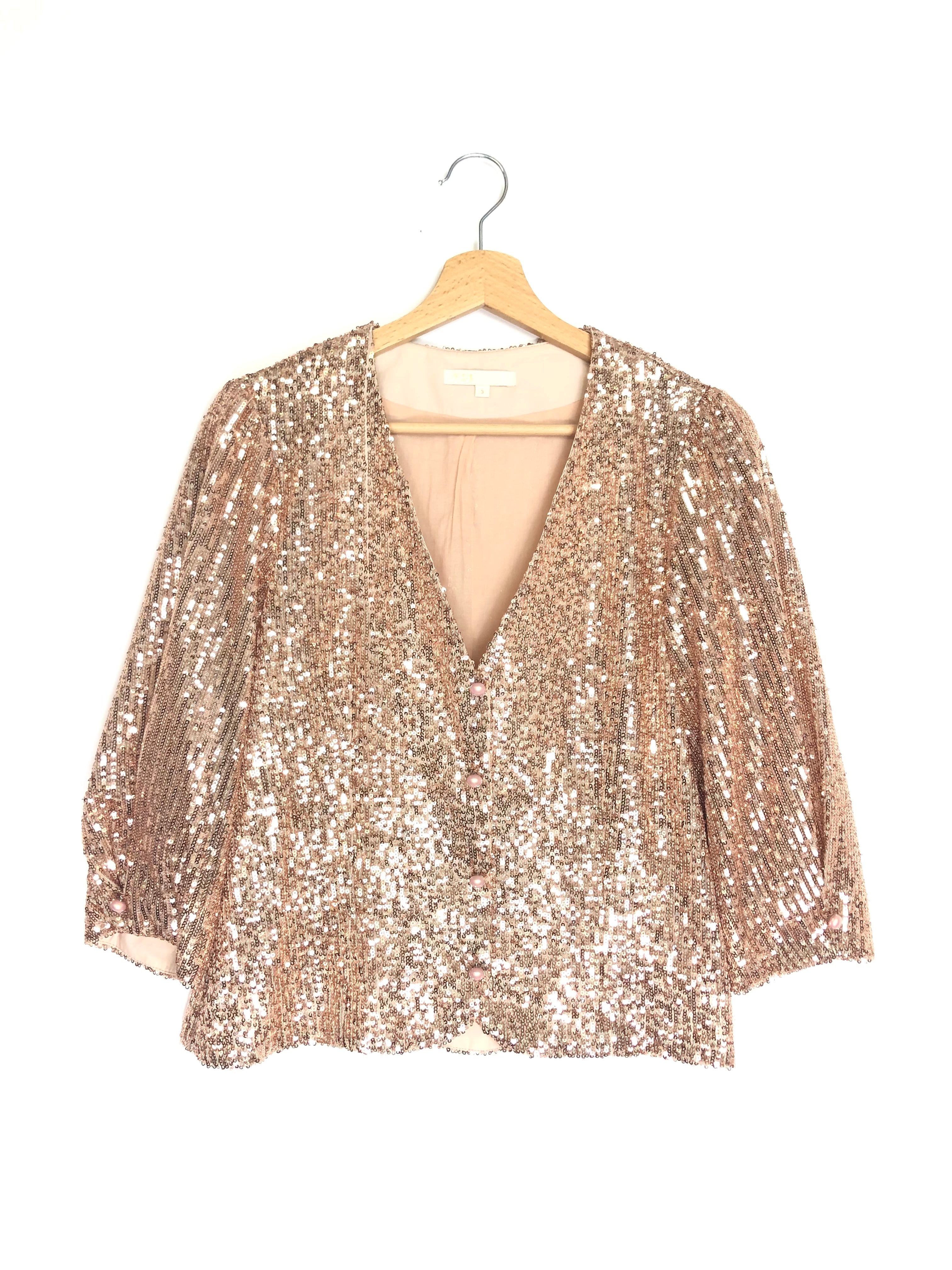 Rose Gold Sequin V-neck Blouse / MAJE - Size 3