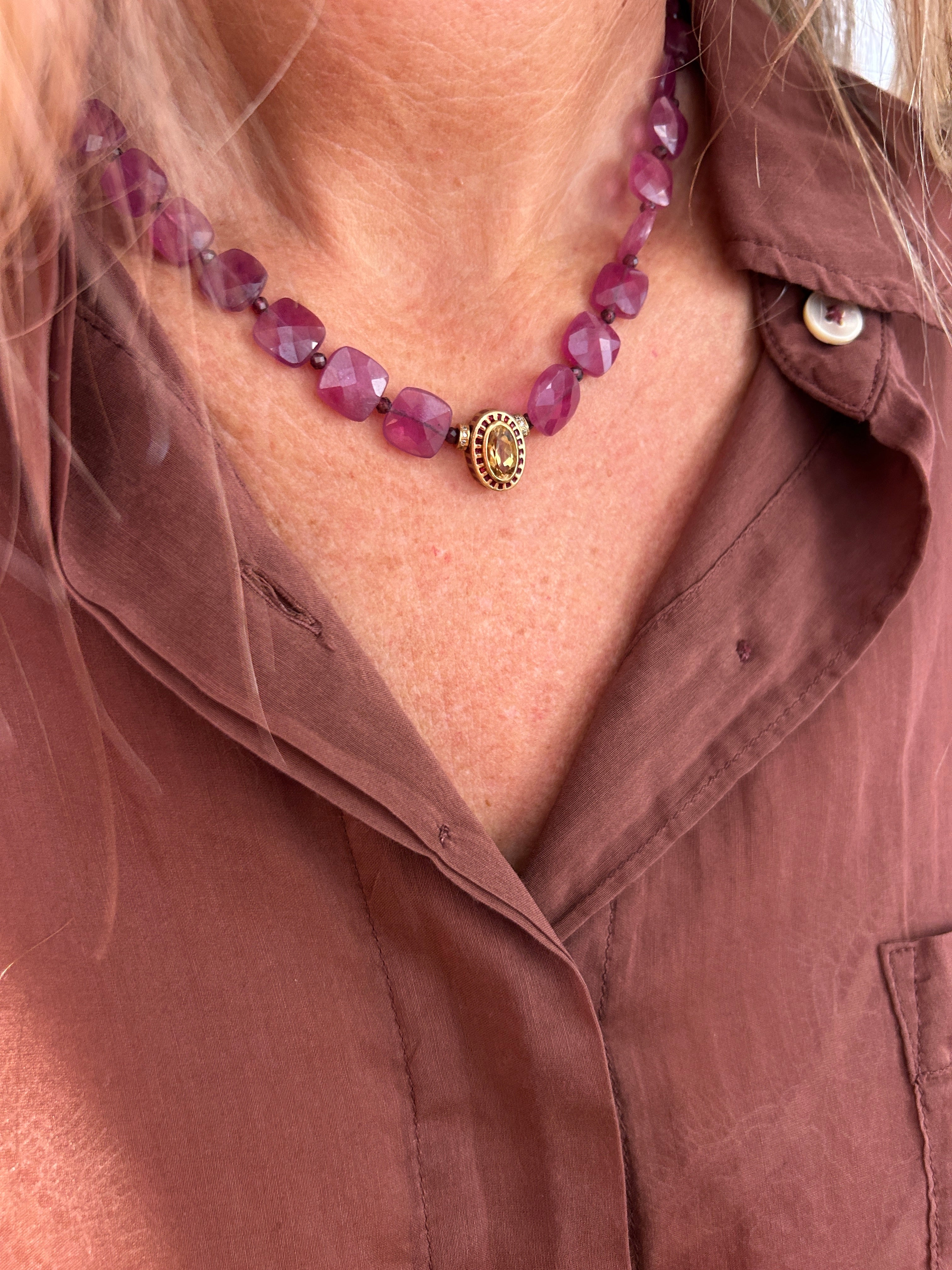 Ruby and Grenat HENRI Necklace with Citrine Pendant / BOHEMIAN RHAPSODIE