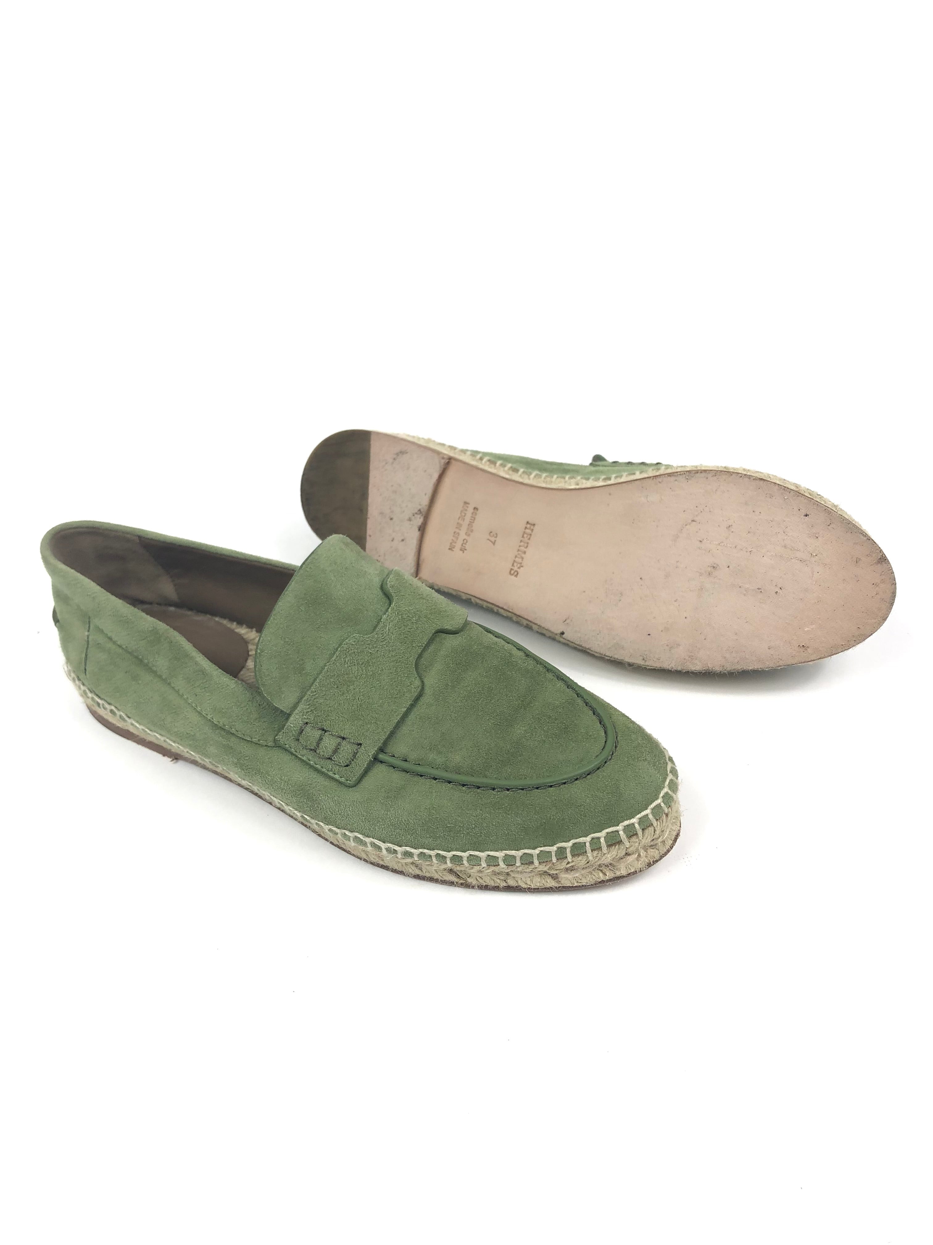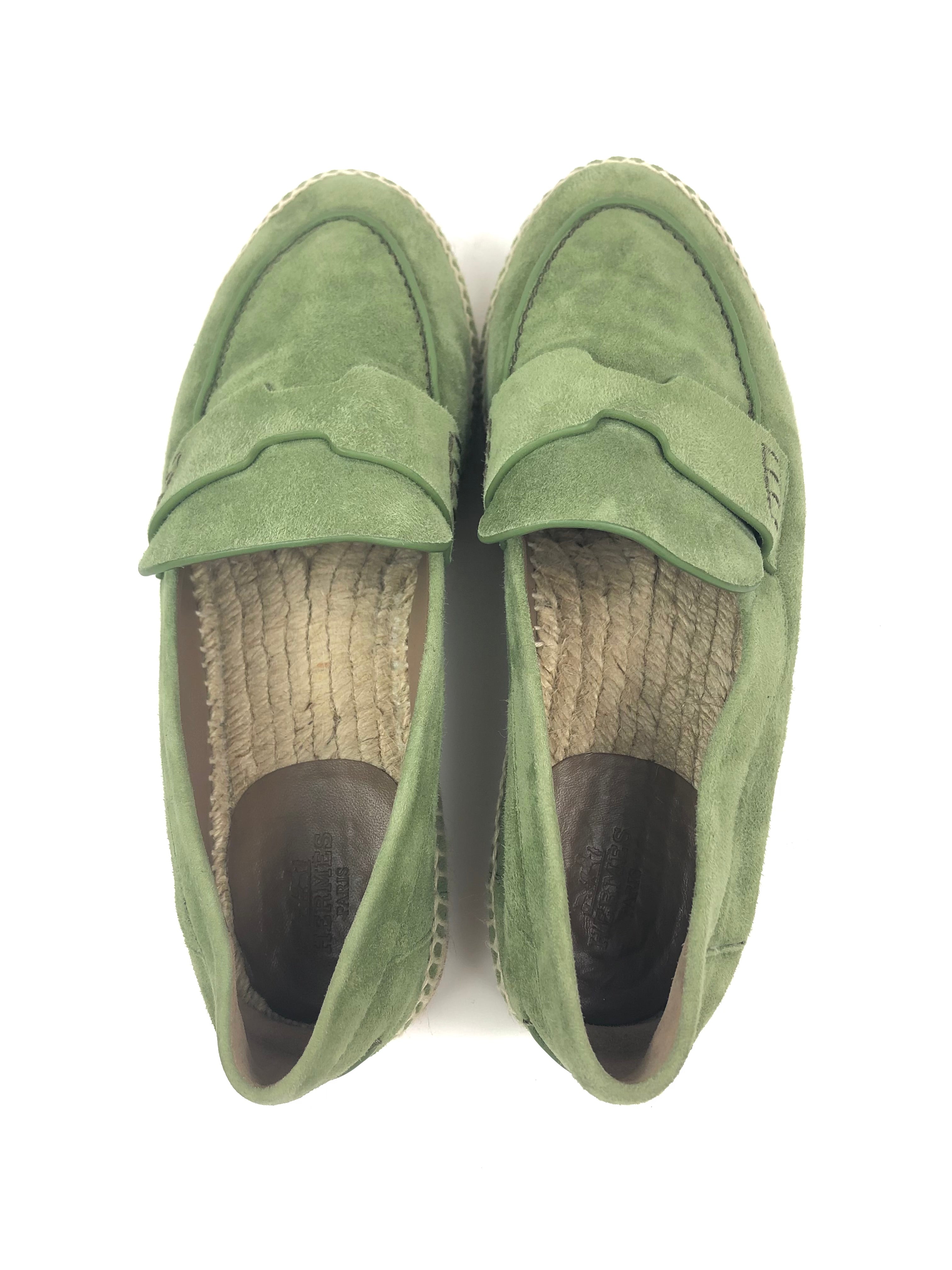 Sage Green TRIP Suede Leather Espadrilles / HERMES - Size 37