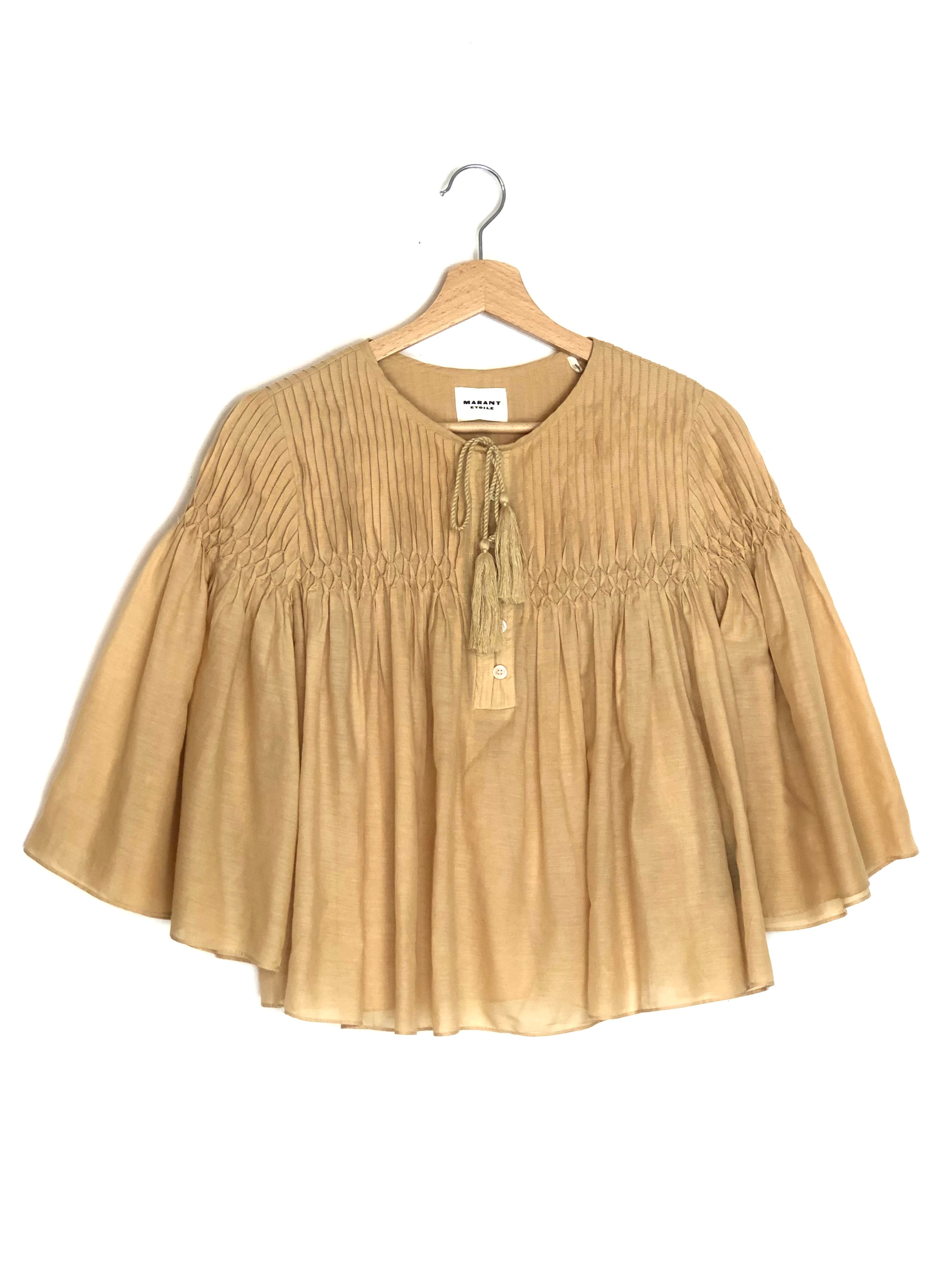 Sand AXELIANA Cotton Blend Pintuck Blouse / ISABEL MARANT ETOILE - Size 38