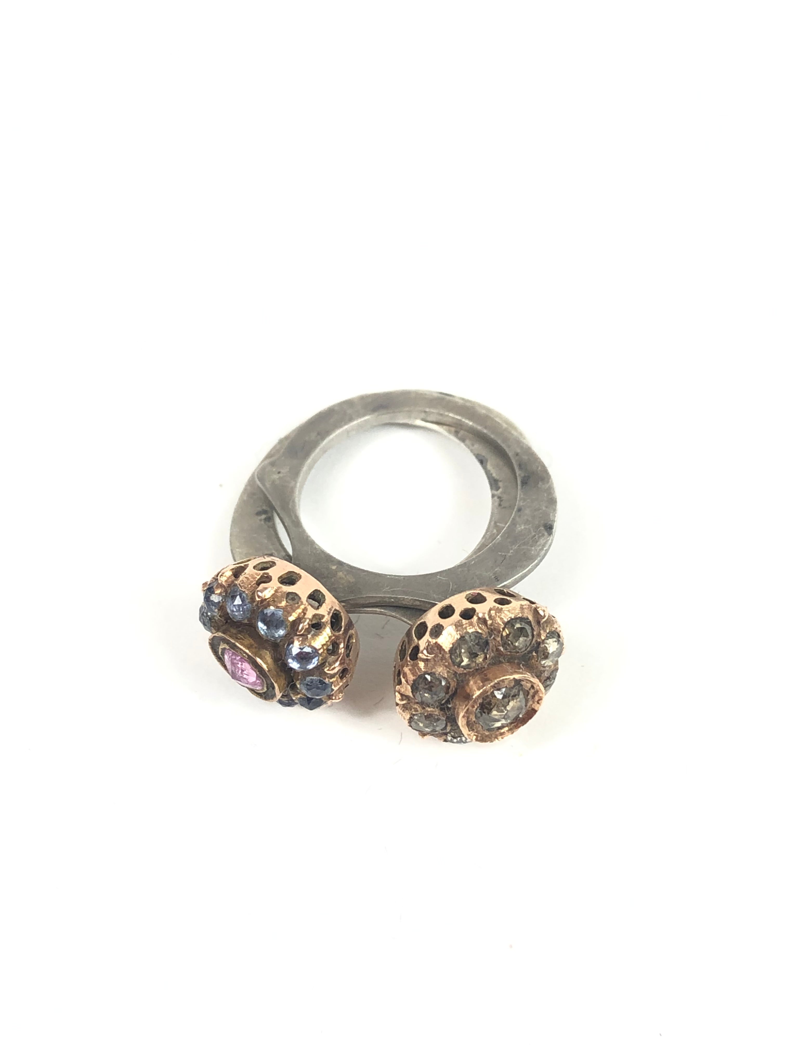 Set of 2 Blue Sapphires and Brown Diamonds Rings / ROSA MARIA - Size 52