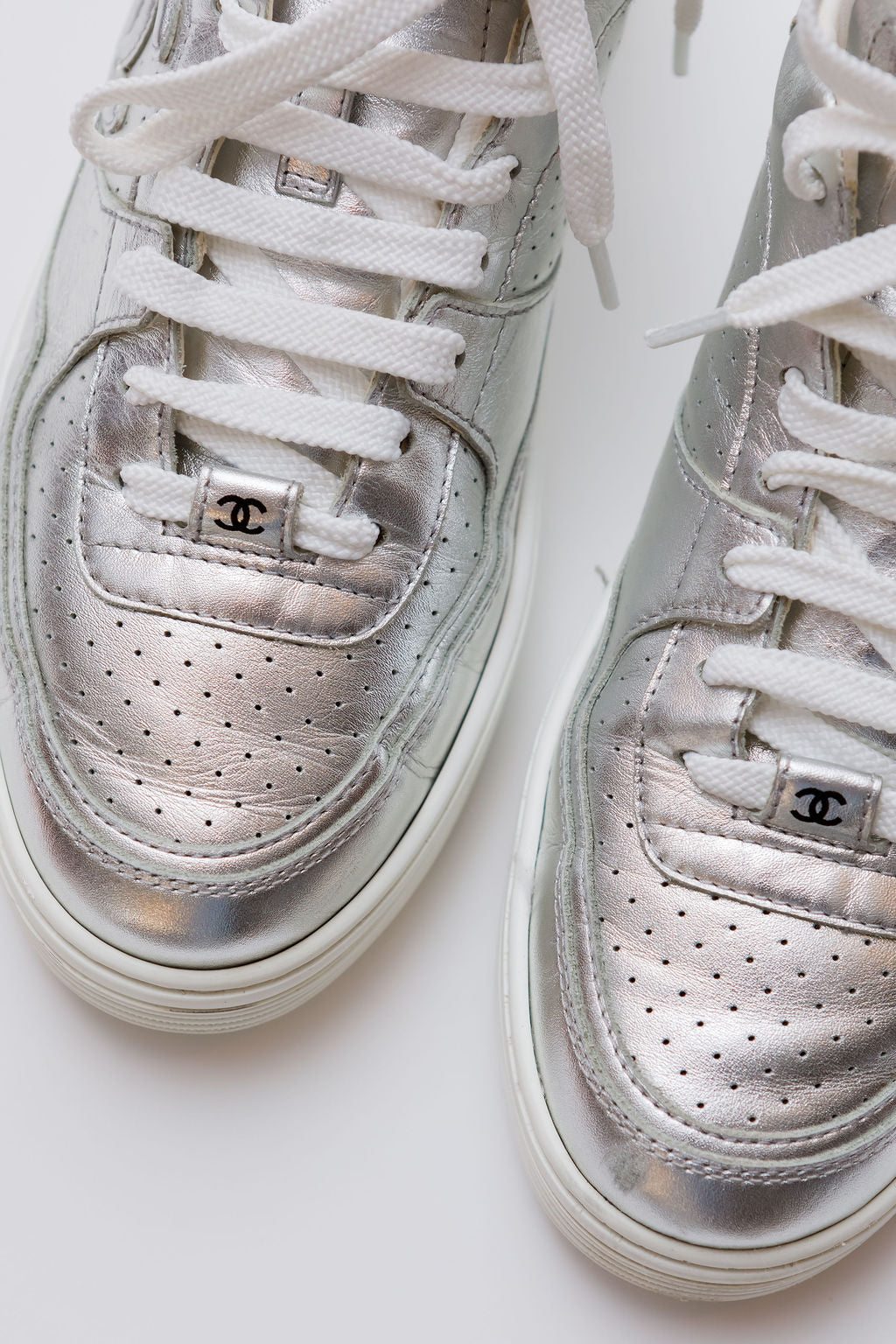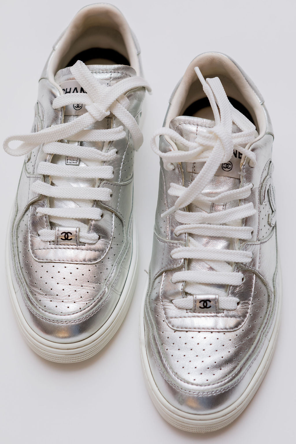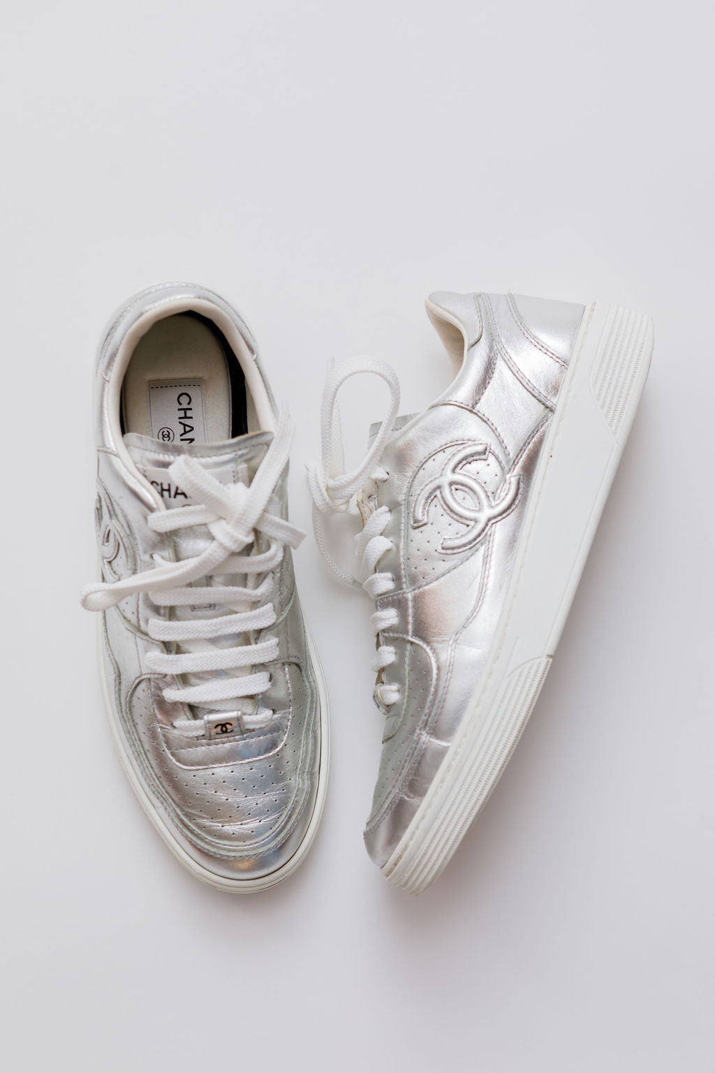 Silver Metallic CC Embossed Sneakers / CHANEL - Size 39
