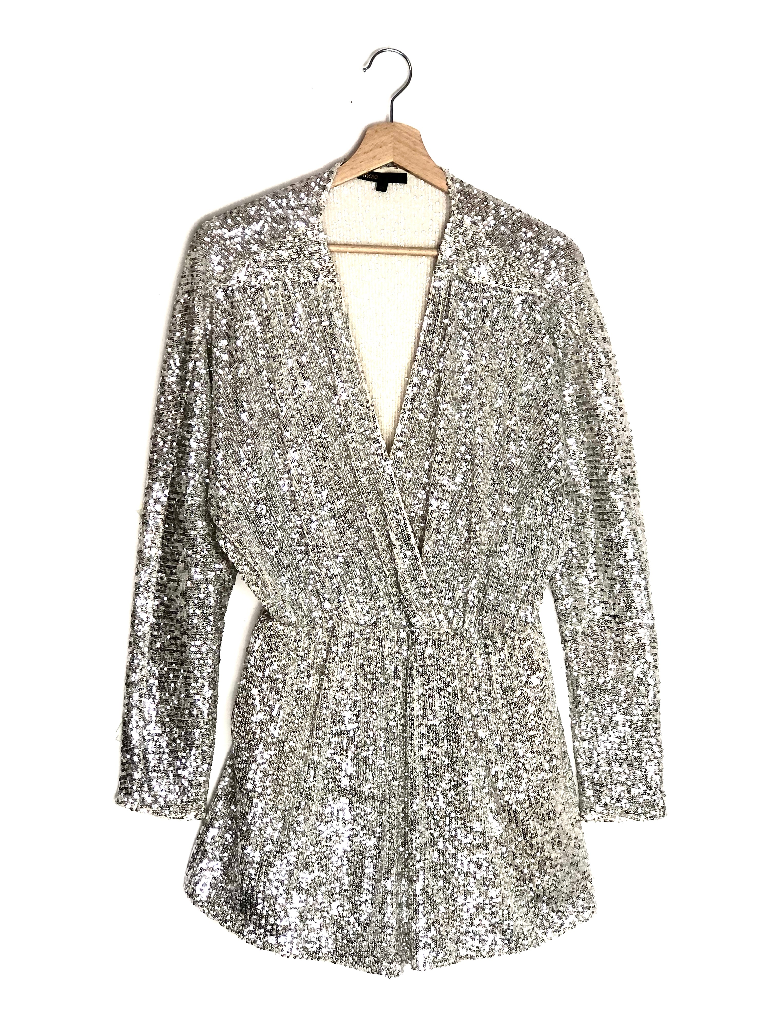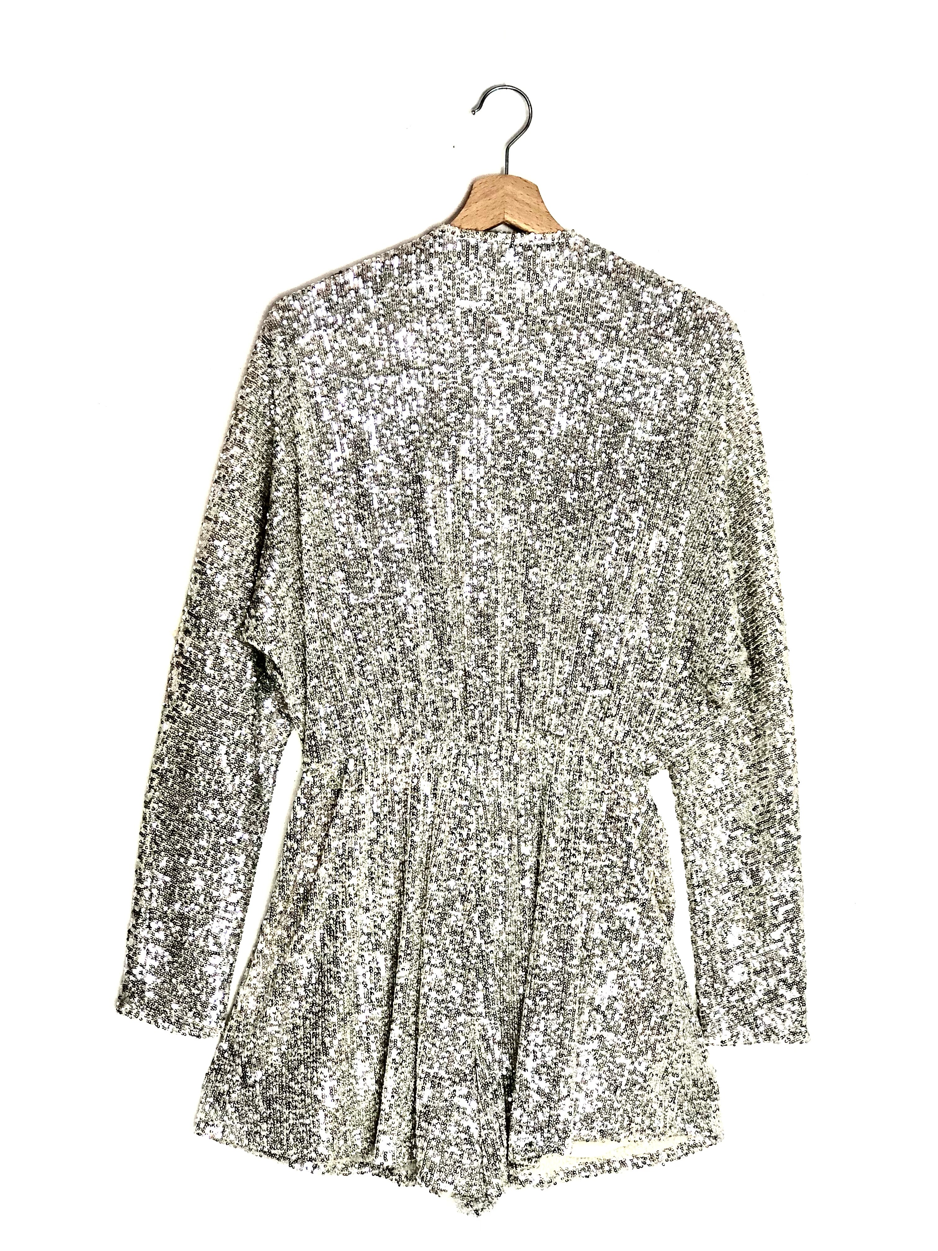 Silver/Gold ILETTE Sequin V-neck Playsuit / MAJE - Size 40
