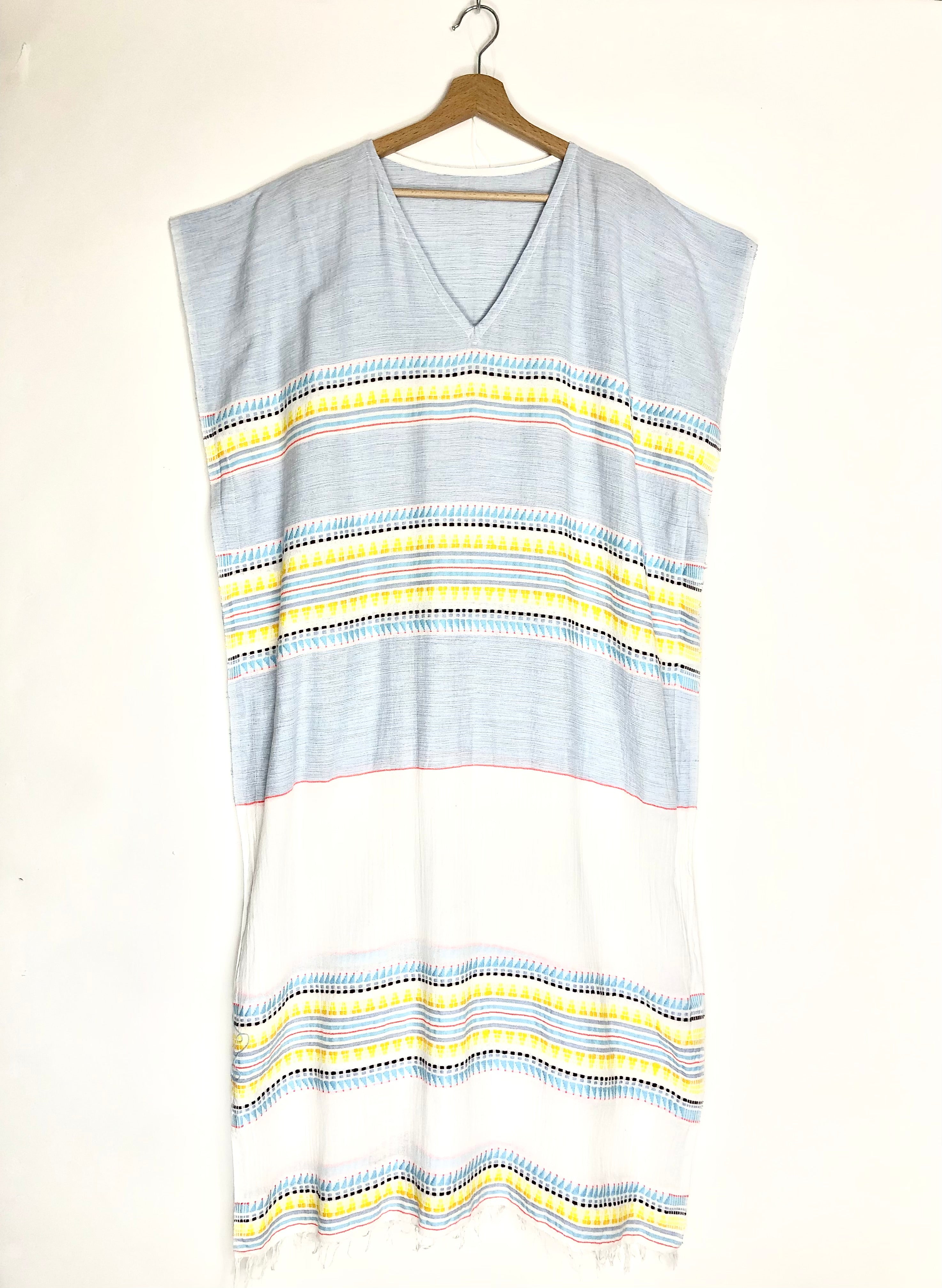 Sky Blue KITELI Striped Cotton Classic Midi Kaftan / LEMLEM - One Size