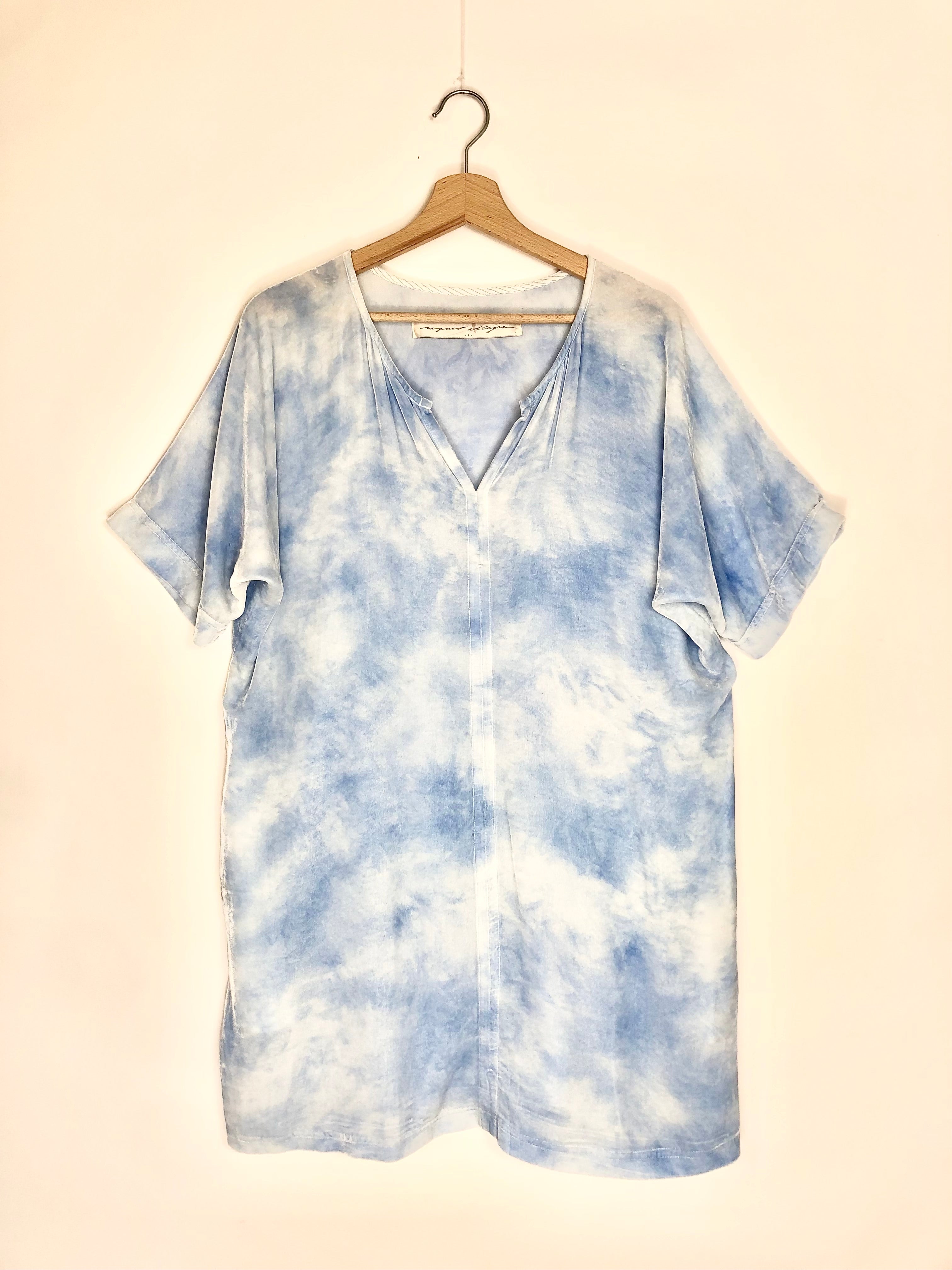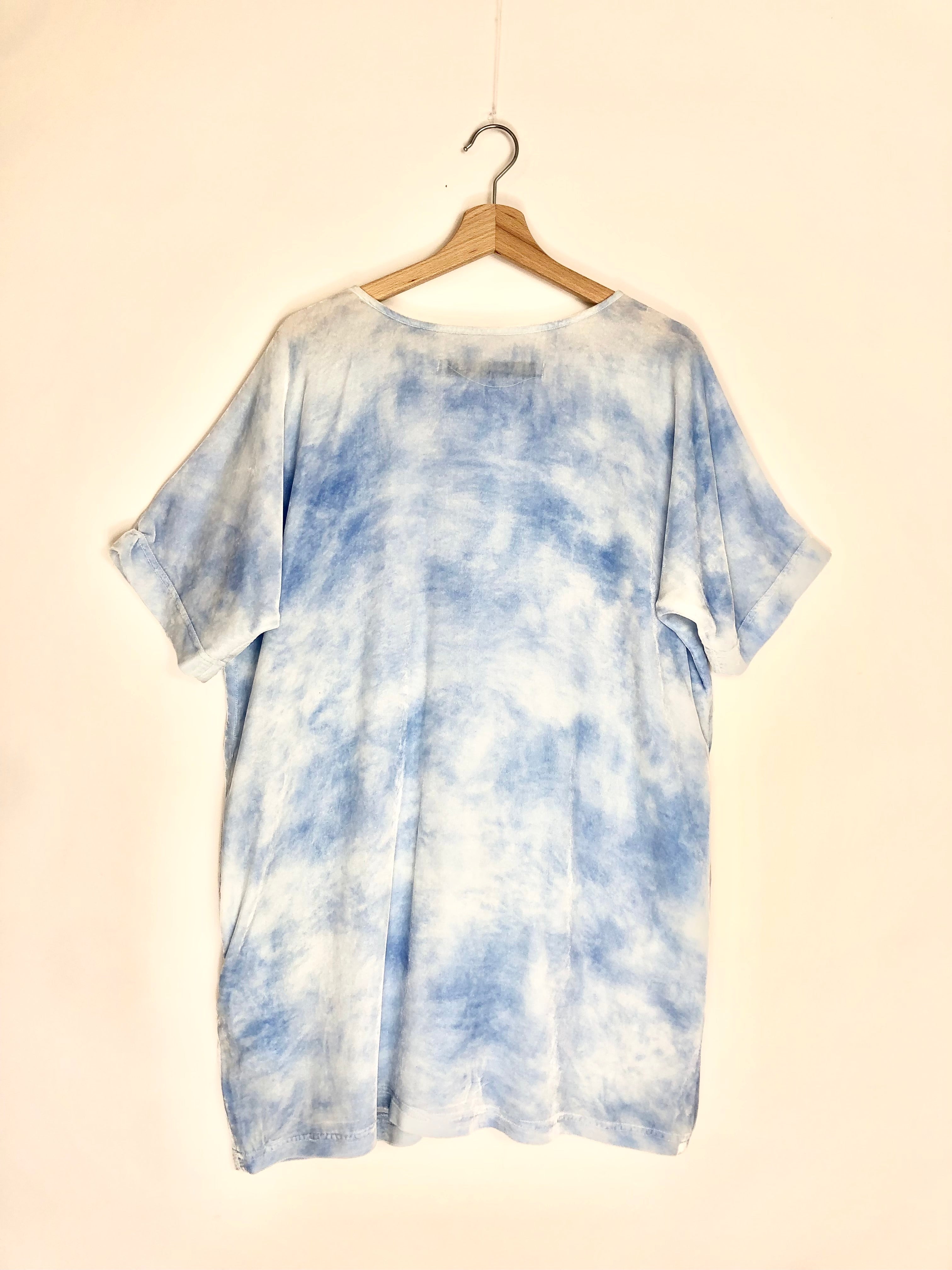 Sky Blue Tie Dyed Velvet Shift Mini Dress / RAQUEL ALLEGRA - Size 1