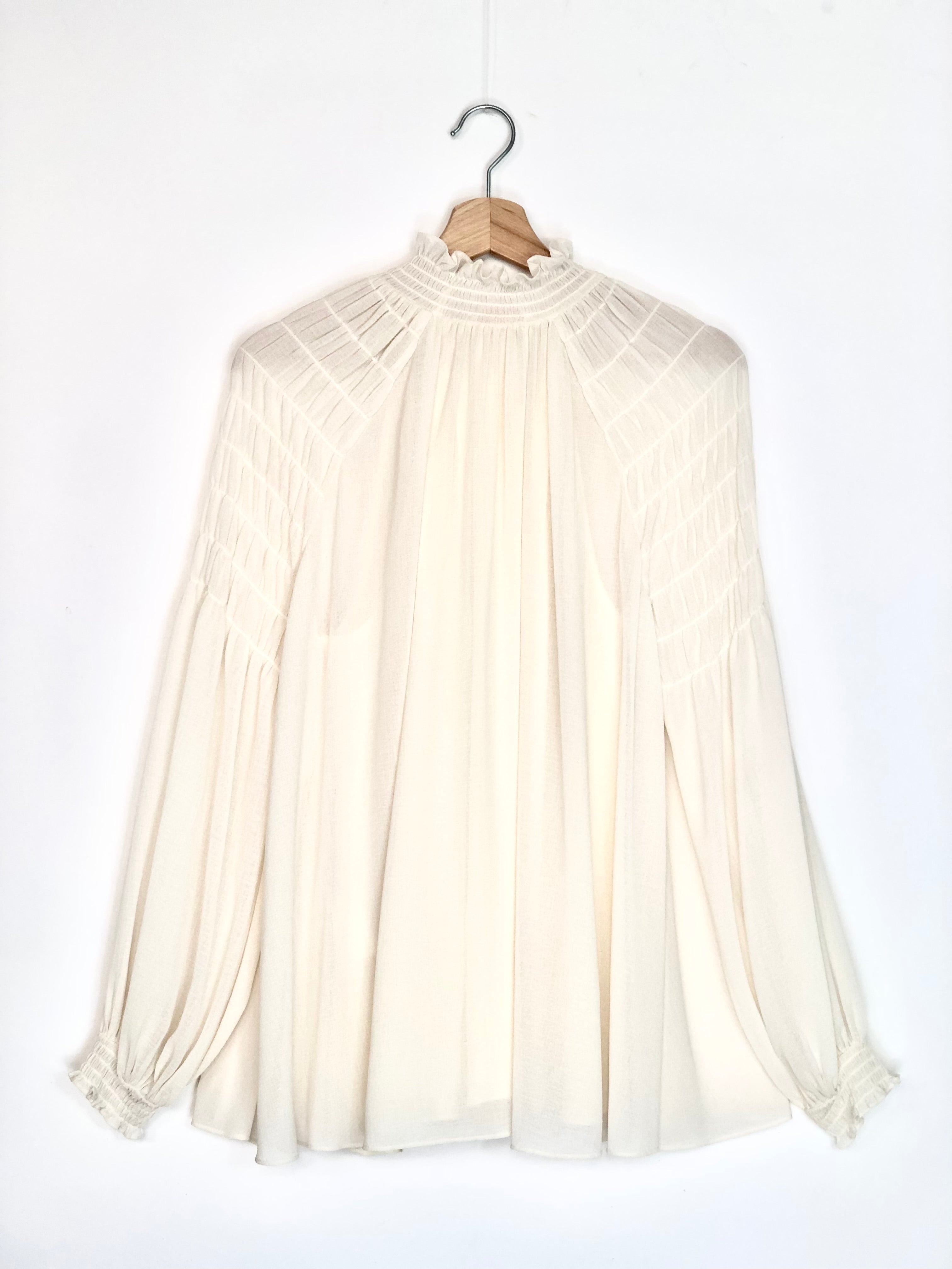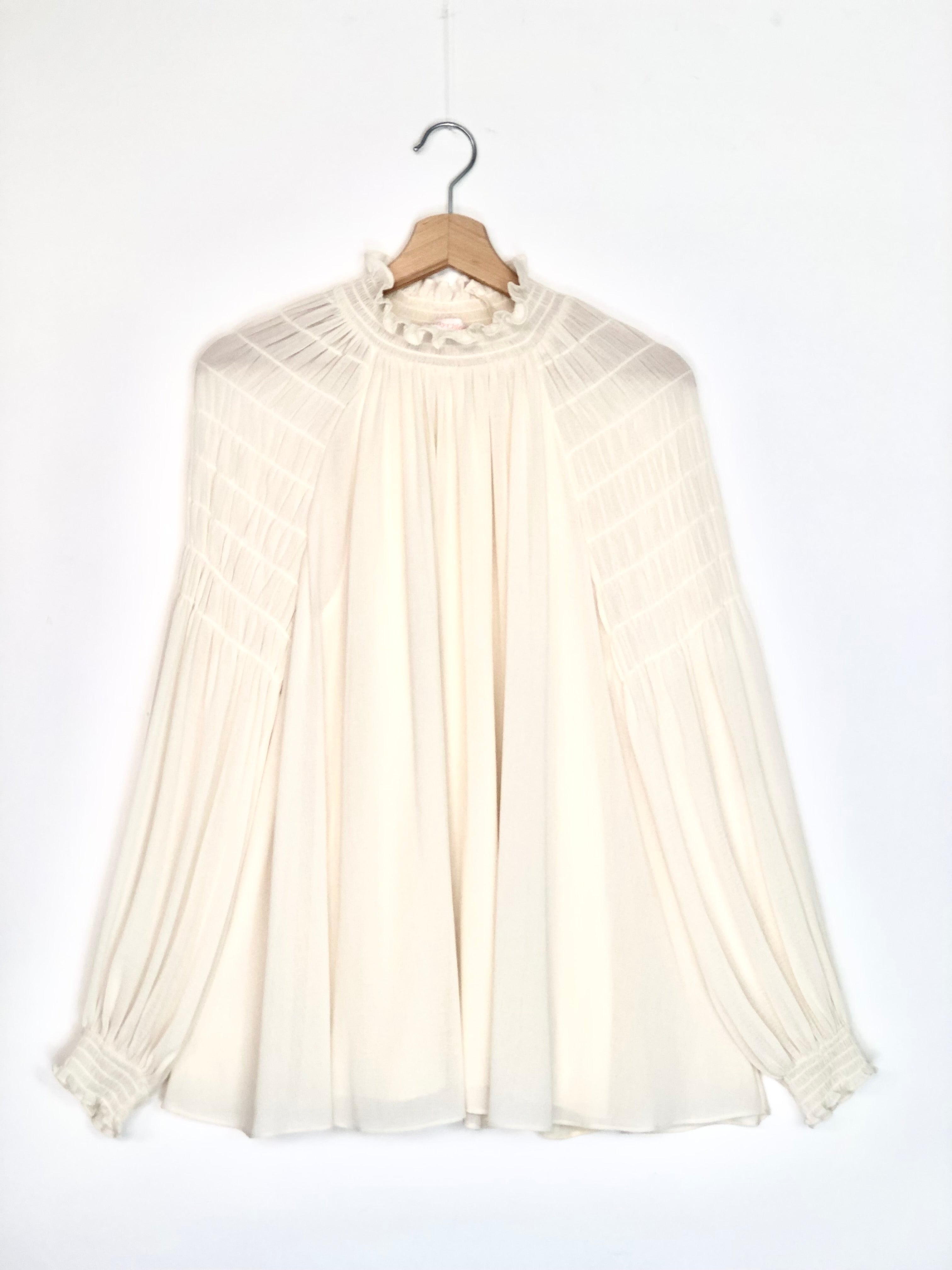 Soft Ivory Georgette Ruffled Neck Blouse / SEE BY CHLOE - Size 36