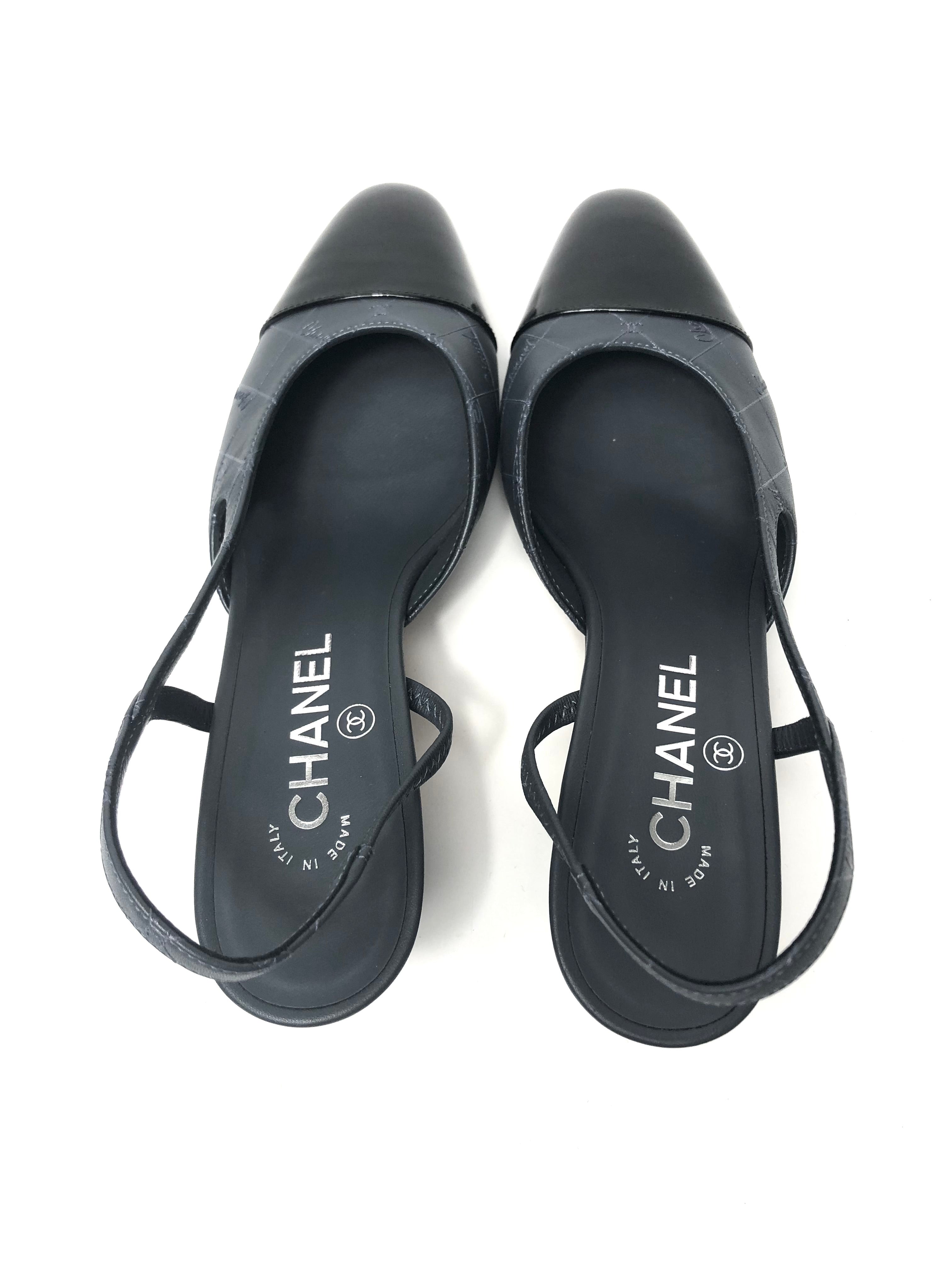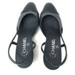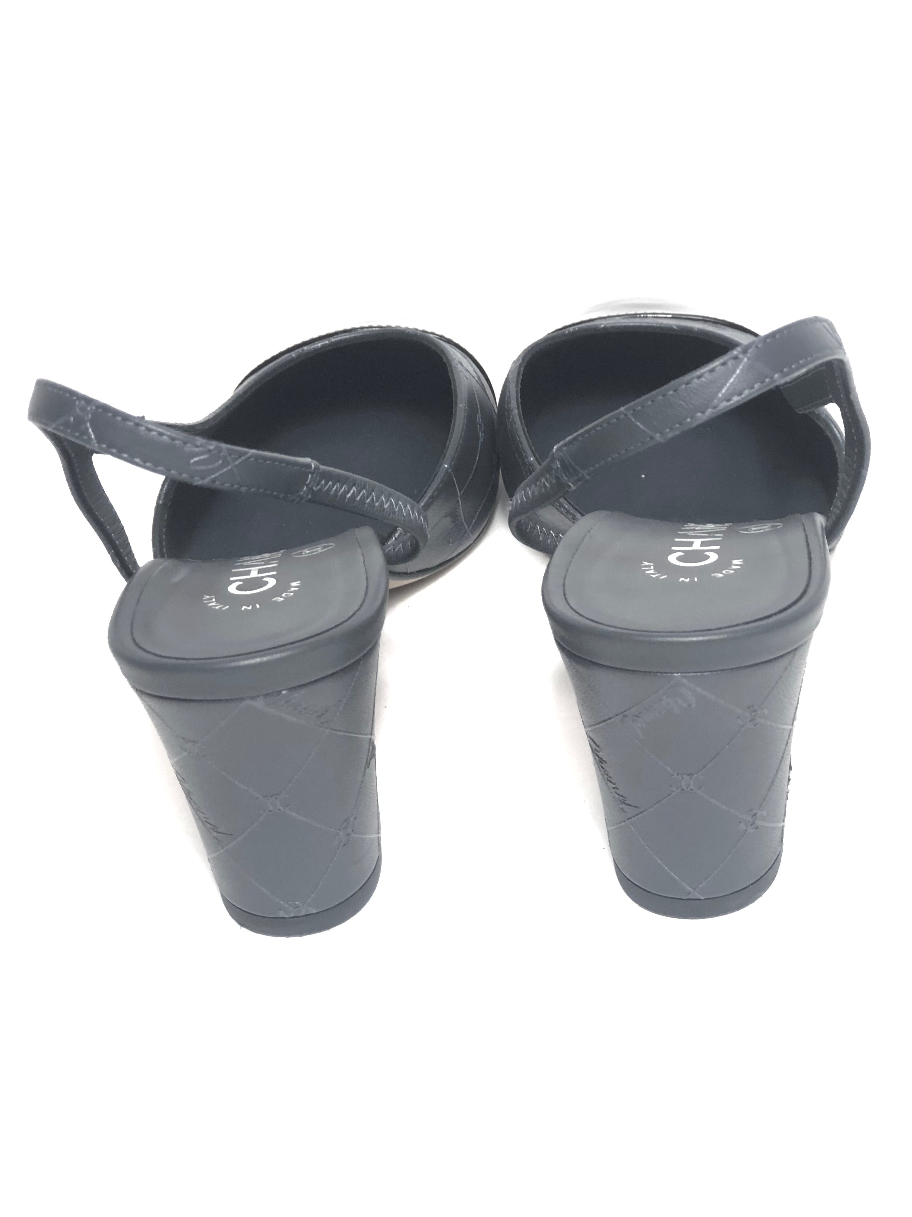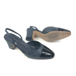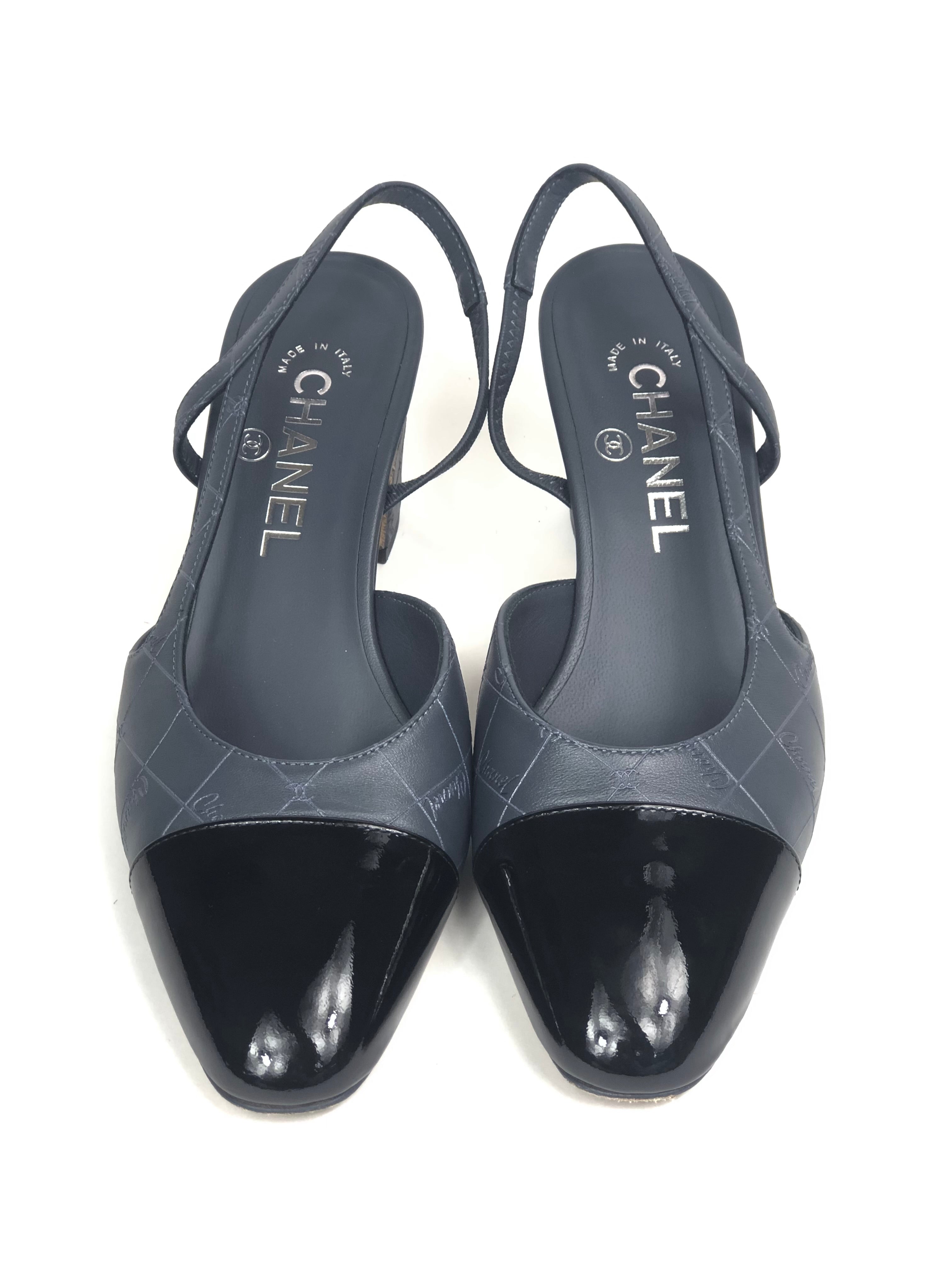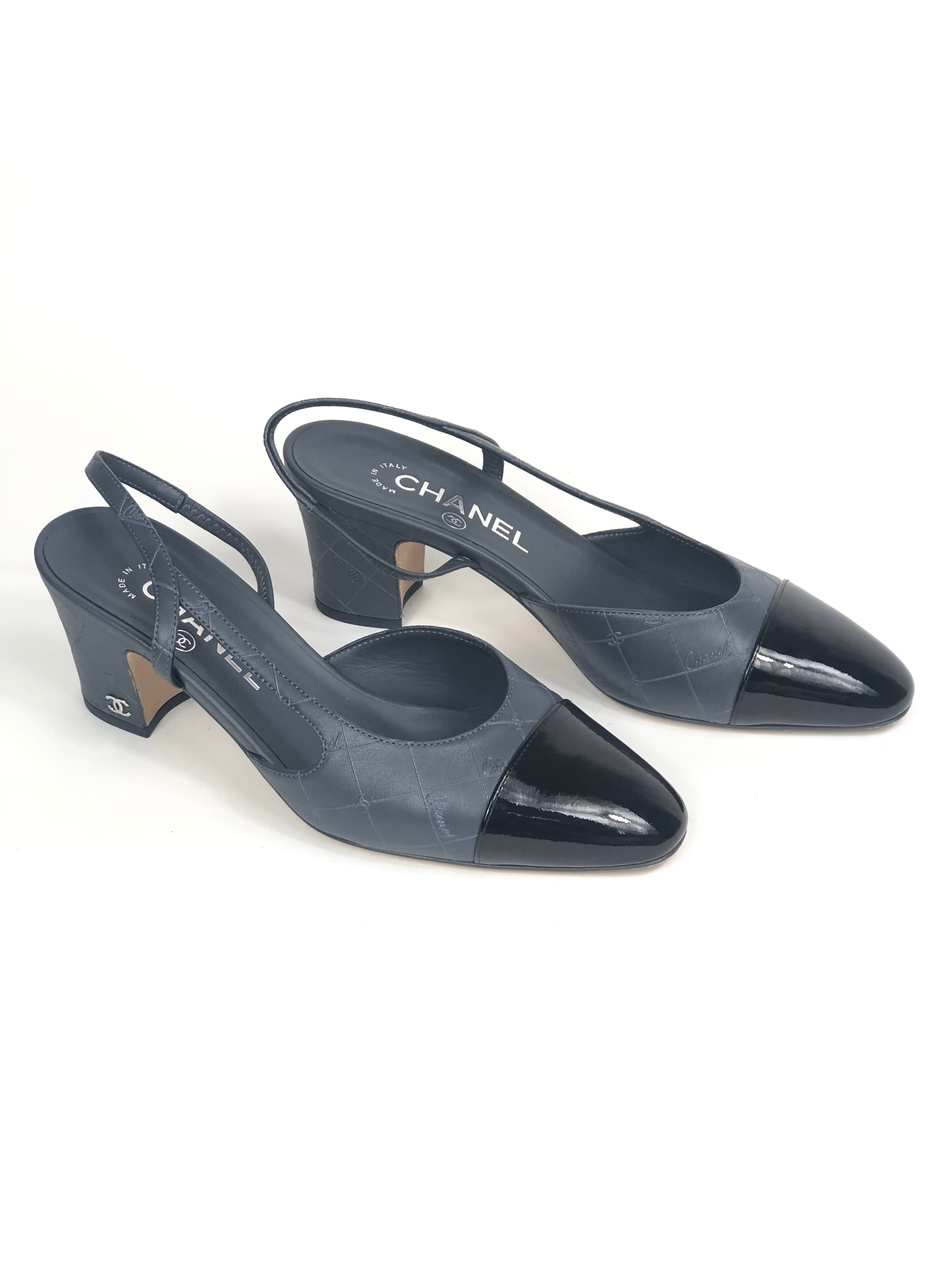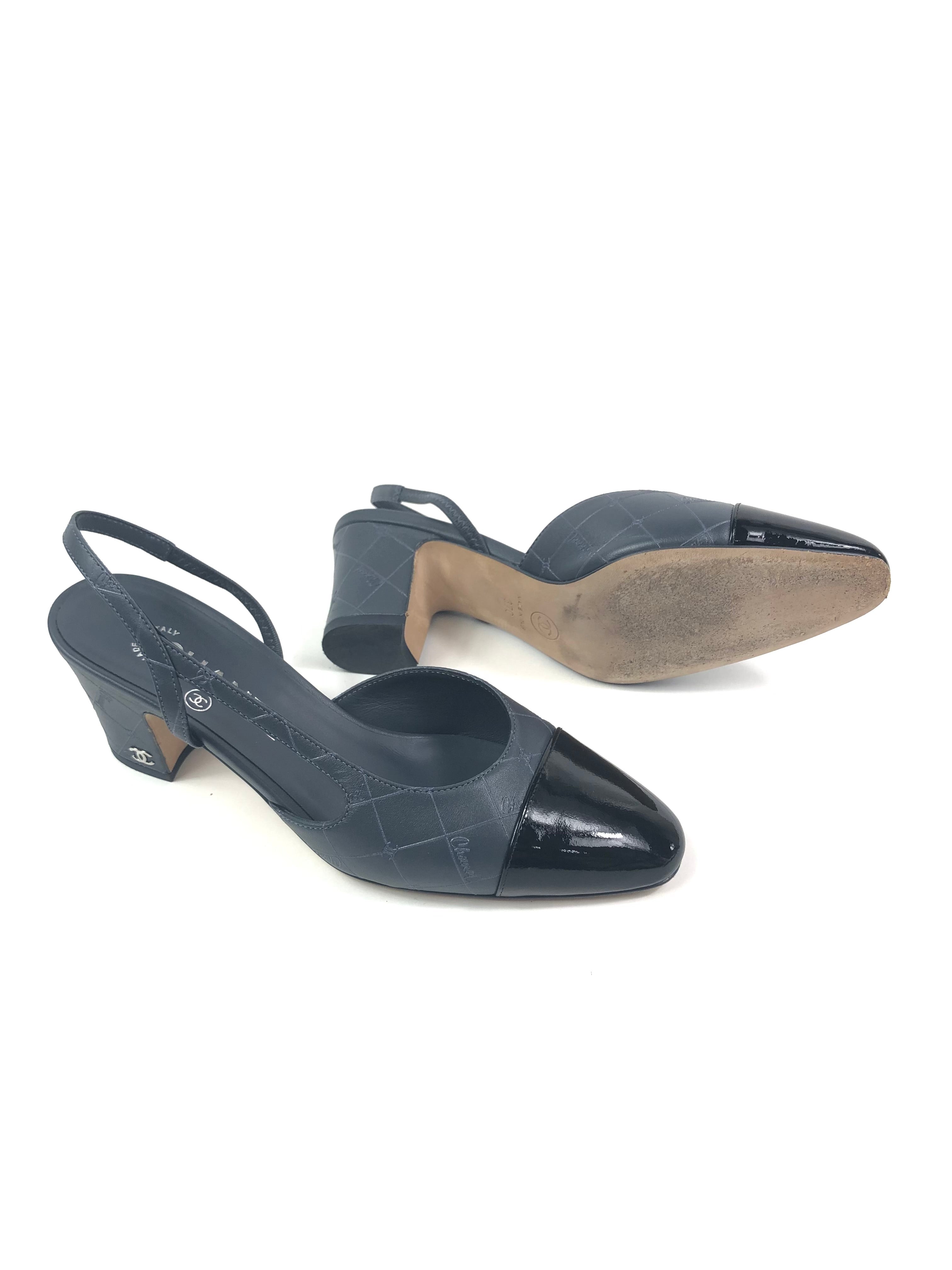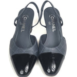 Storm Grey Logo with Black Patent Cap Toe Pumps / CHANEL - Size 37C