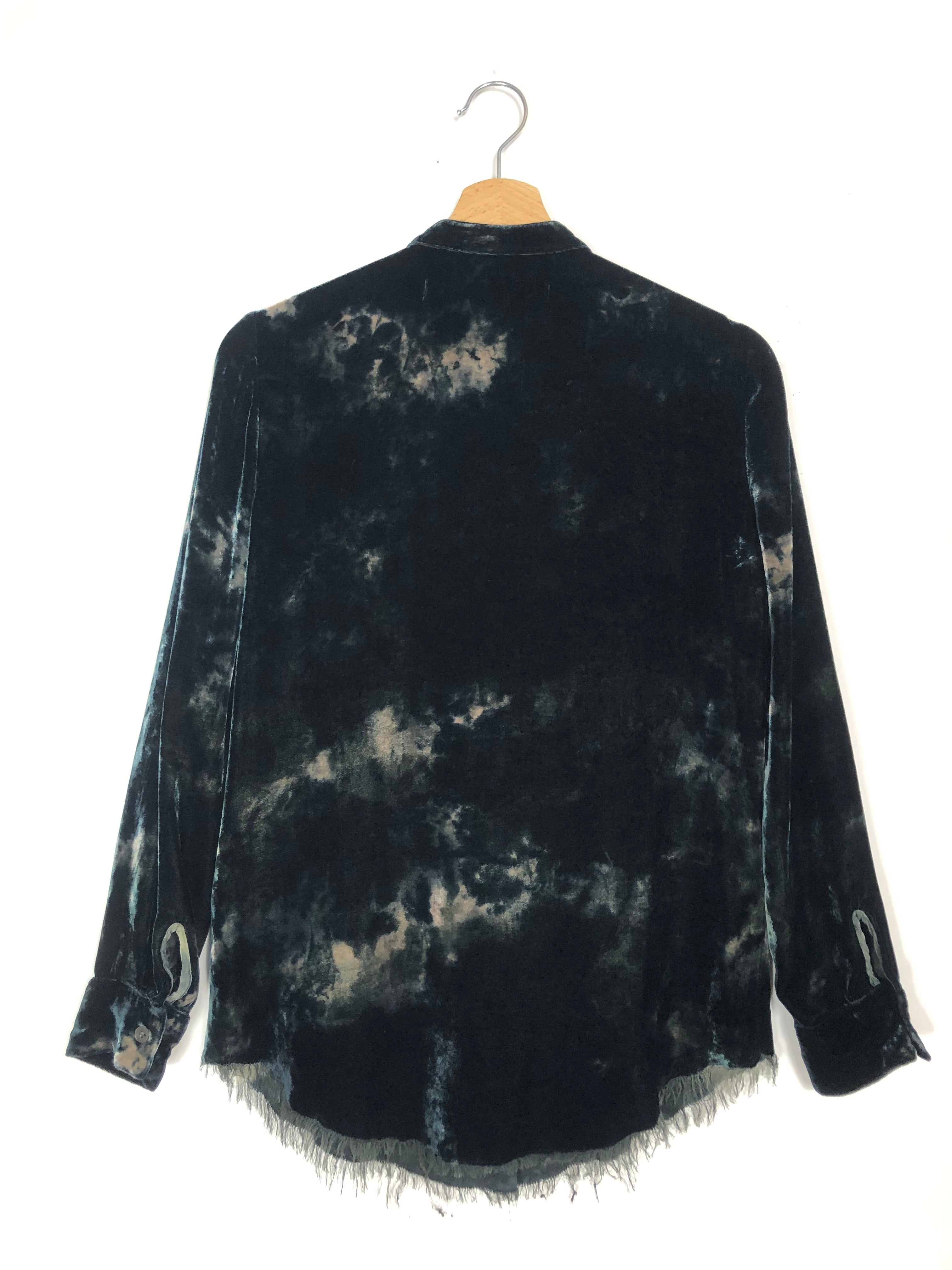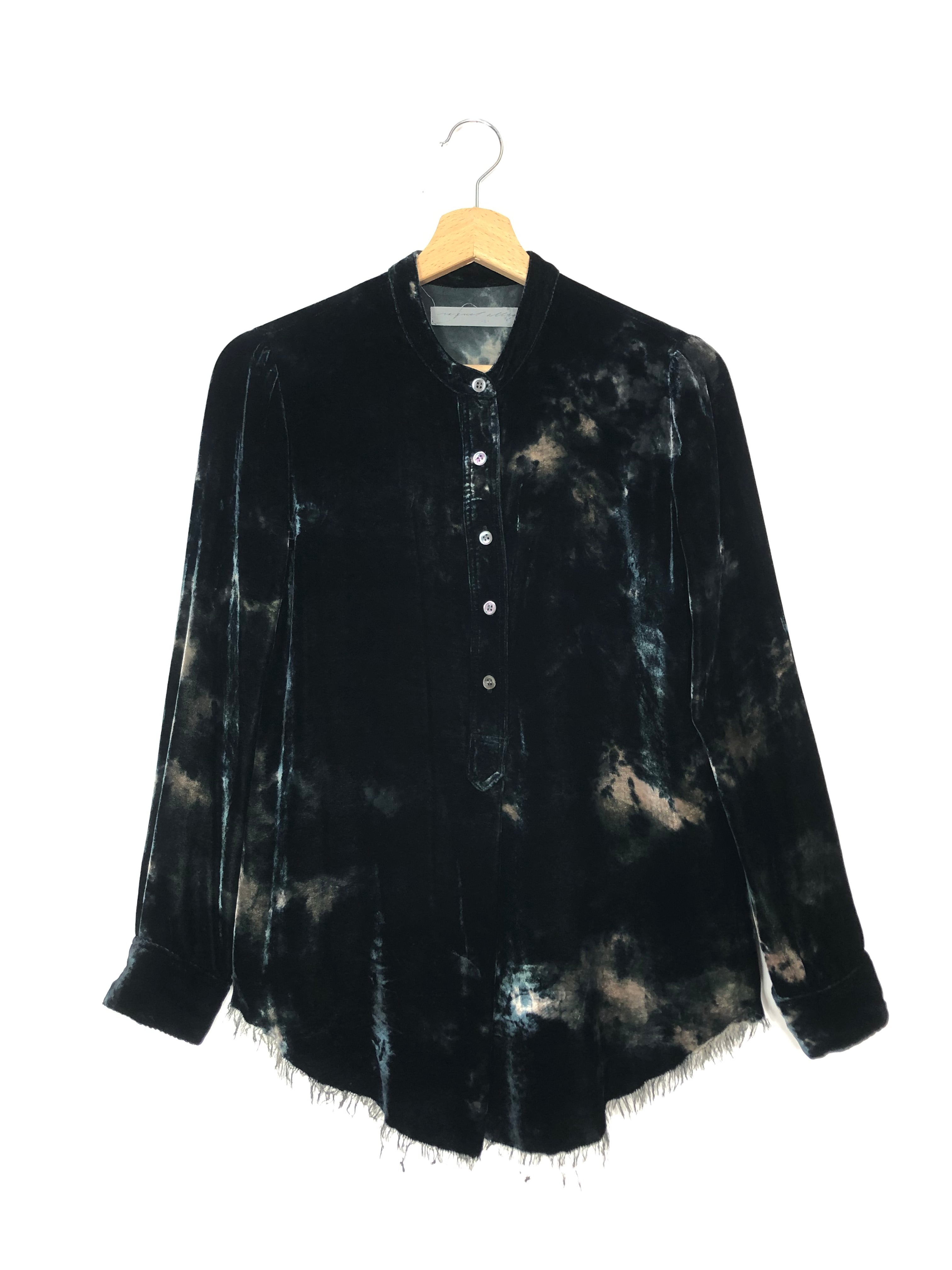 Storm Tie Dye Velvet Raw Edge Long Sleeves Top / RAQUEL ALLEGRA - Size 1