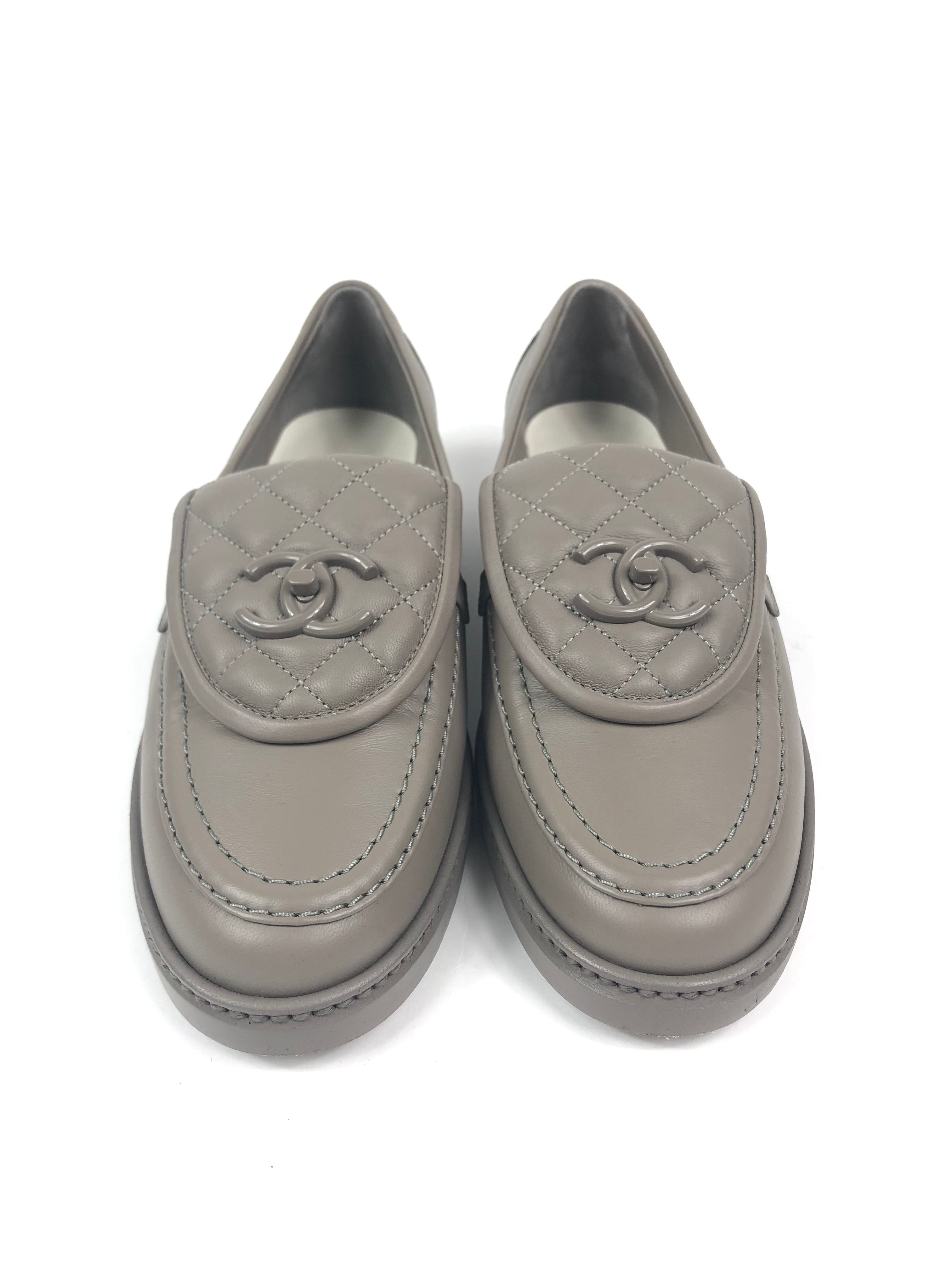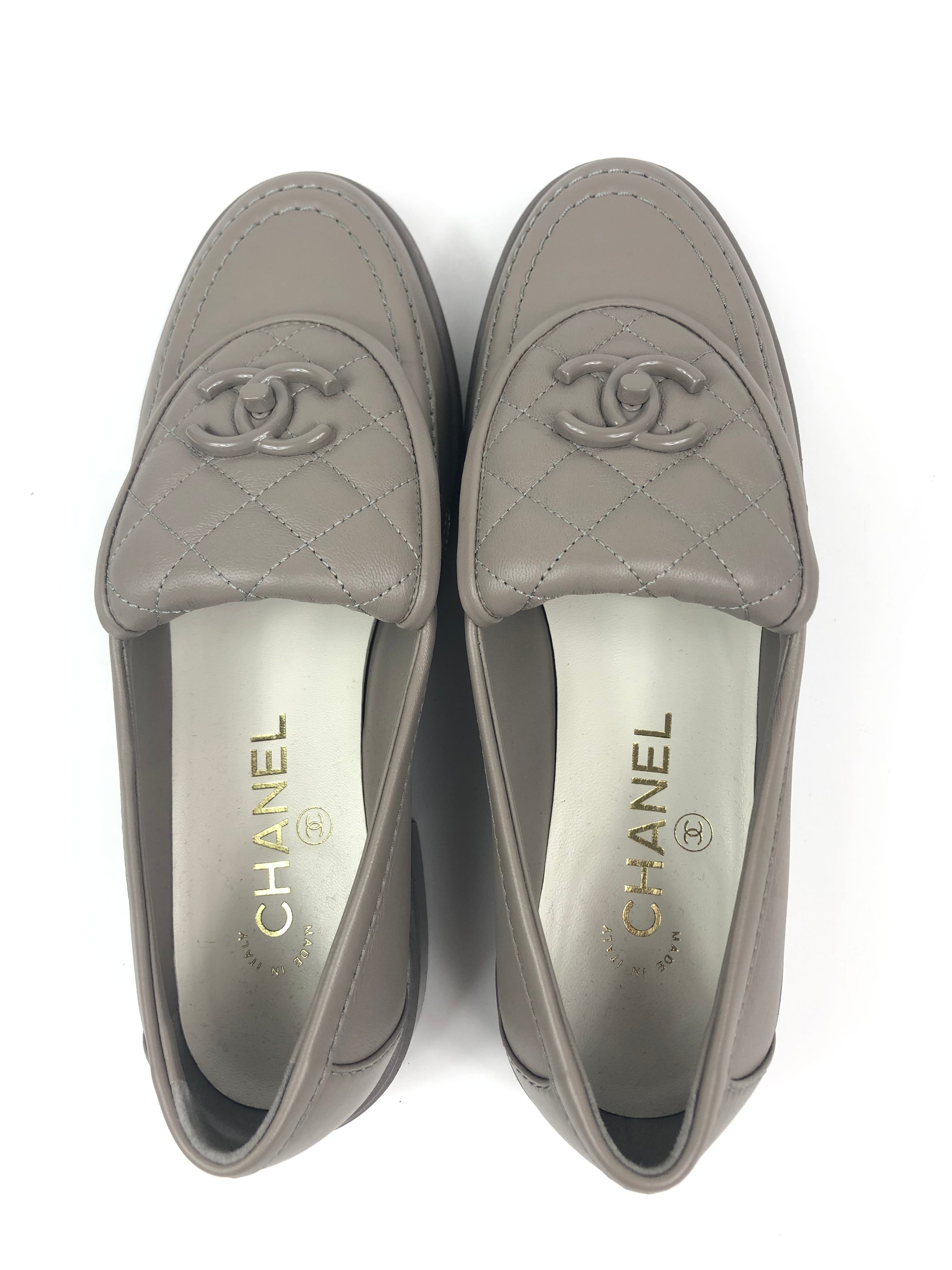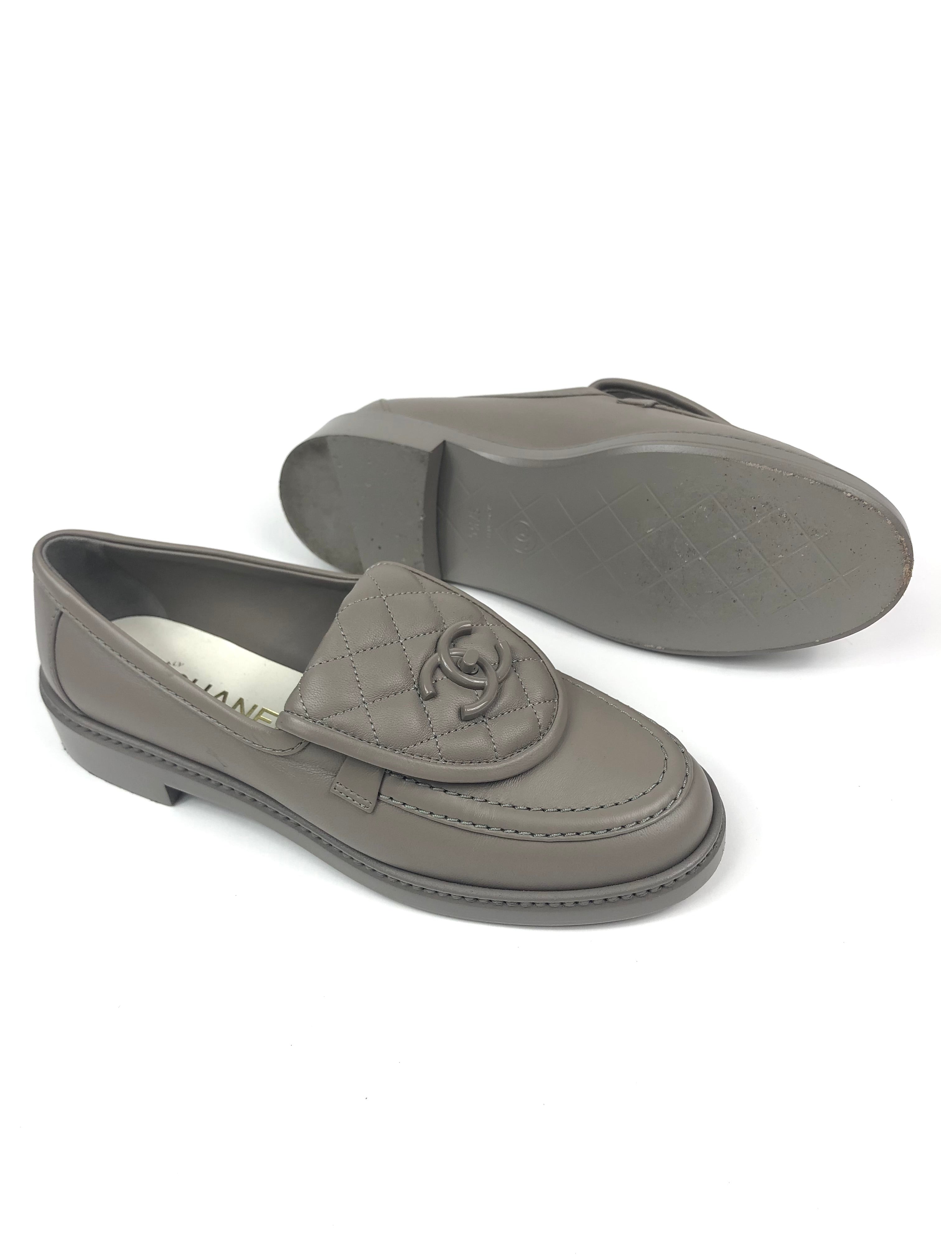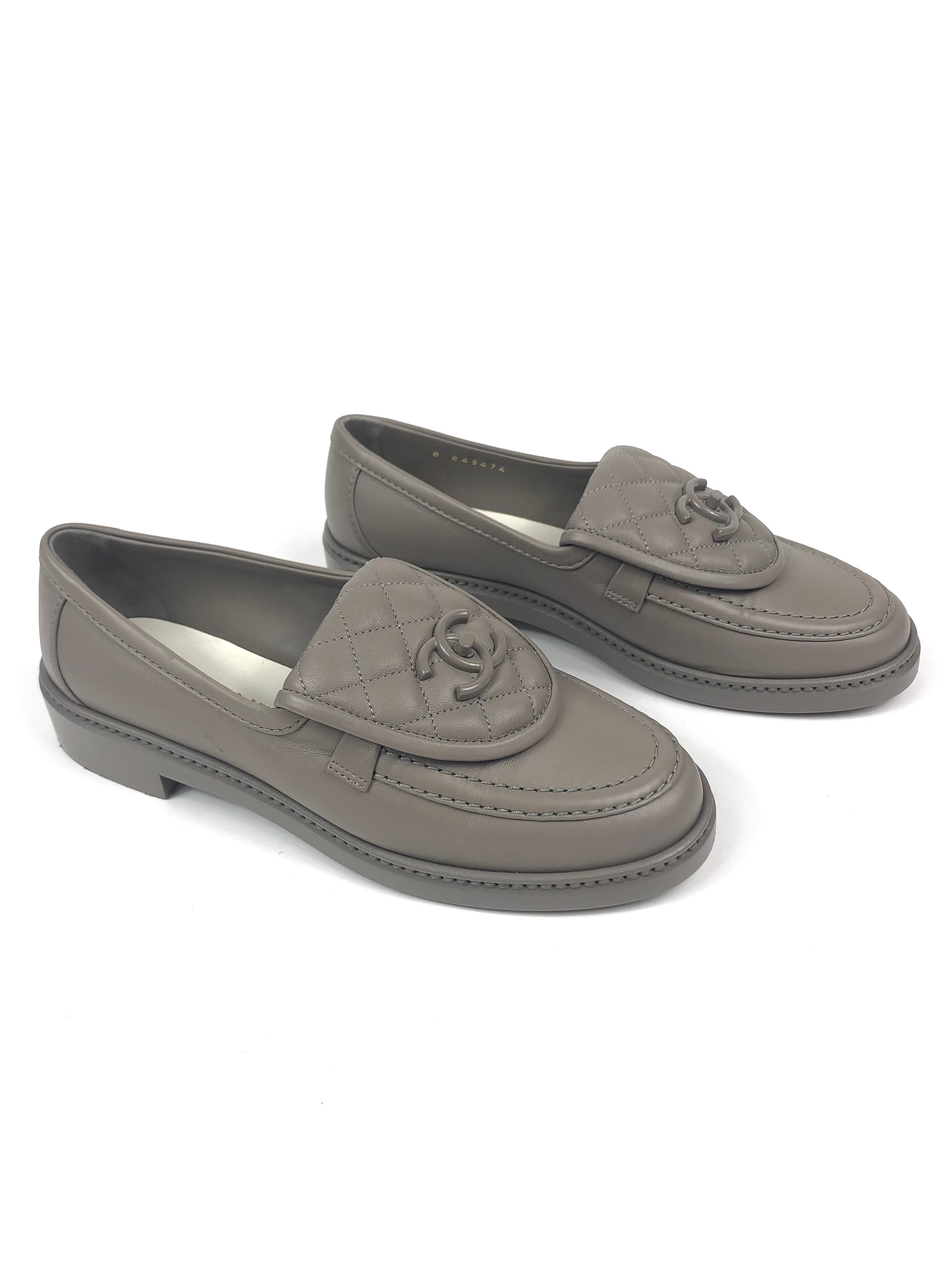 Taupe Quilted Lambskin Leather CC Turnlock Loafers / CHANEL - Size 37C