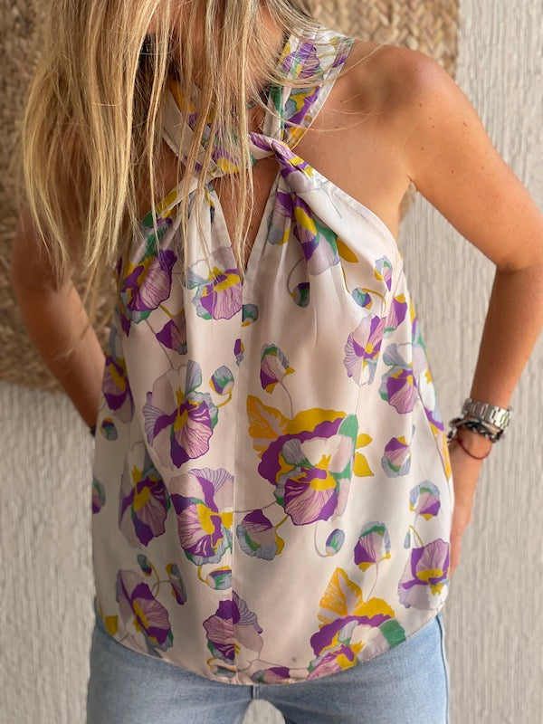 Twisted Floral-Print Silk-Chiffon Sleeveless Top - model STEPHENEA (SS20) / ISABEL MARANT - Size 40