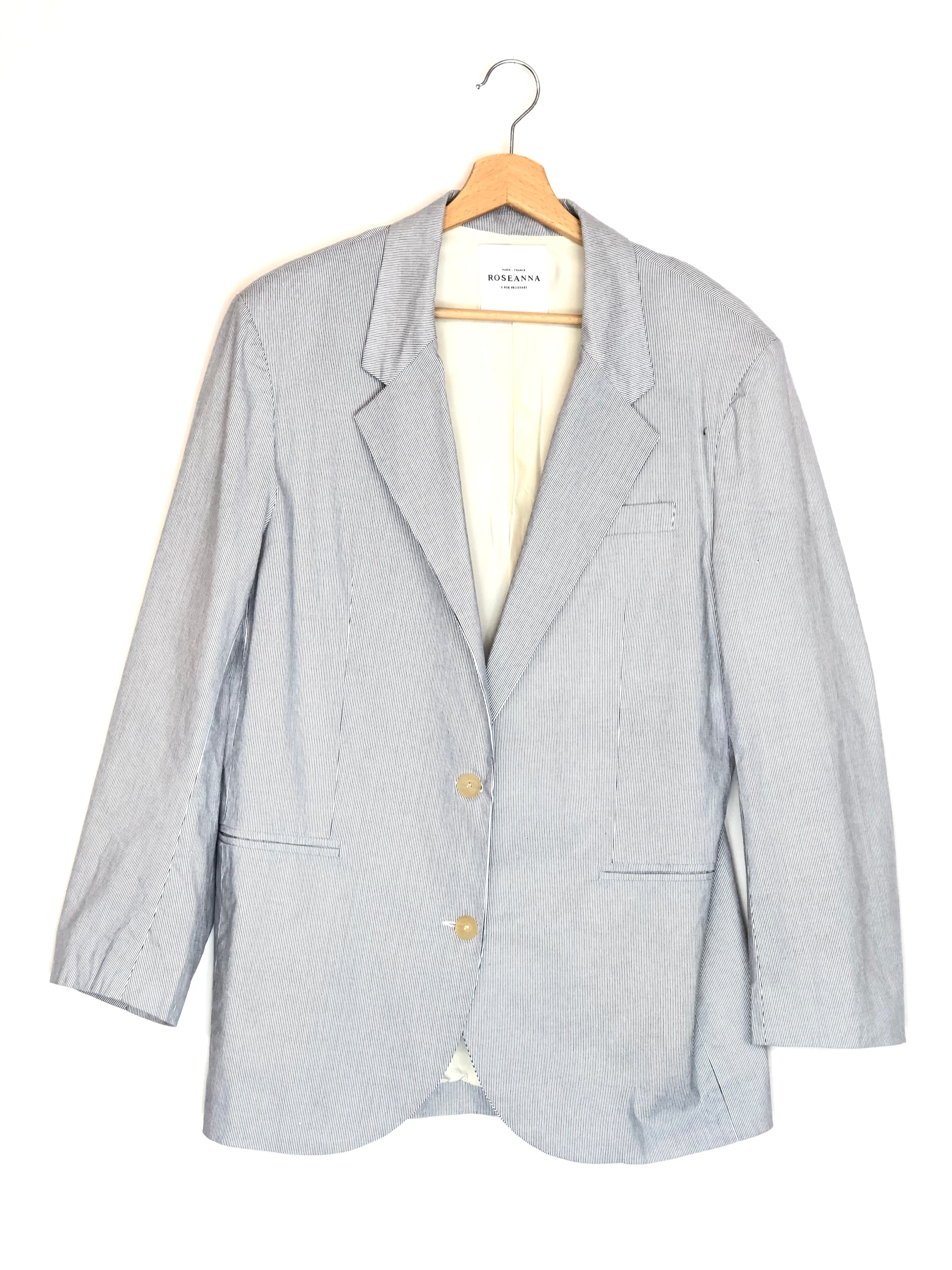 White and Blue Striped BRIGHTON Cotton/Linen Jacket / ROSEANNA - Size 36