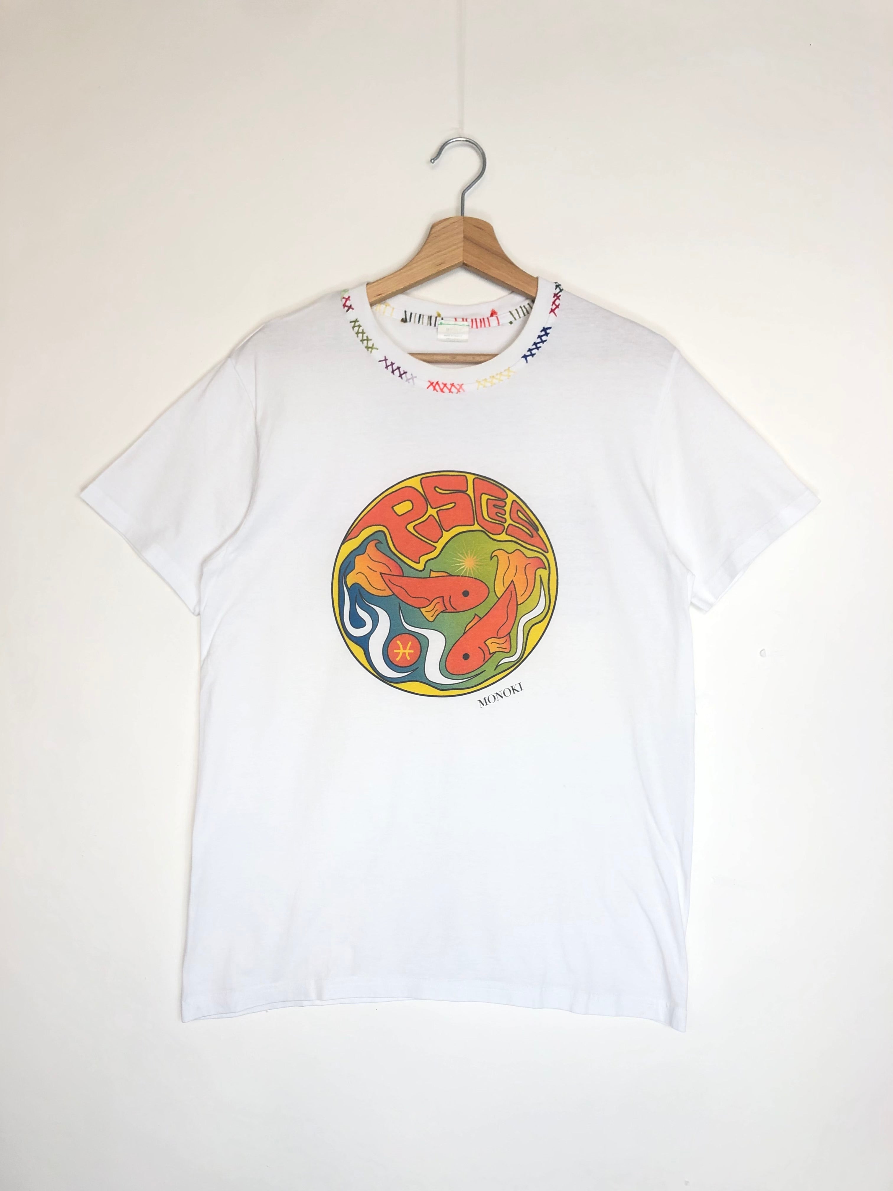 White Astrological Sign Tee Shirt - PISCES / MONOKI - One Size