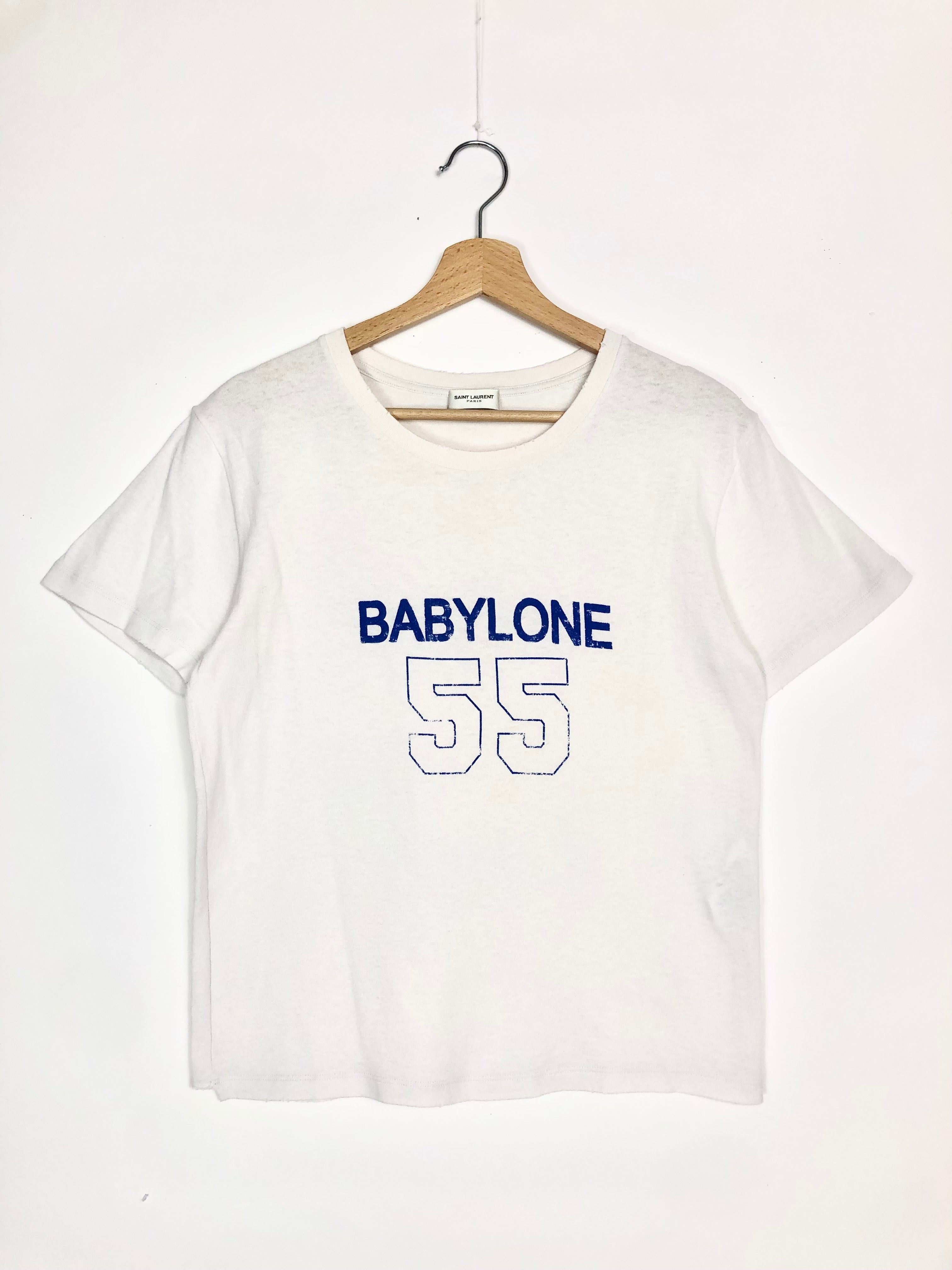 White "Babylone 55" Cotton Short Sleeve T-shirt / SAINT LAURENT - Size XS