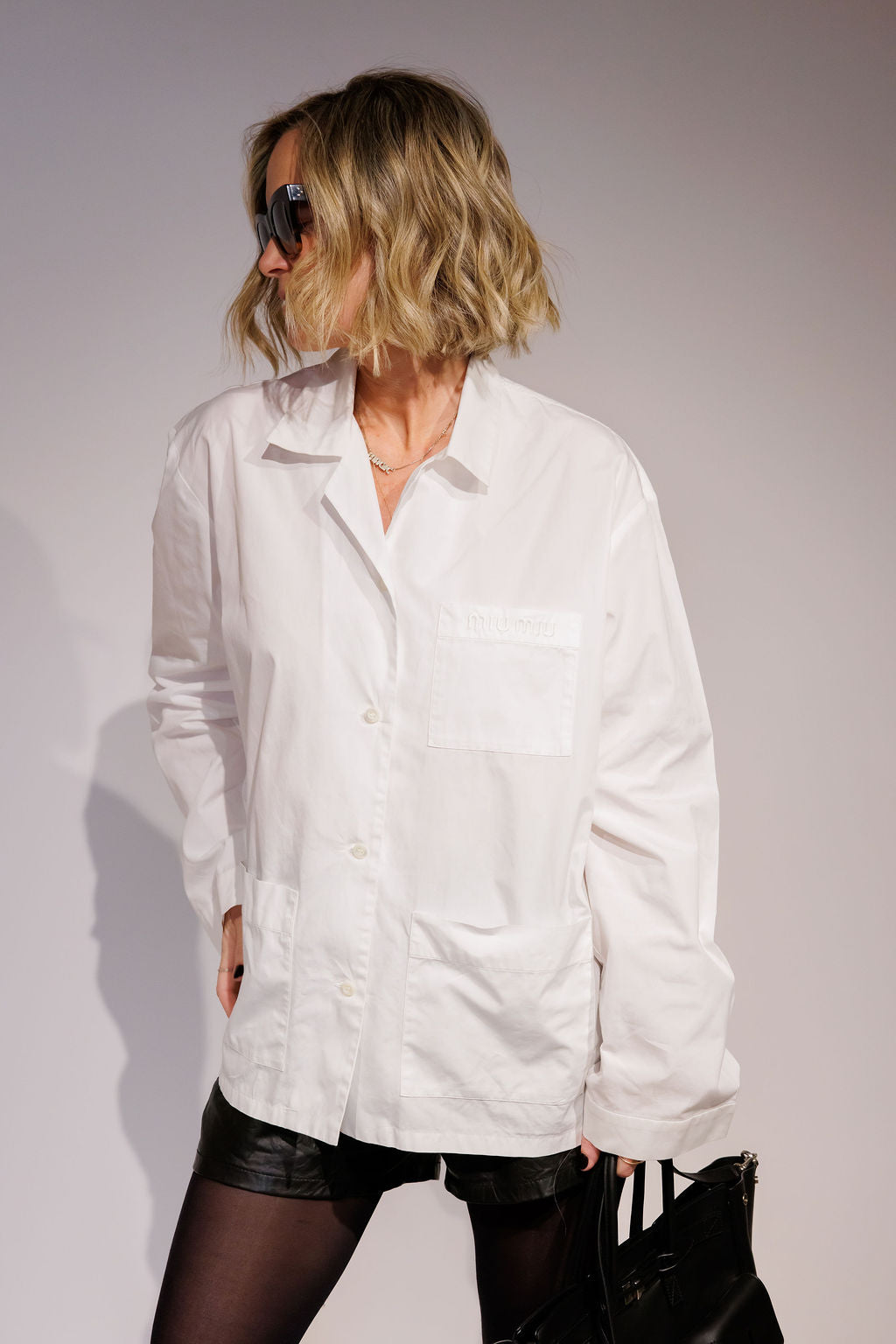White Button down Chest Logo Embroidered Poplin Shirt / MIU MIU - Size 38