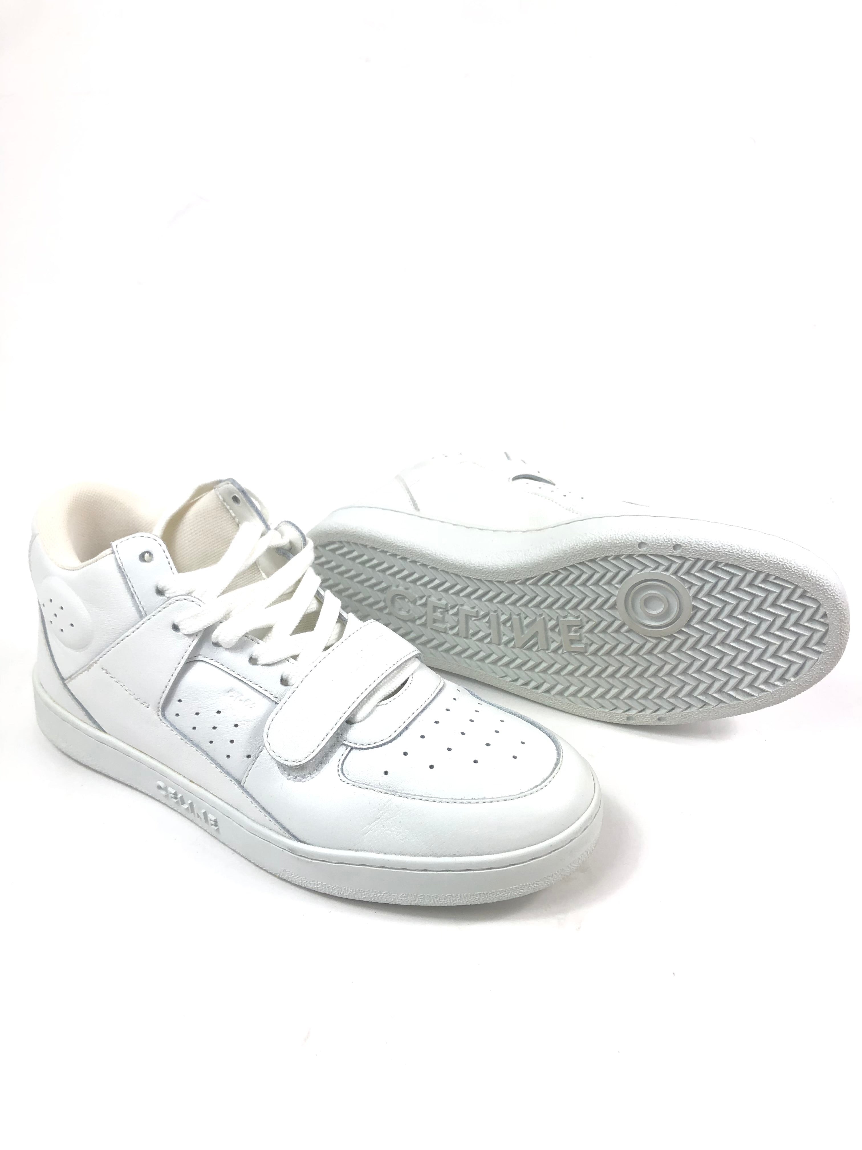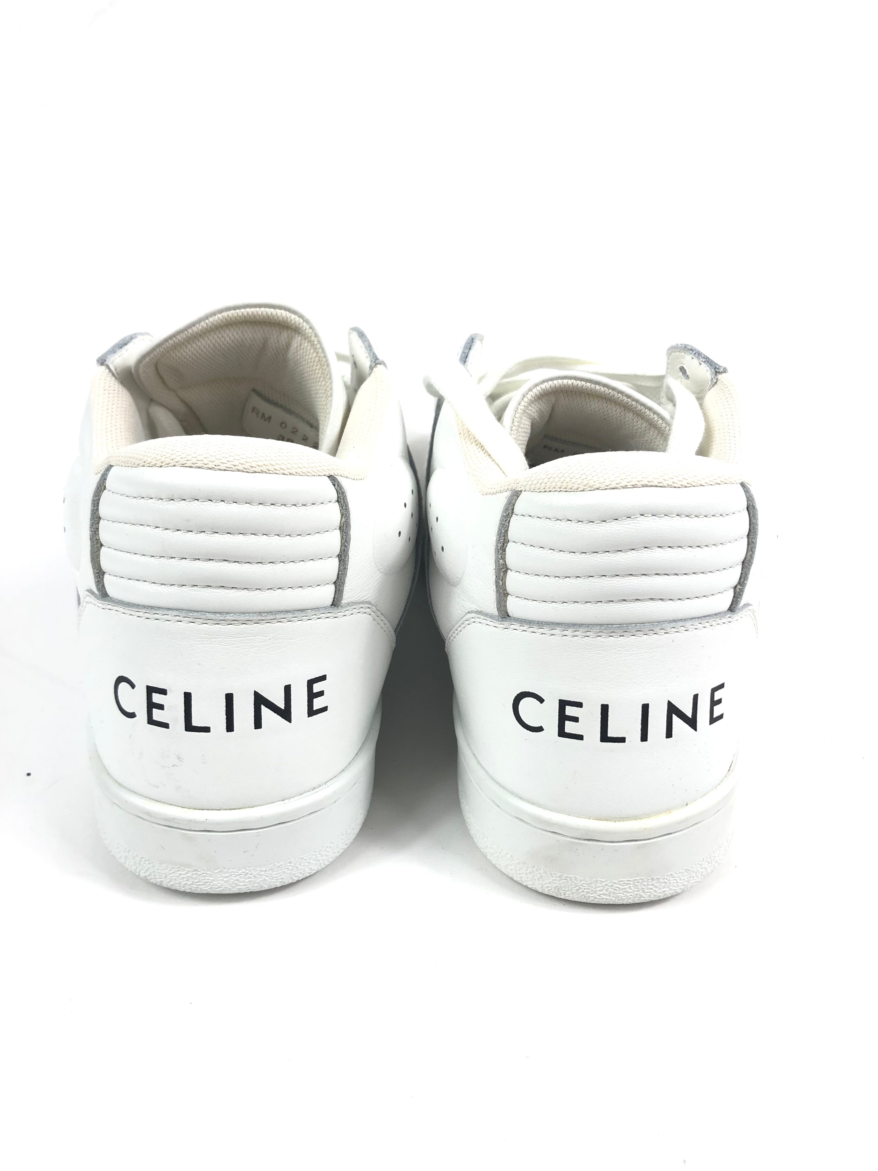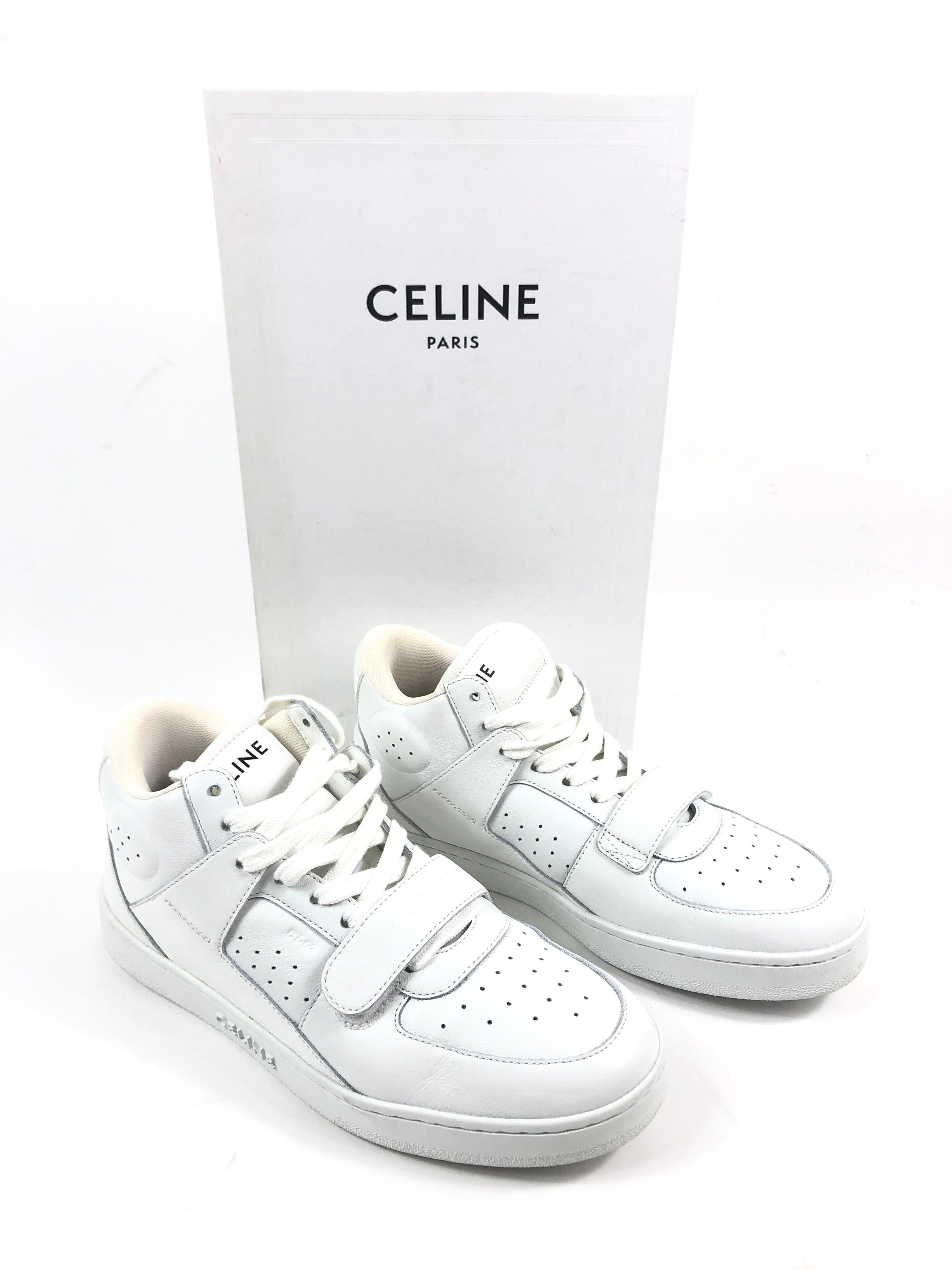 White Calf Leather Laced-up High Top CT-02 Sneakers / CELINE - Size 39