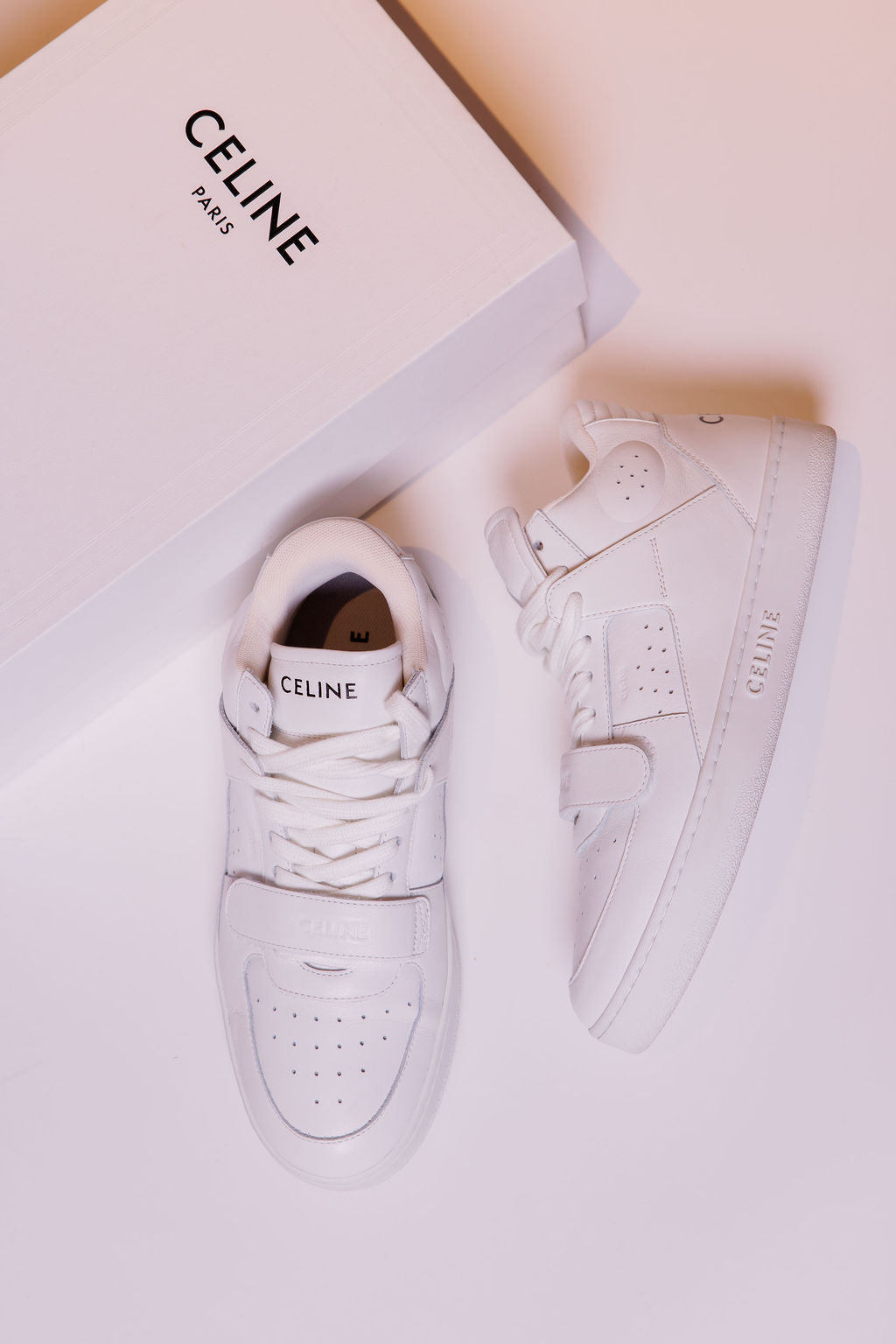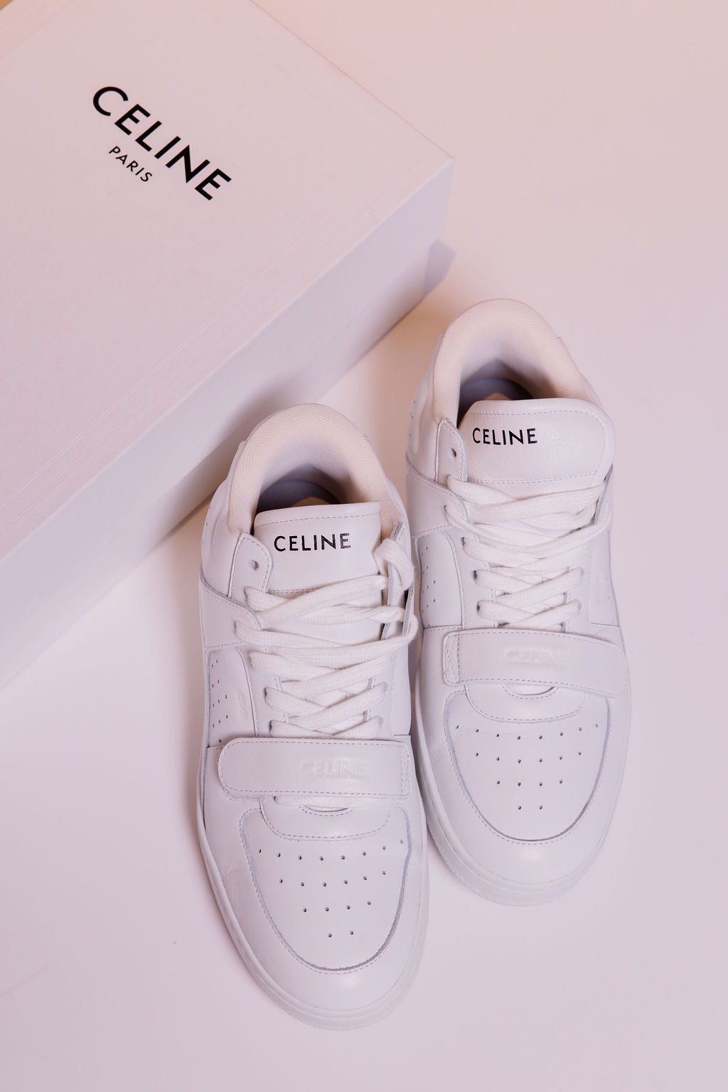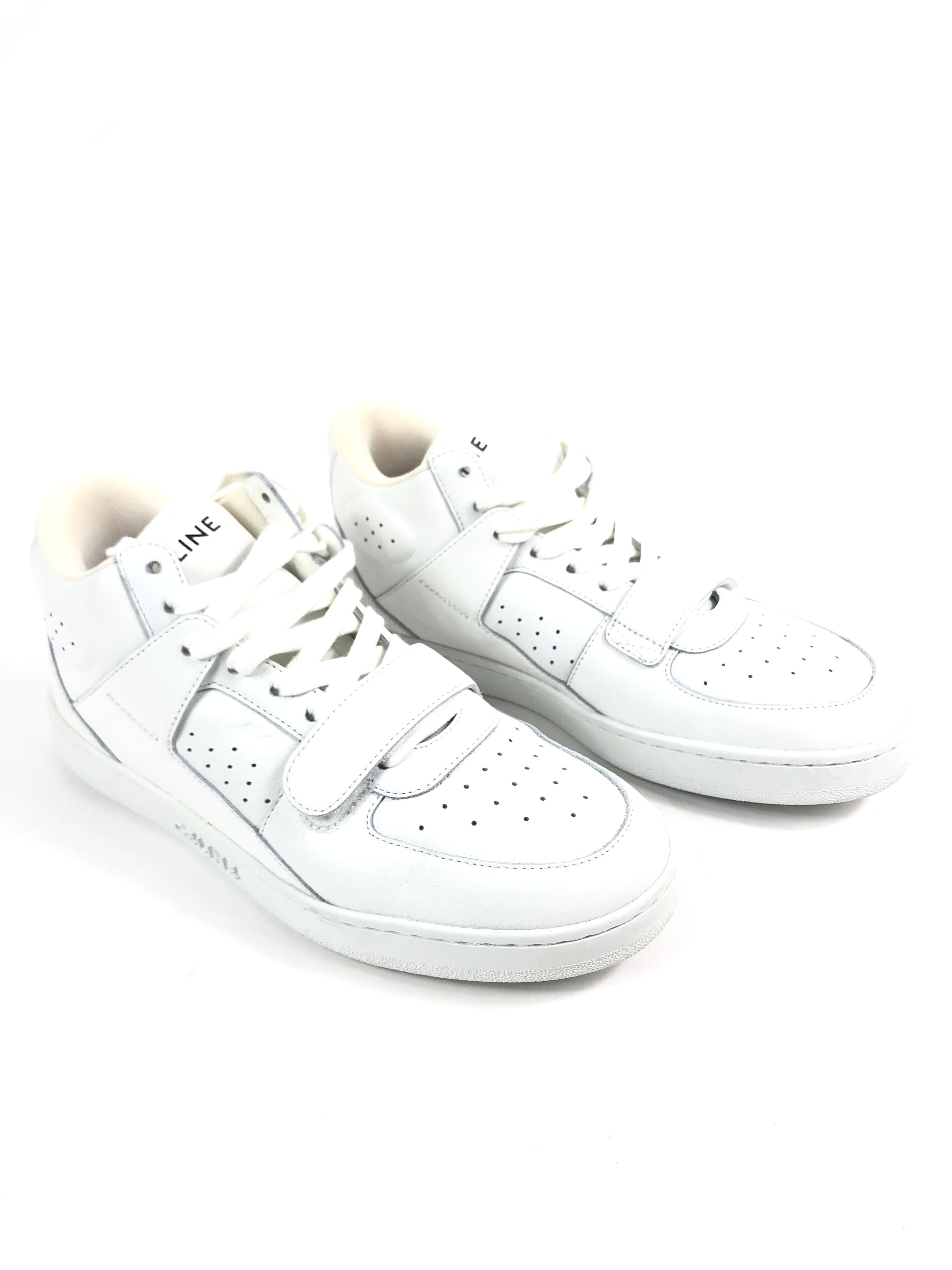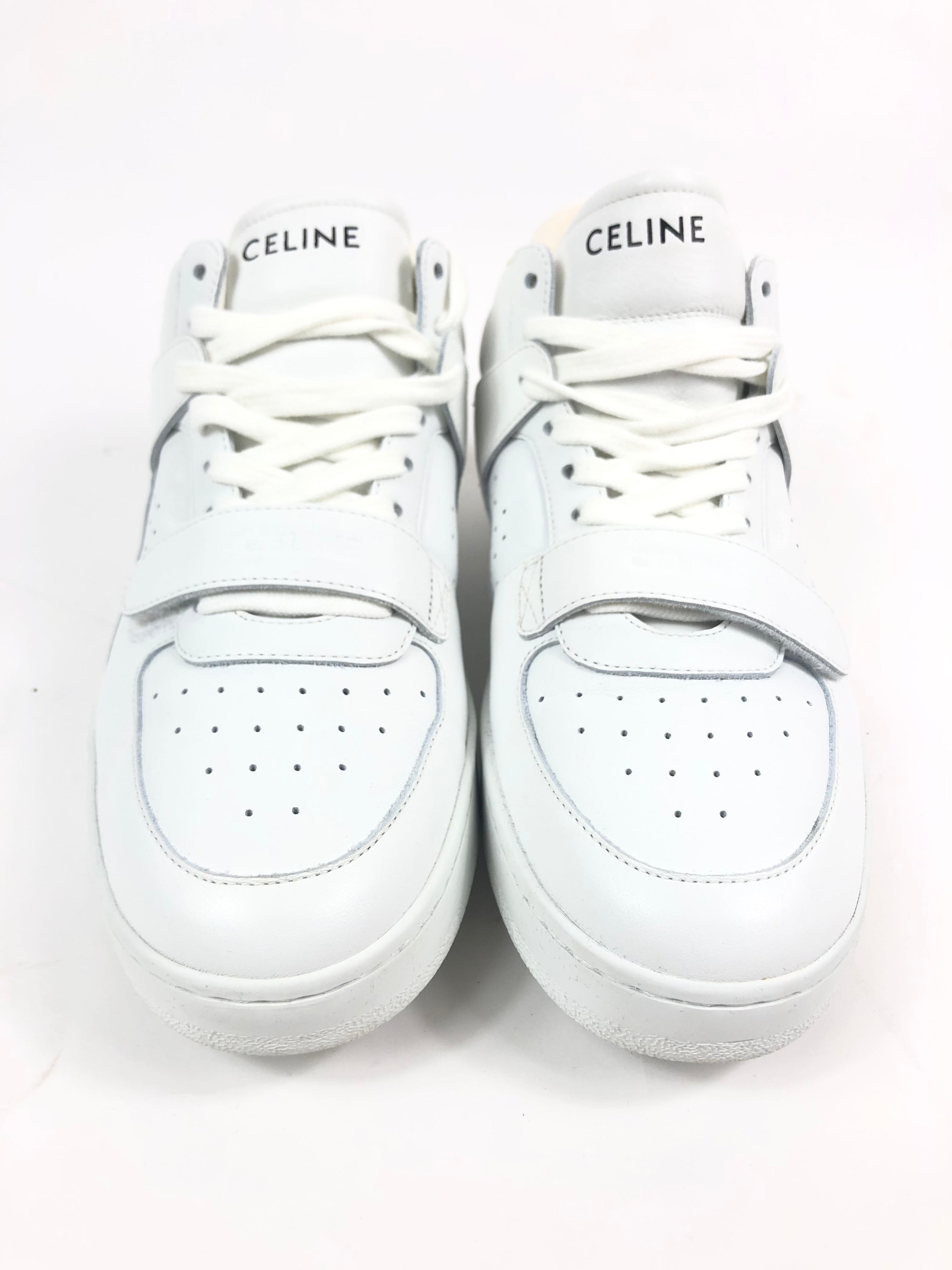 White Calf Leather Laced-up High Top CT-02 Sneakers / CELINE - Size 39