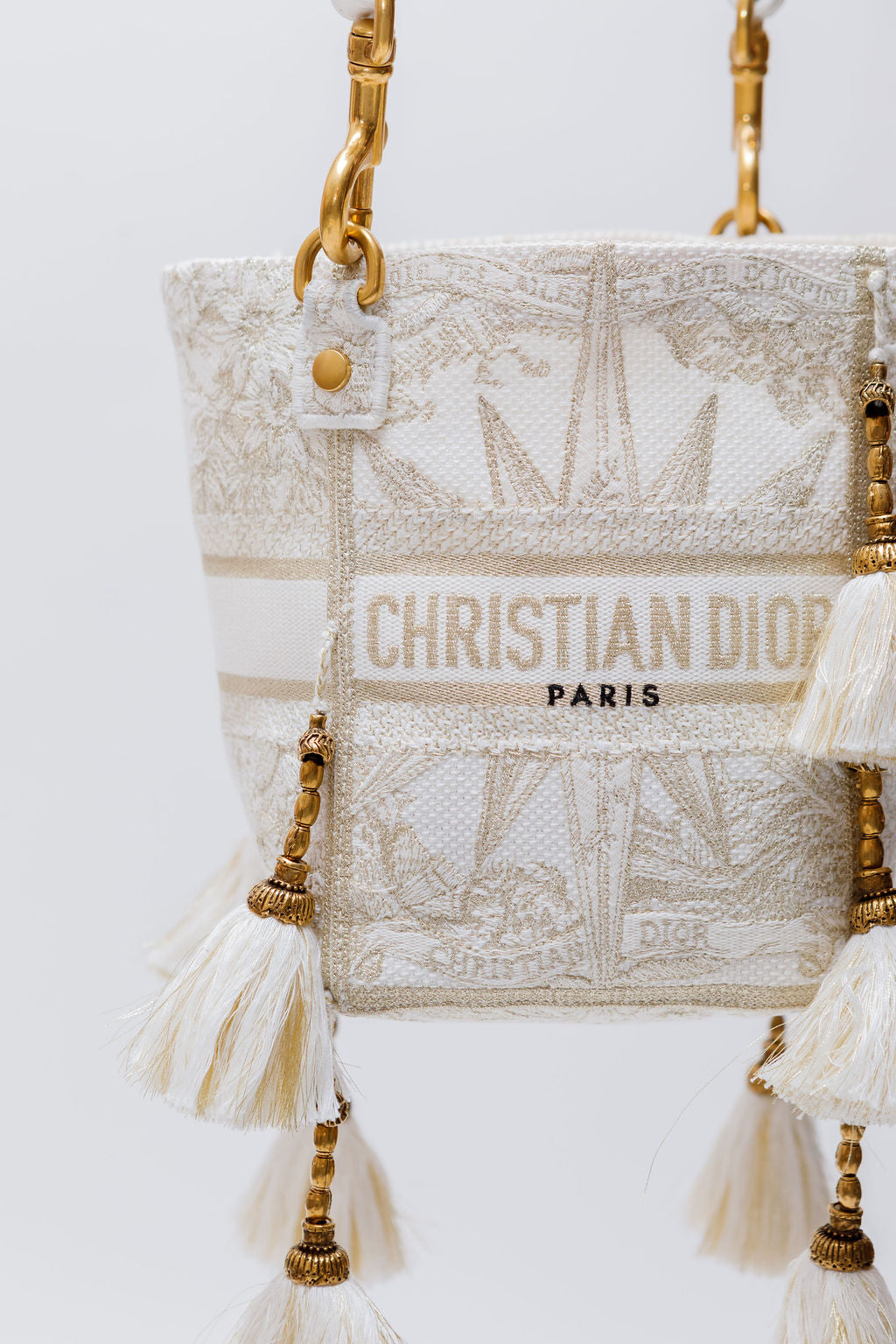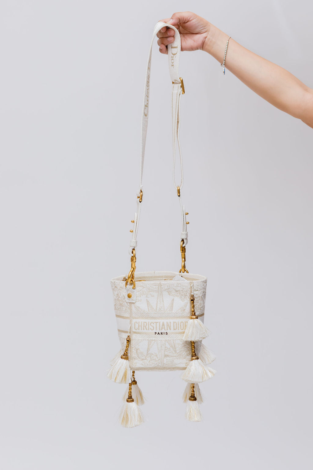 White Canvas D BUBBLE Embroidered Bucket Bag / CHRISTIAN DIOR