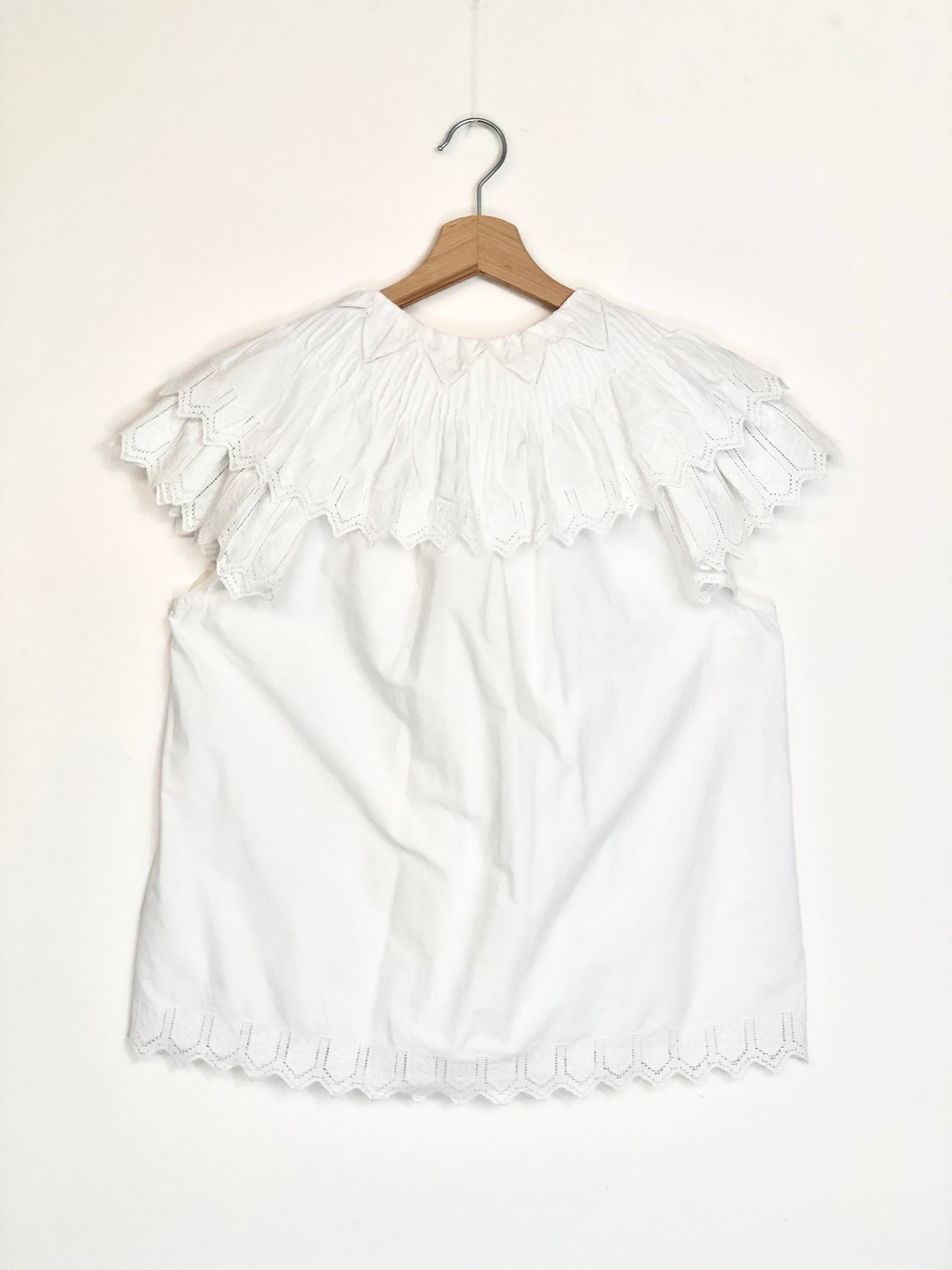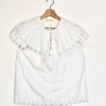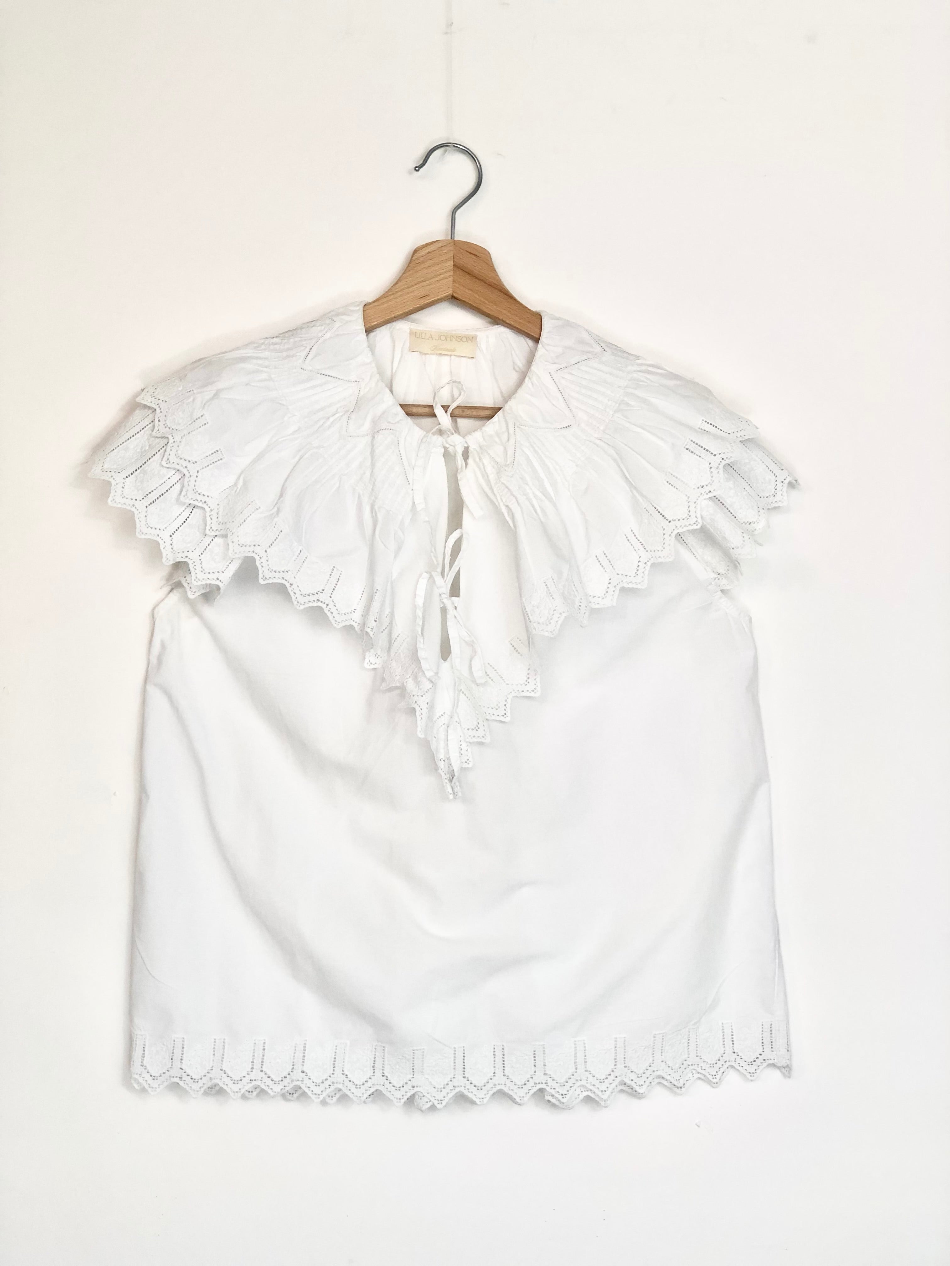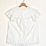 White Cotton Embroidered Ruffled Blouse / ULLA JOHNSON - Size US 8