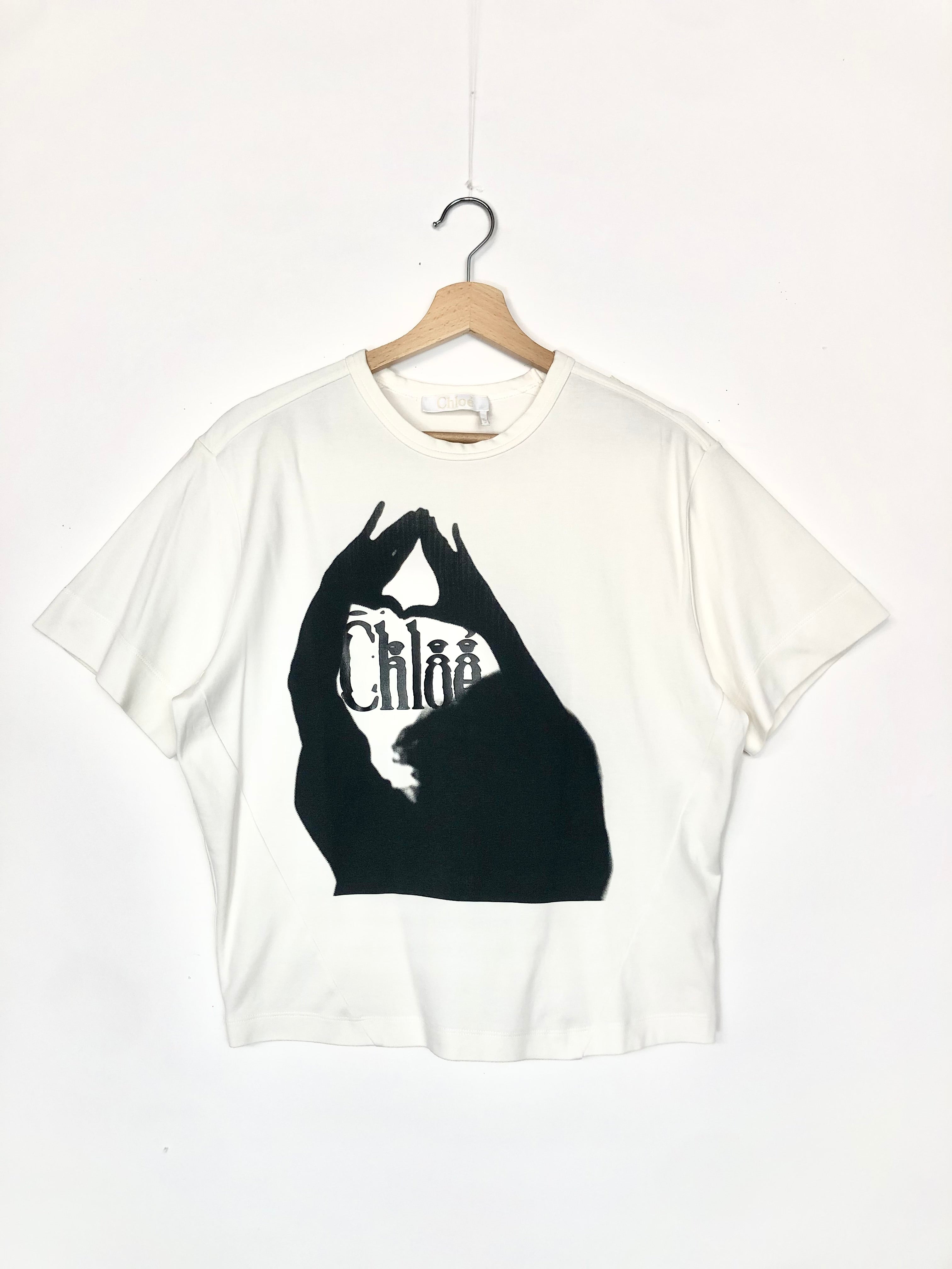 White Cotton Graphic Print Logo T-shirt / CHLOE - Size XS