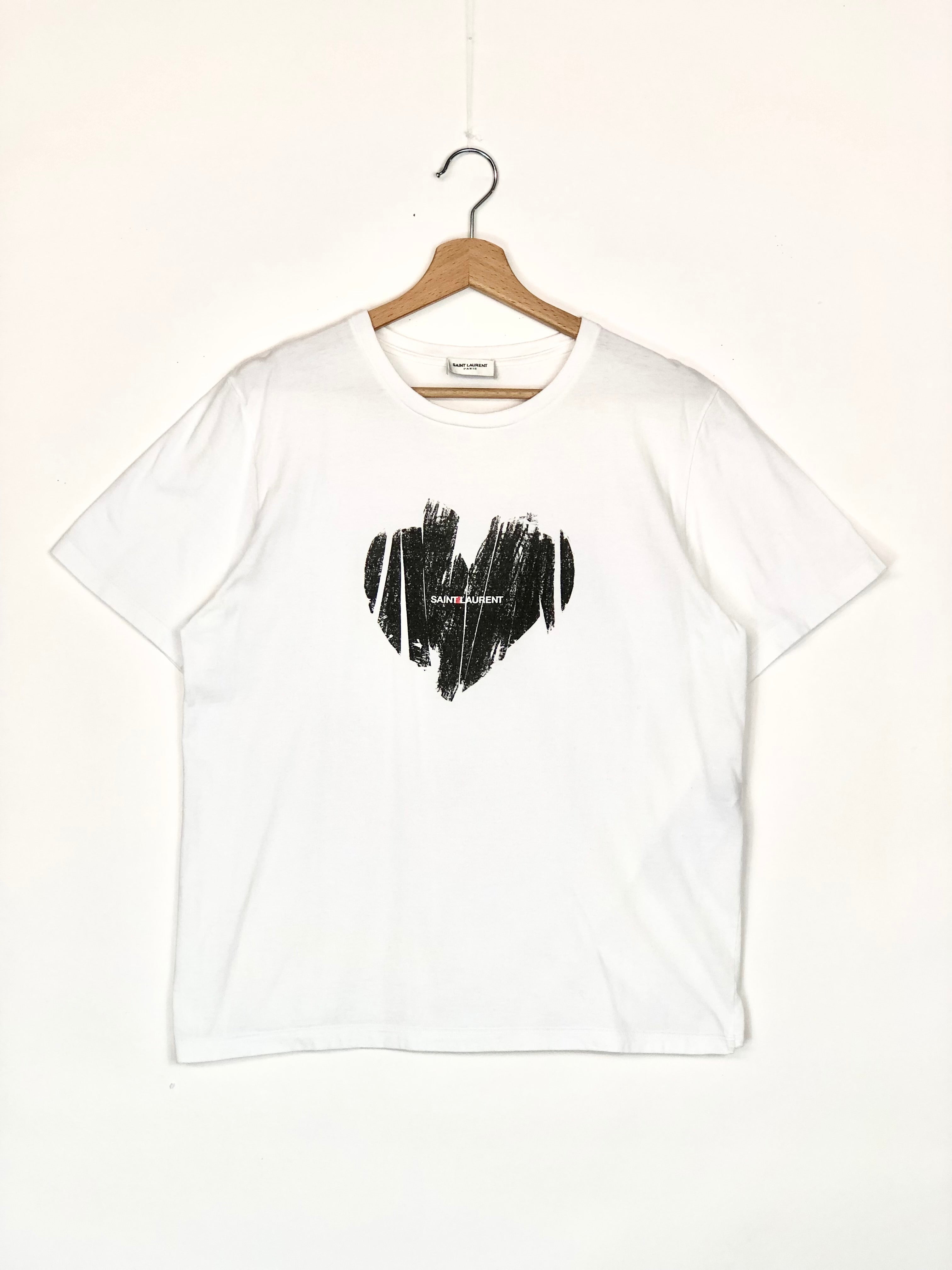 White Cotton Heart Short Sleeves Tee / SAINT LAURENT - Size M