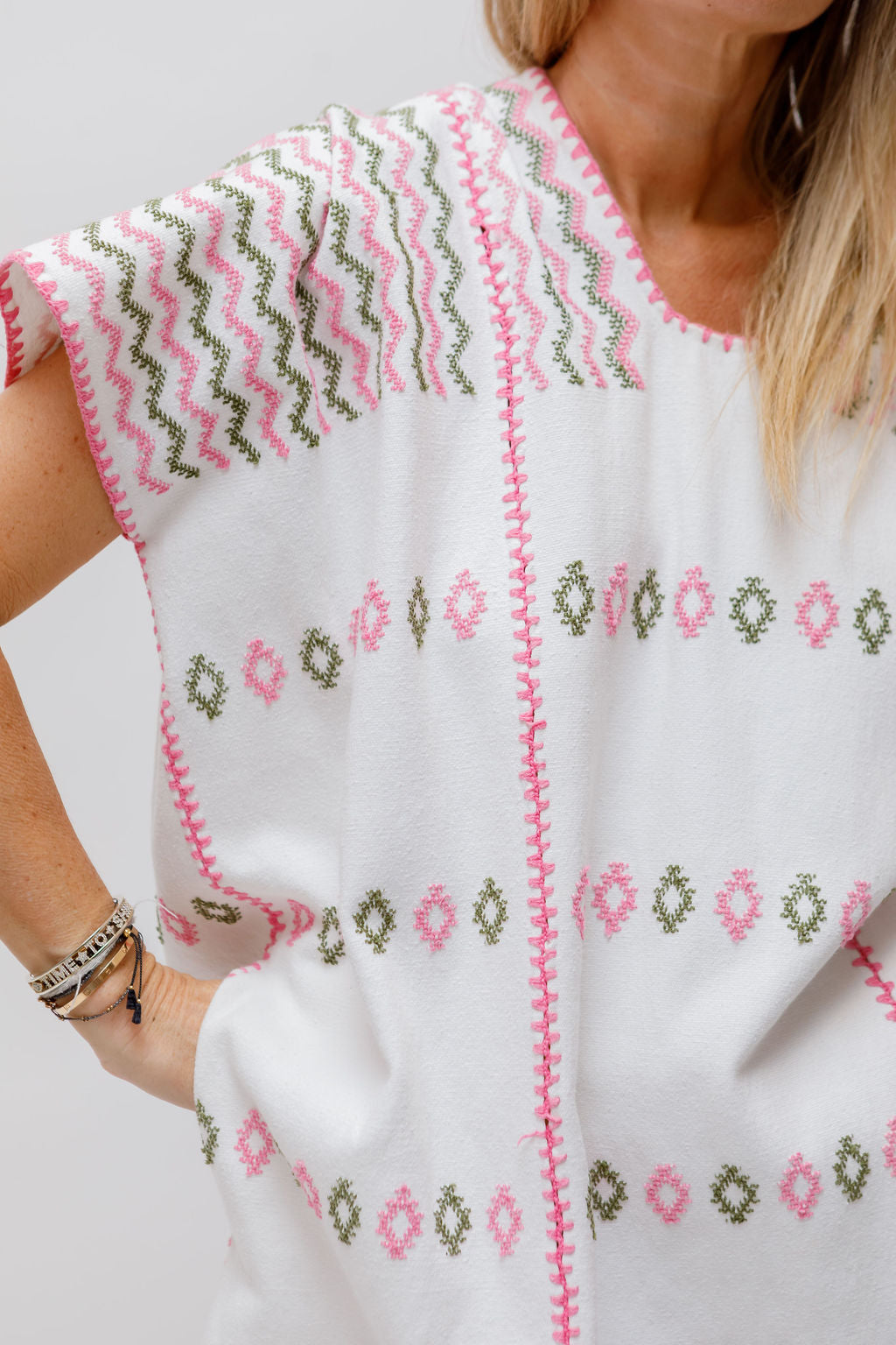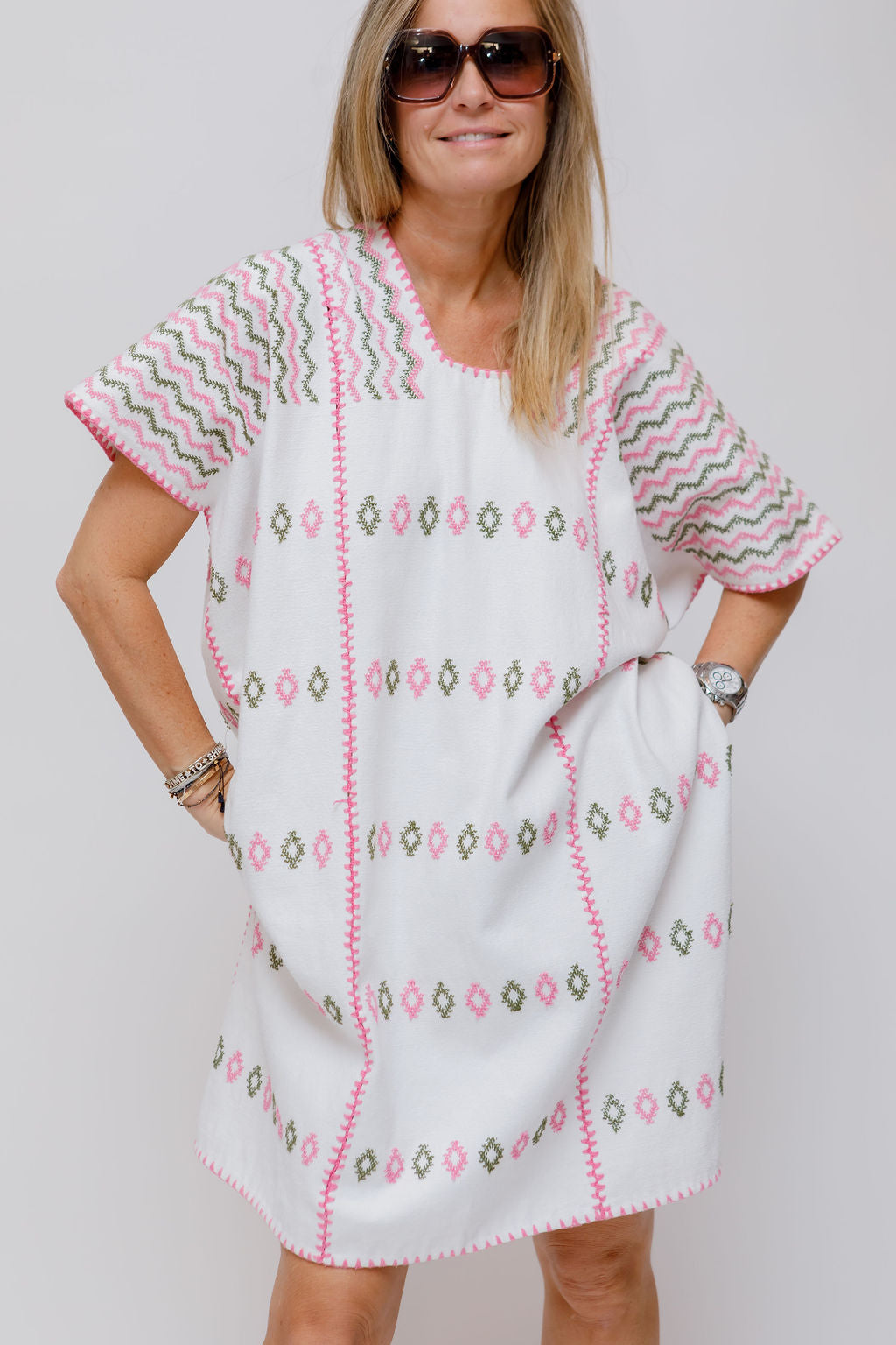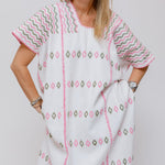 White Embroidered Three Panel Mini Kaftan Dress / PIPPA HOLT - One Size