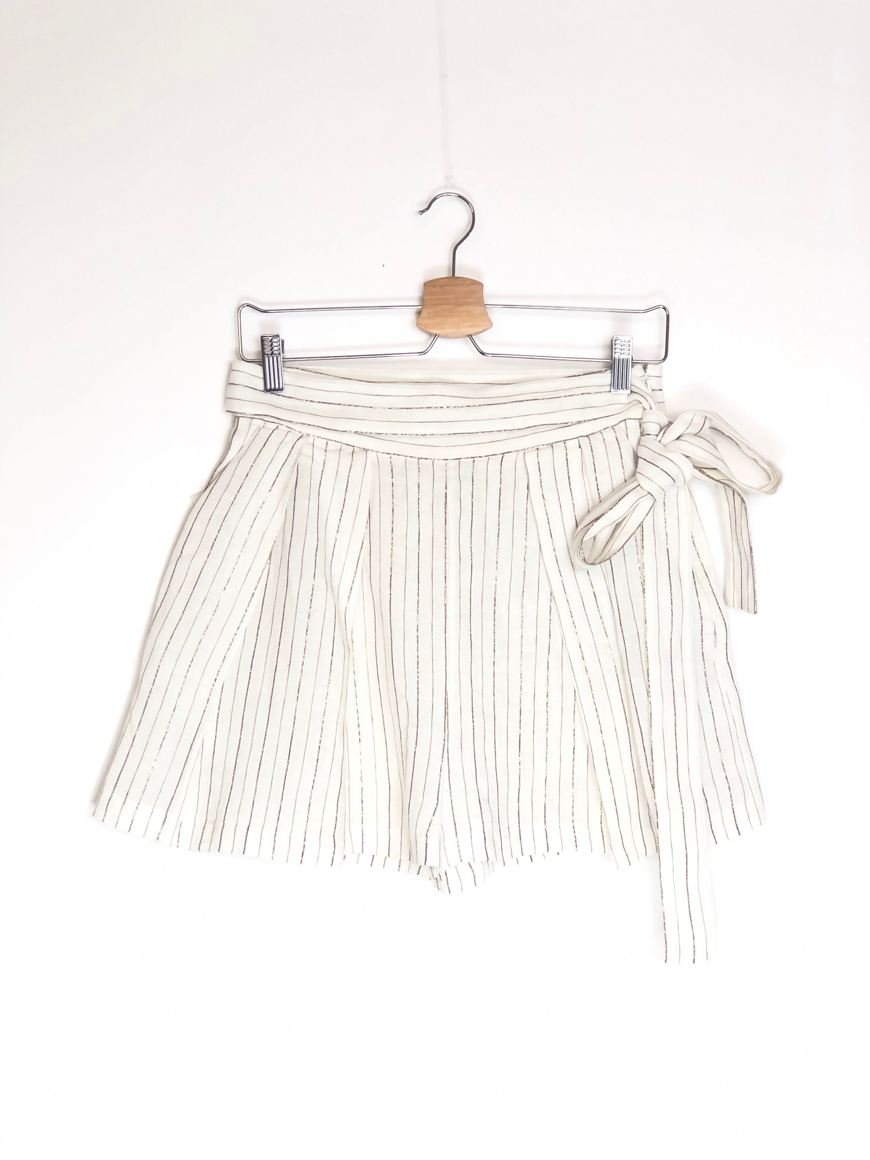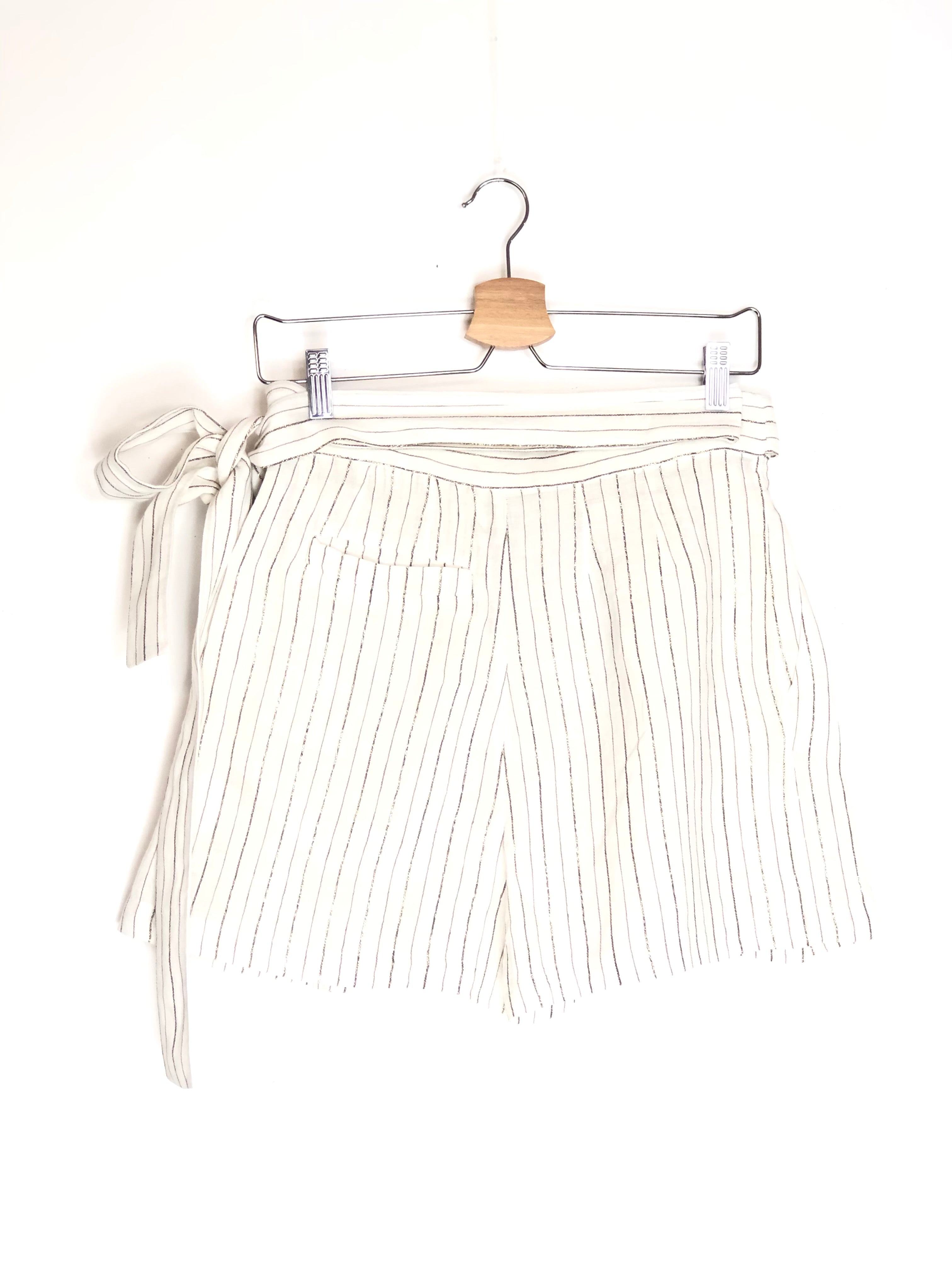 White JOLA Striped Linen-blend High-rise Shorts / THREE GRACES LONDON - Size UK 12