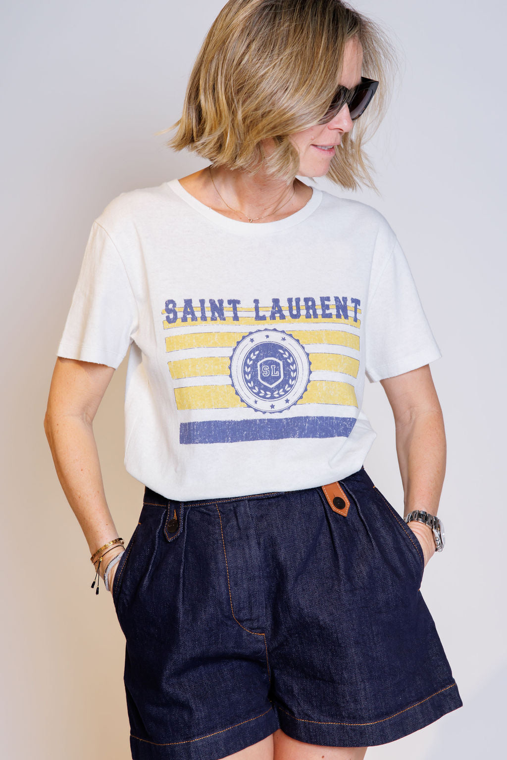White Logo Cotton Short Sleeve T-shirt / SAINT LAURENT - Size XS