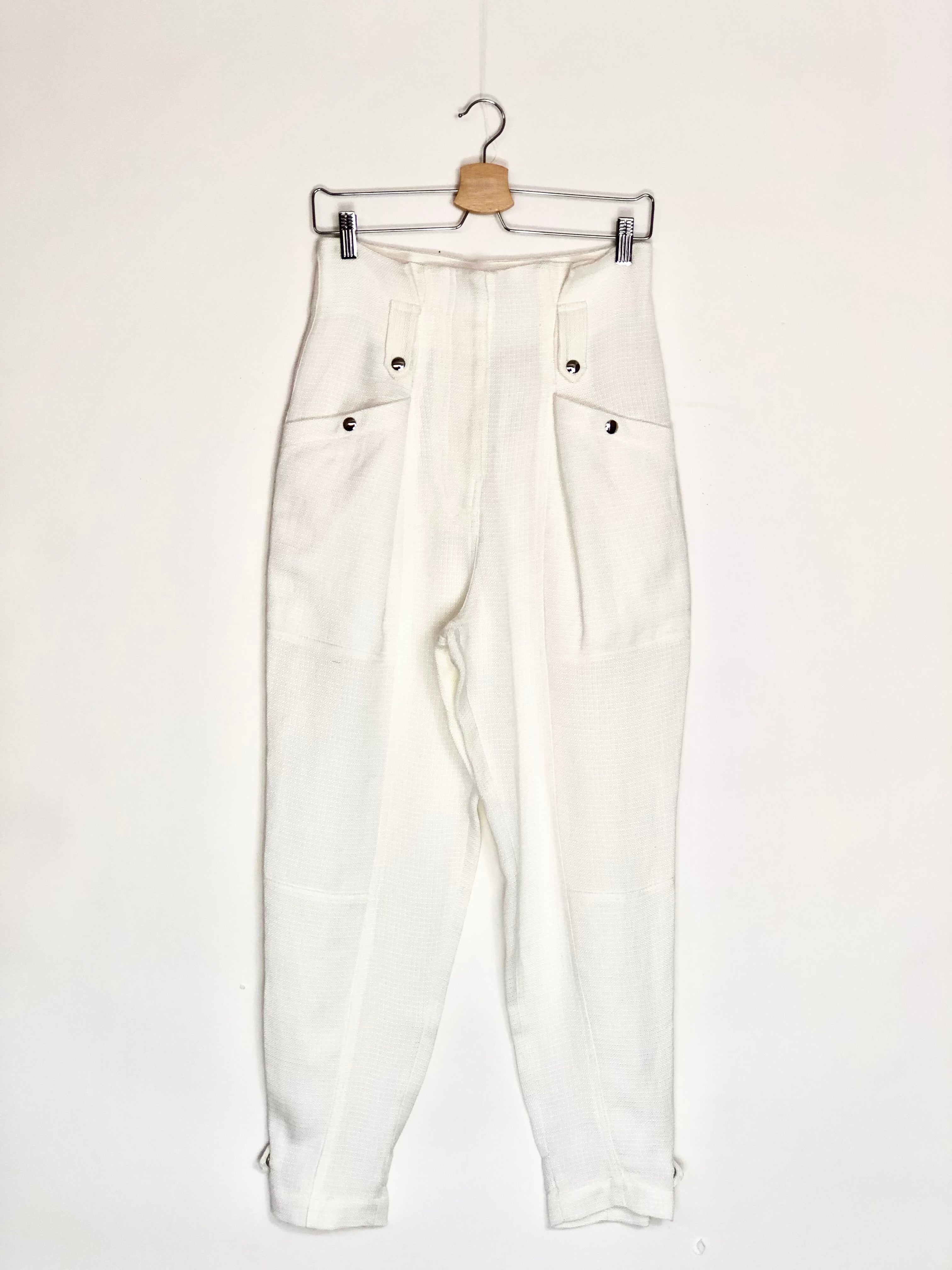 White MOHON Linen Blend Belted Paperbag Pants / IRO - Size 34