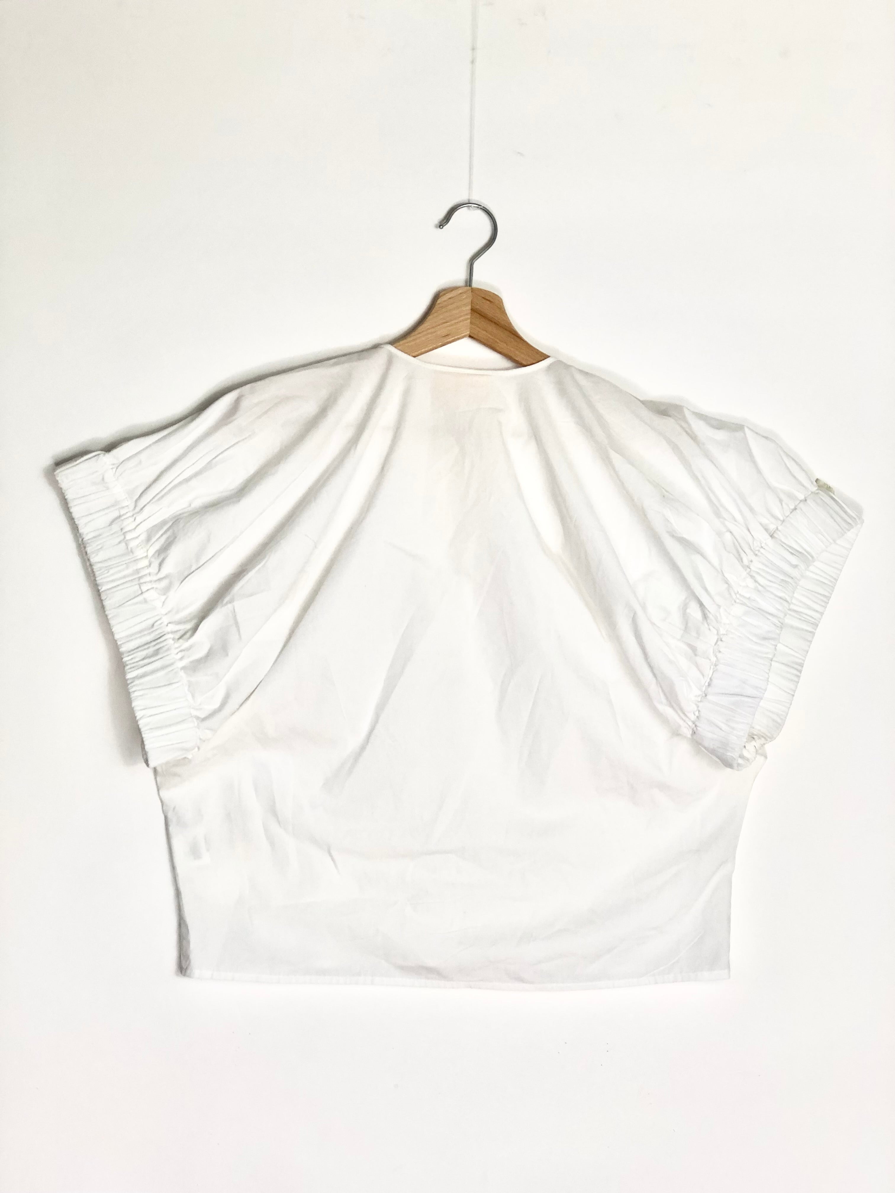 White Organic Cotton Wide Short Sleeves Blouse / THE LABEL EDITION - Size S