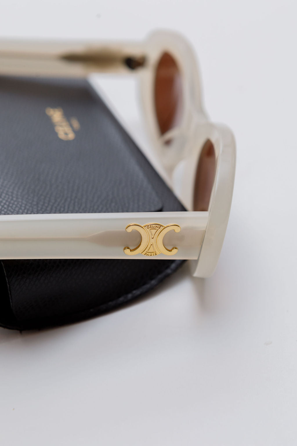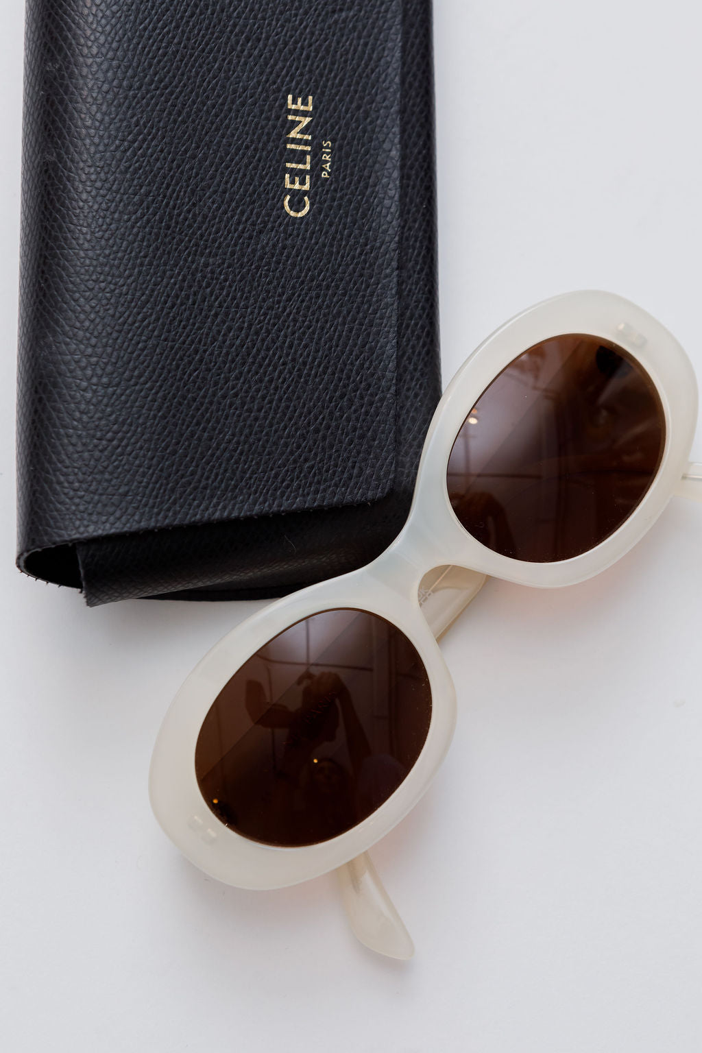 White TRIOMPHE Acetate Oval Sunglasses / CELINE