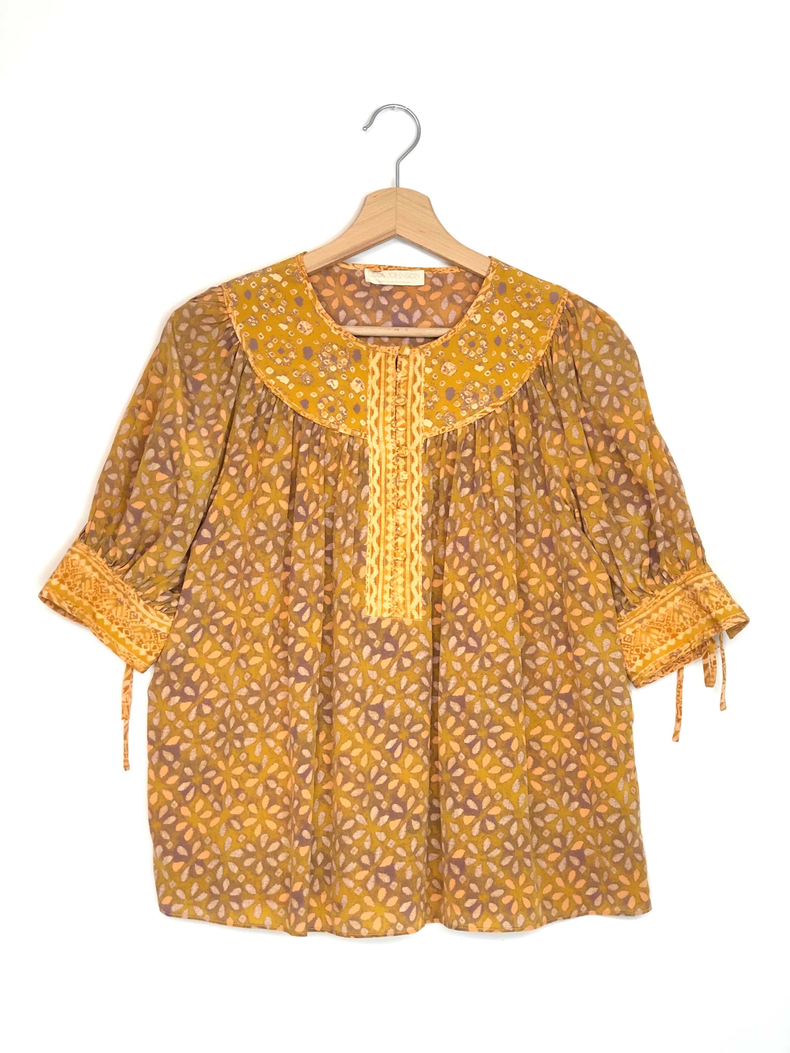 Yellow DINA Printed Silk Blouse / ULLA JOHNSON - Size US 6