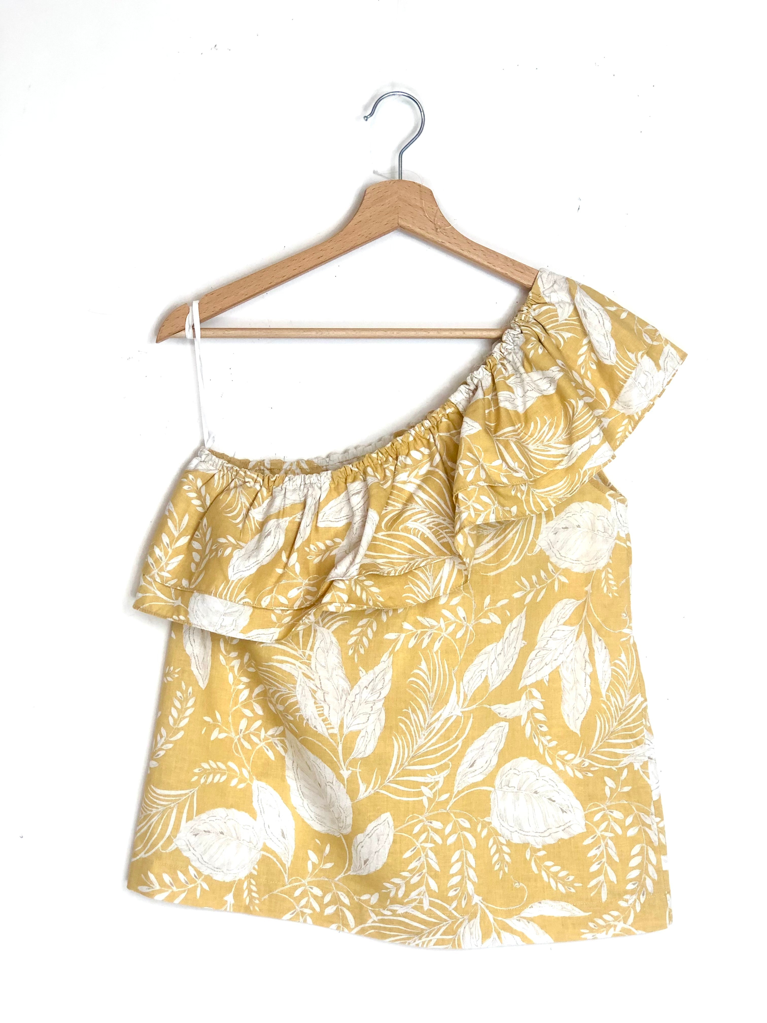Yellow Floral Print Asymmetric Blouse / SEZANE - Size 36