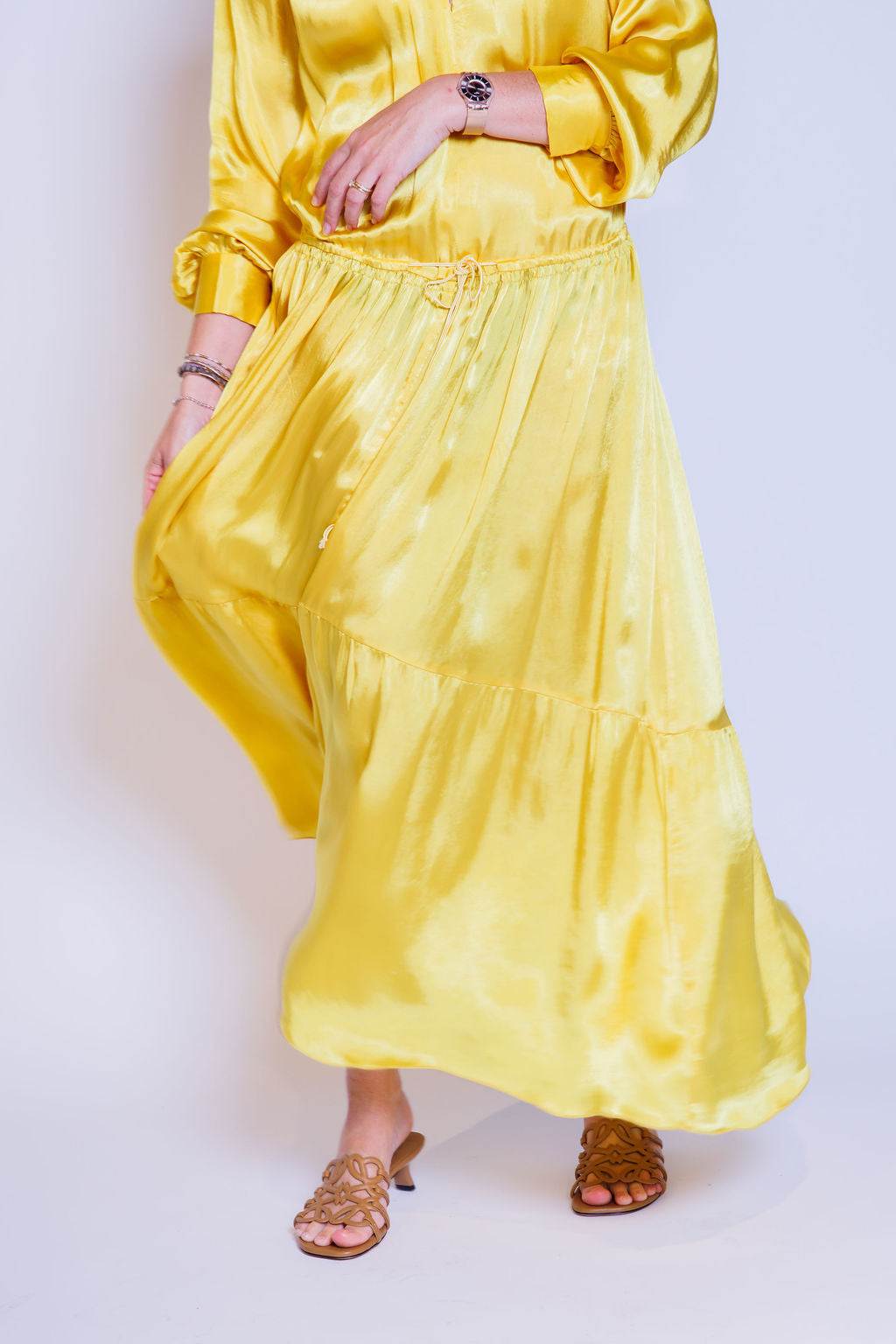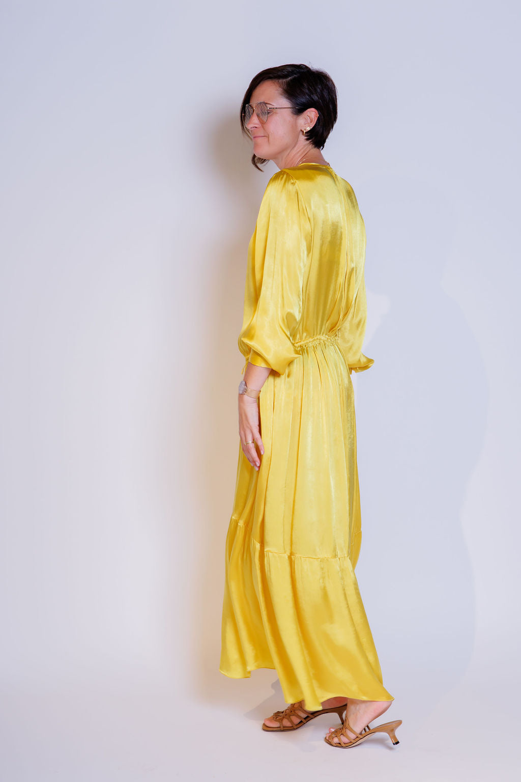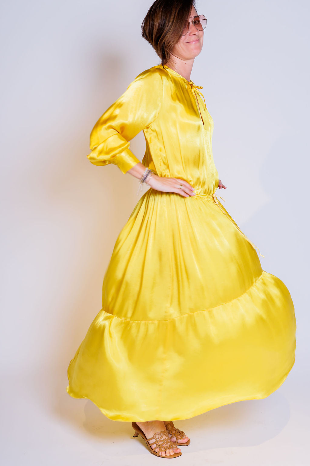 Yellow Satin Long Sleeves Pleated Maxi Dress / FORTE_FORTE - Size 1